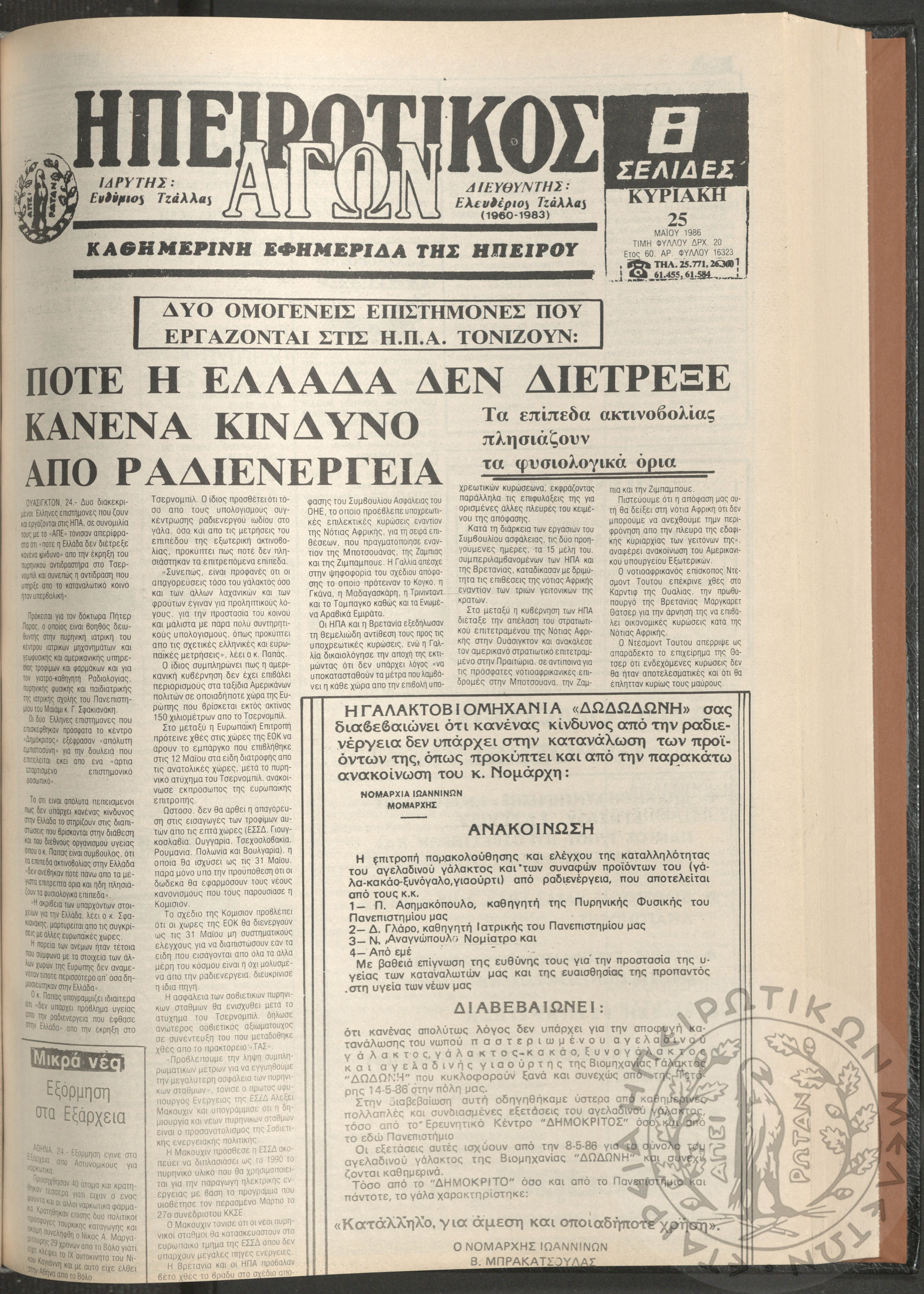 Ηπειρωτικός Αγών: καθημερινή εφημερίδα της Ηπείρου, 1986, φ. 16323