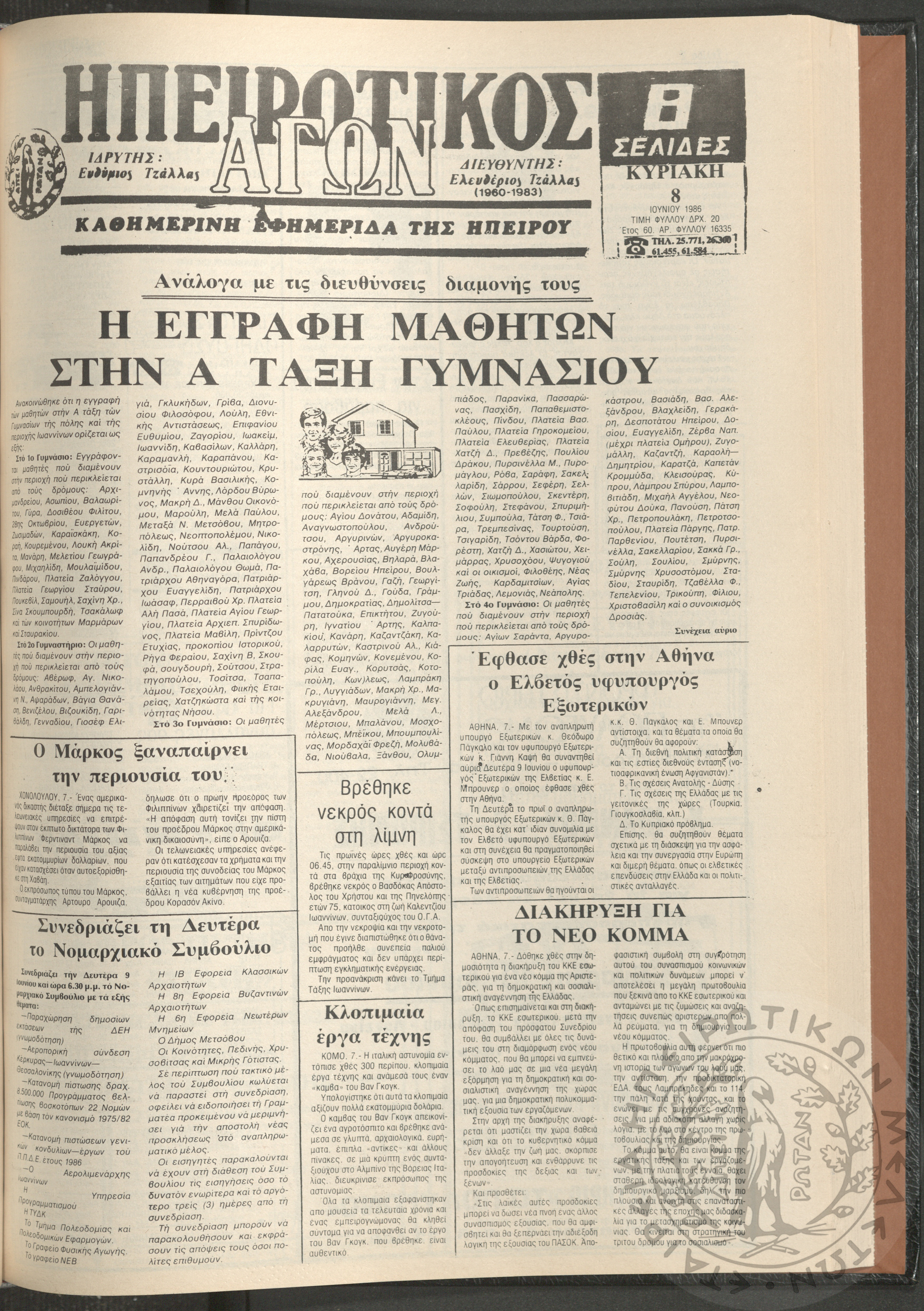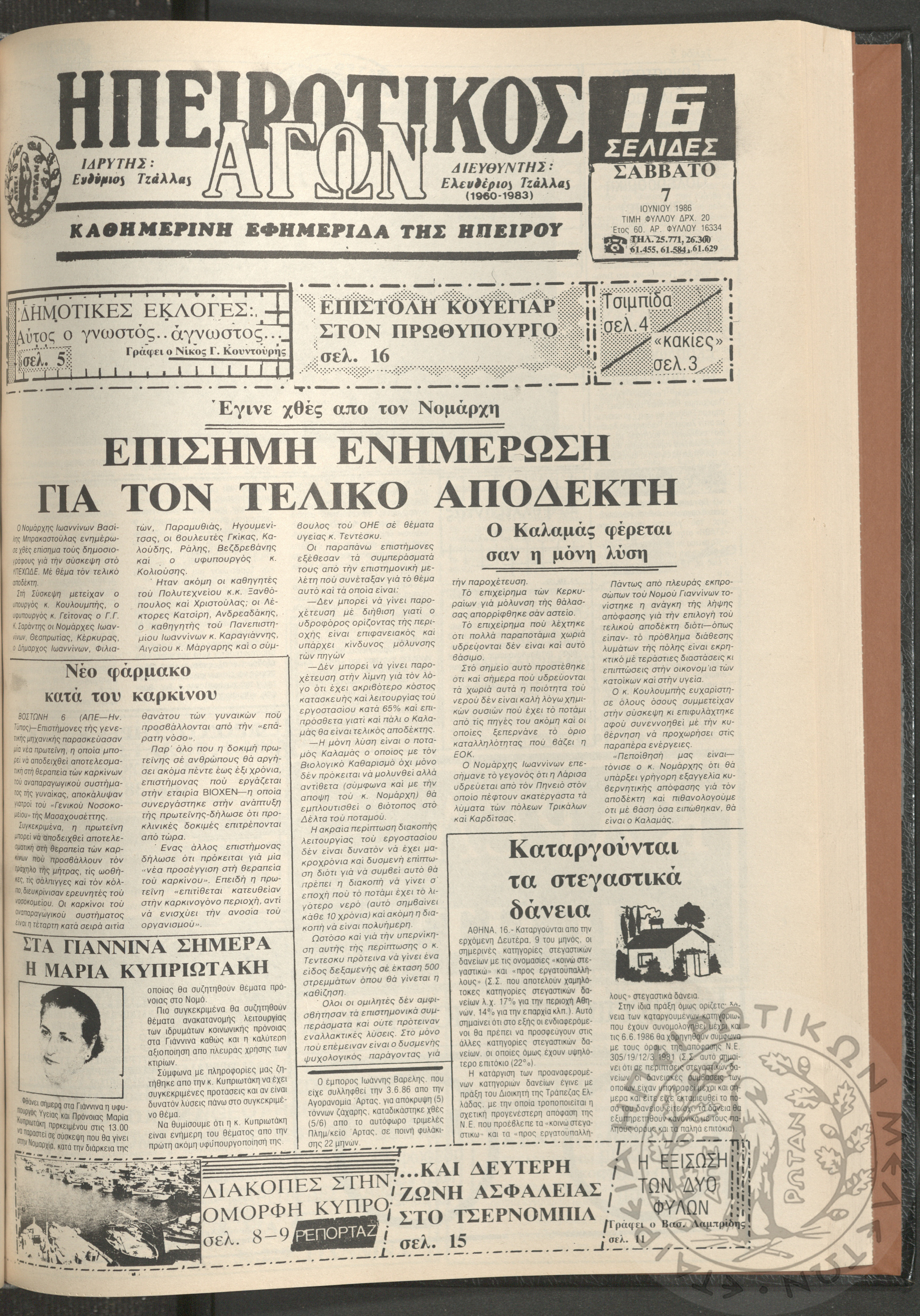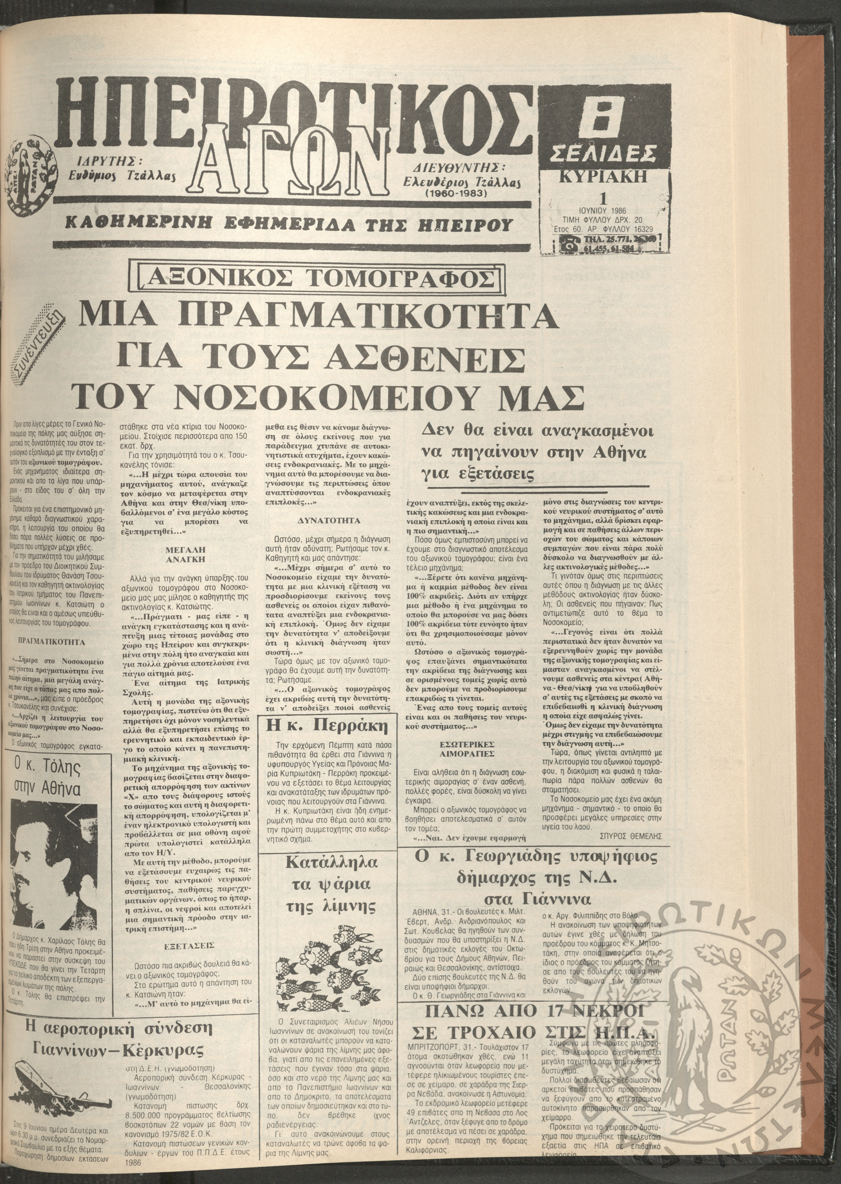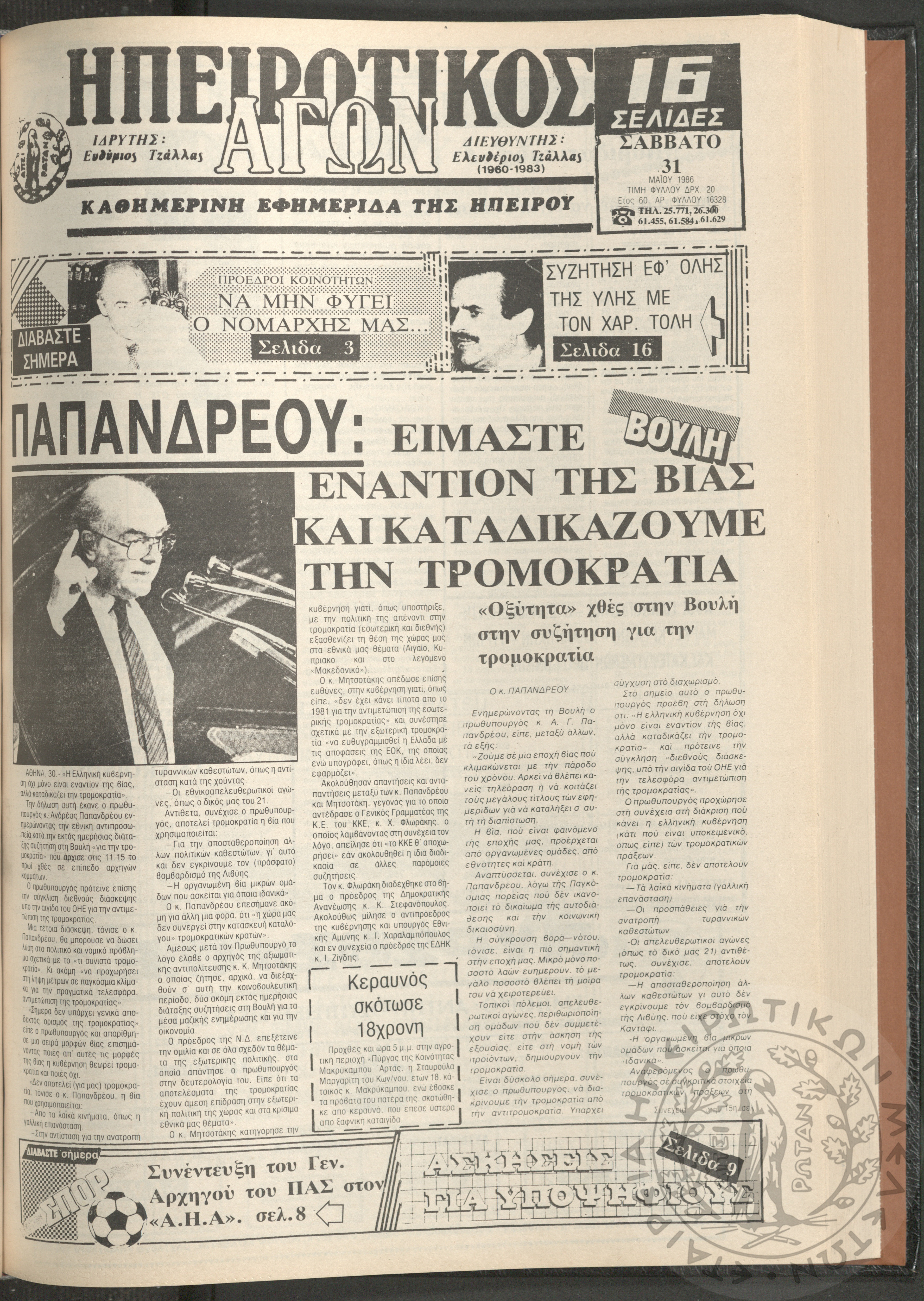 Ηπειρωτικός Αγών: καθημερινή εφημερίδα της Ηπείρου, 1986, φ. 16331