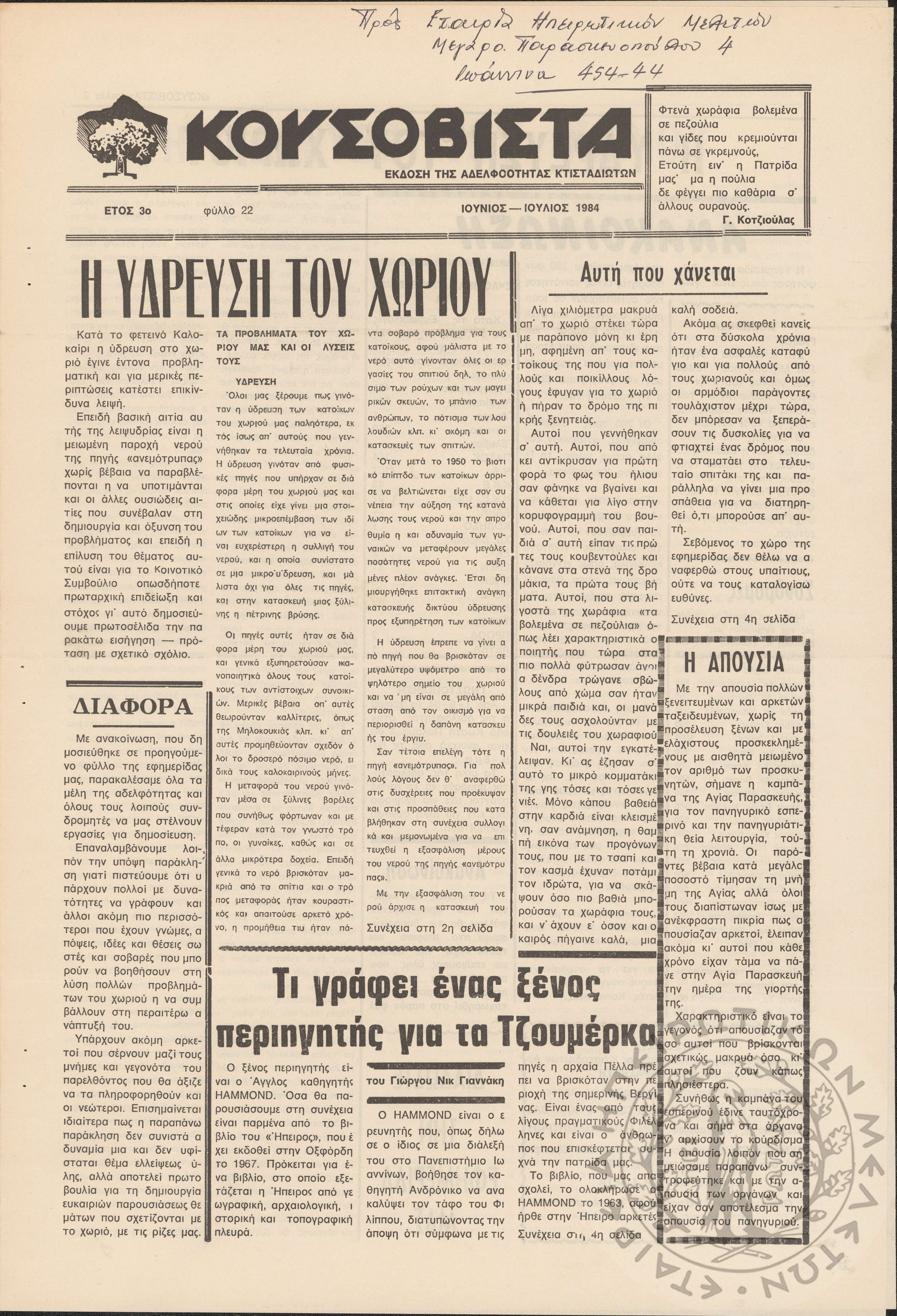 Κουσοβίστα: έκδοση της Αδελφότητας Κτισταδιωτών, 1984, φ. 22