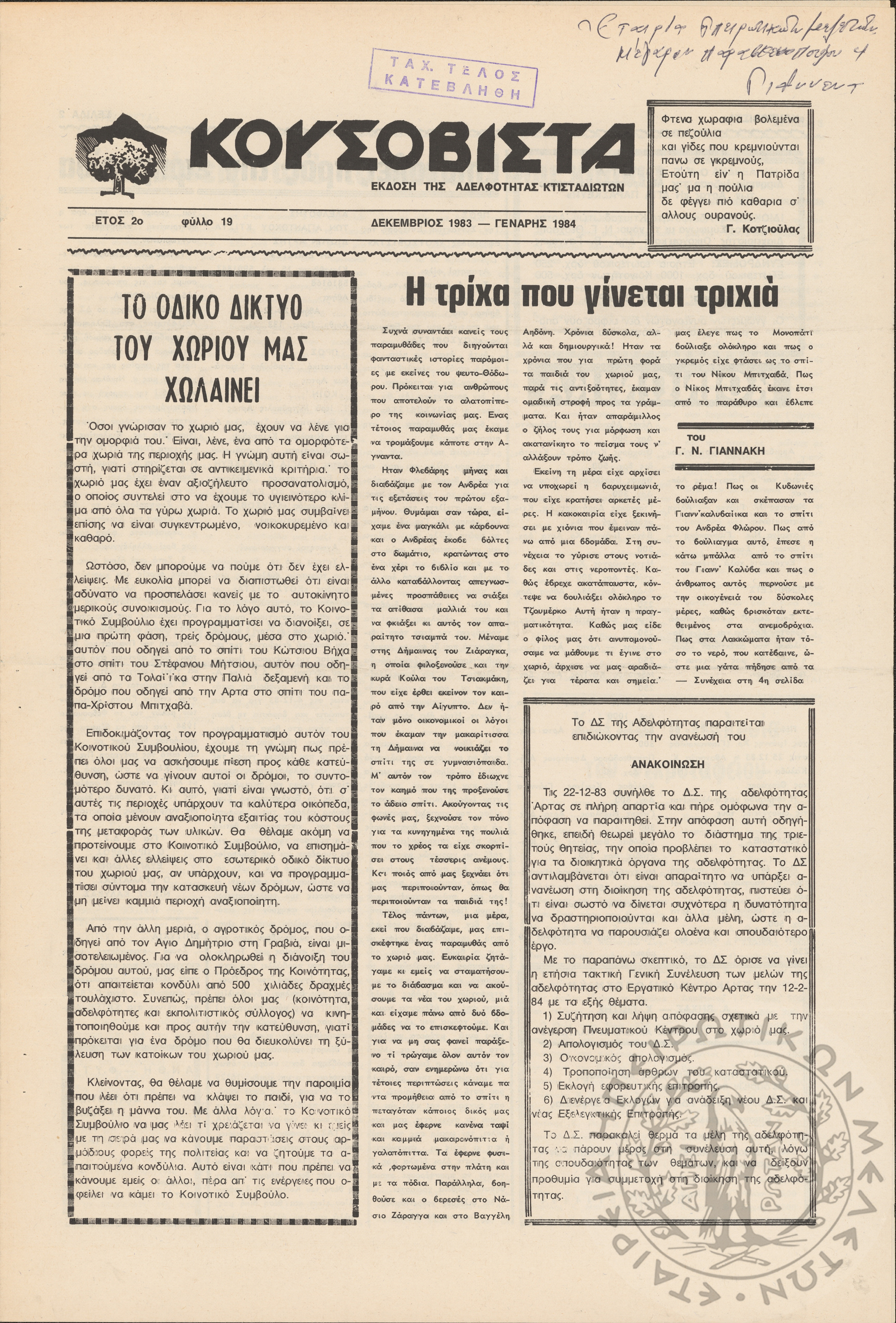 Κουσοβίστα: έκδοση της Αδελφότητας Κτισταδιωτών, 1983-1984, φ. 19