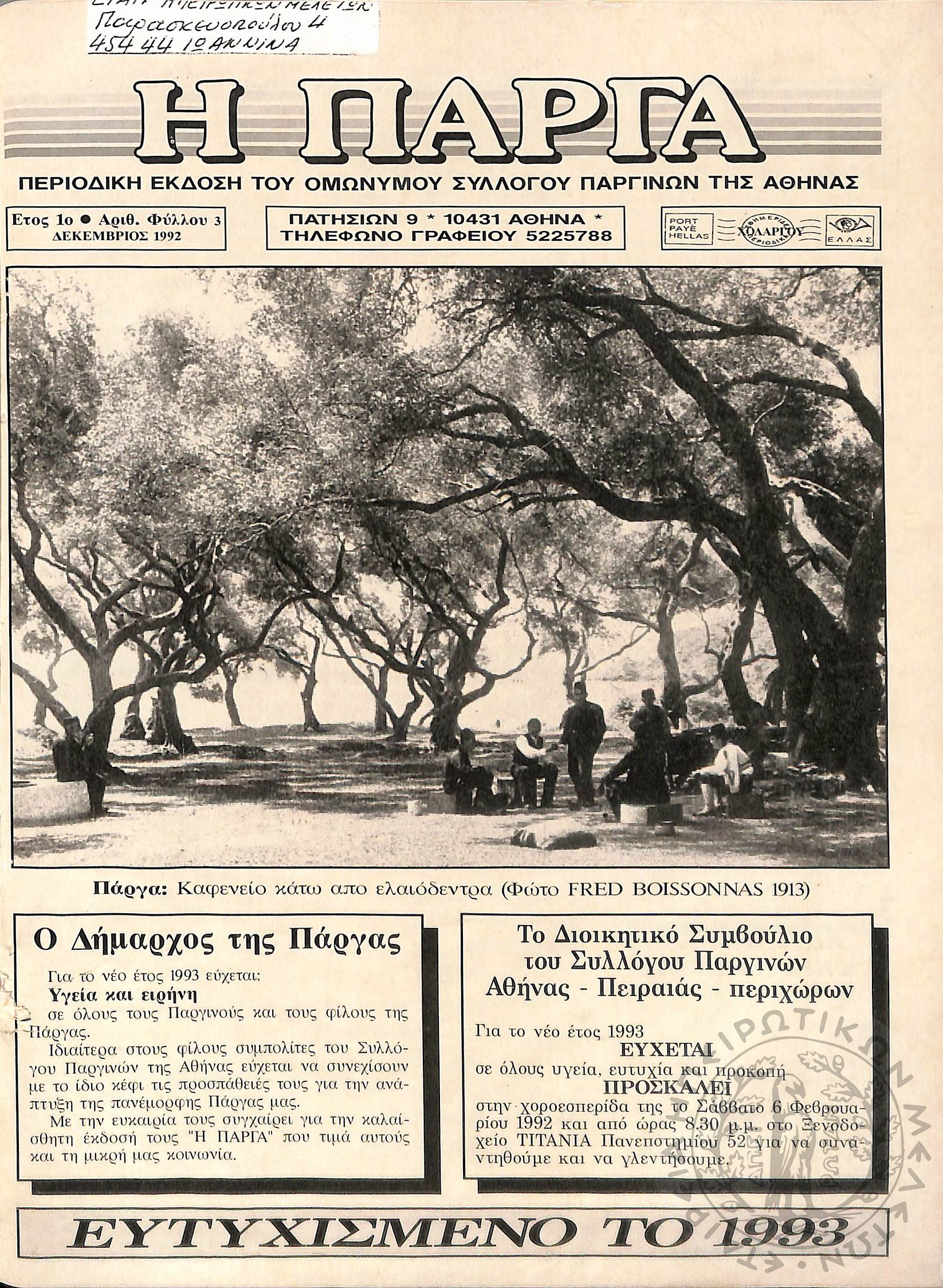 Η Πάργα: περιοδική έκδοση του ομώνυμου Συλλόγου Παργινών της Αθήνας, 1992, φ. 3