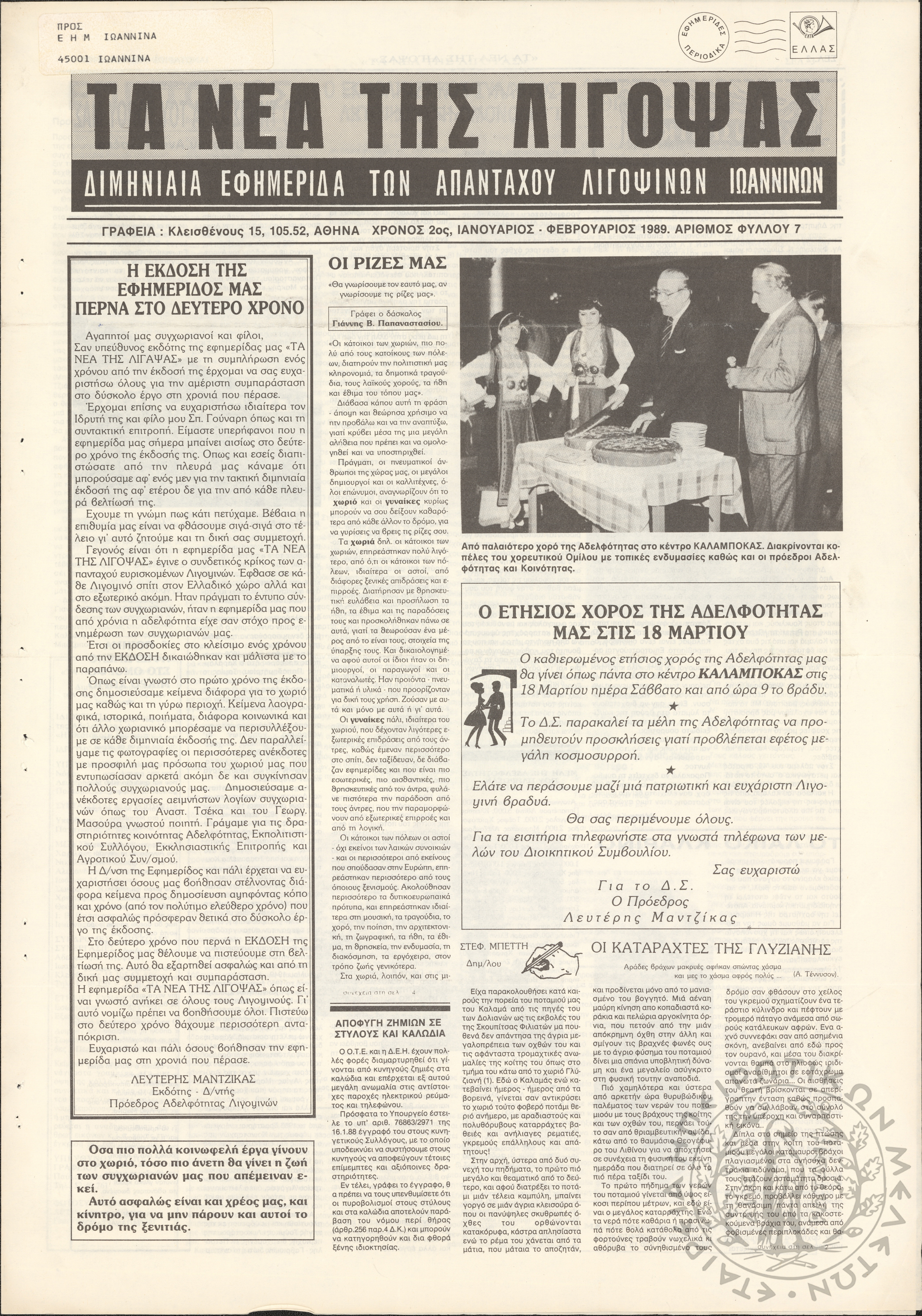 Τα νέα της Λιγοψάς: διμηνιαία εφημερίδα των απανταχού Λιγοψινών Ιωαννίνων, 1989, φ. 7Έτος 2ο, αρ. φ. 7...