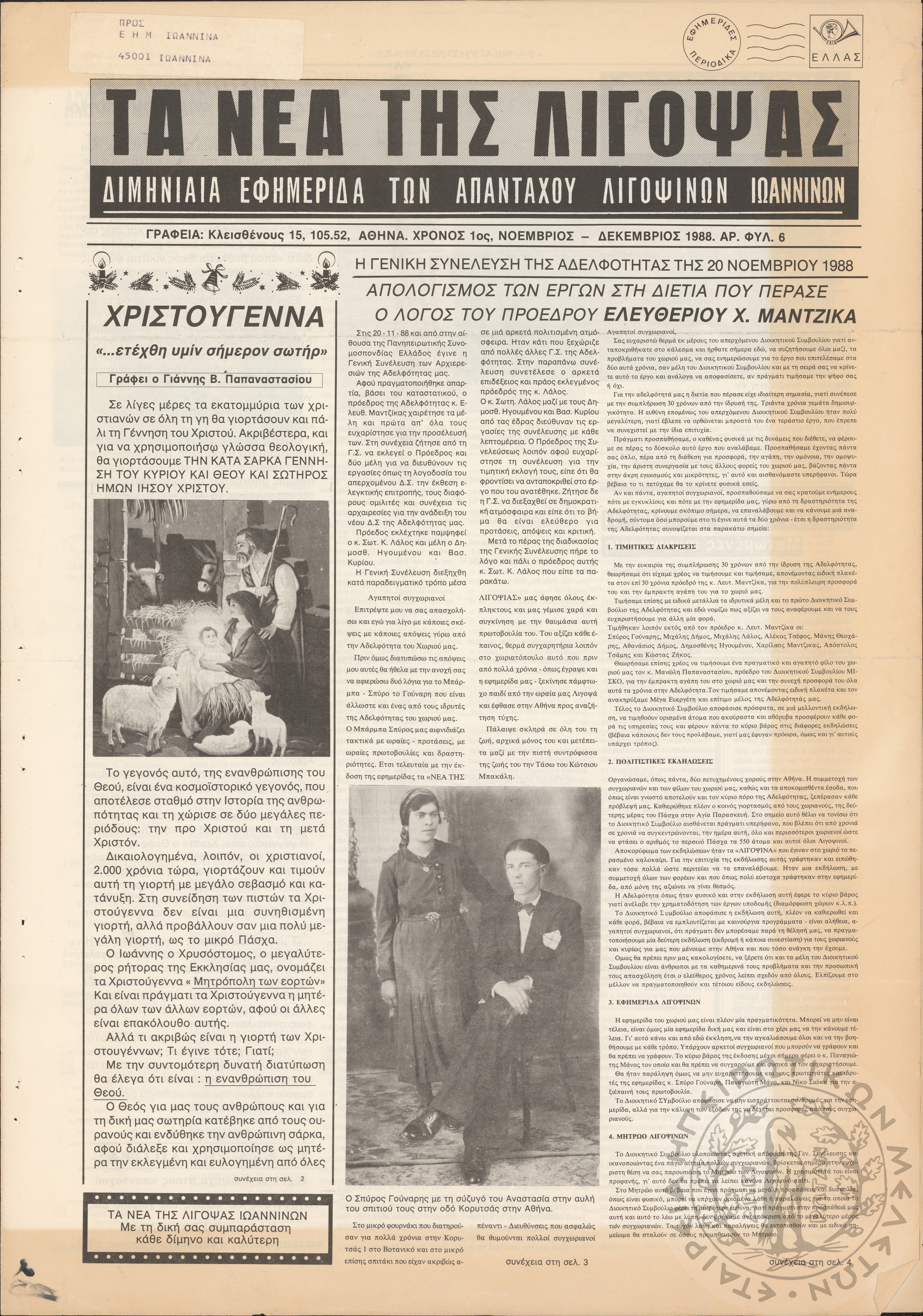 Τα νέα της Λιγοψάς: διμηνιαία εφημερίδα των απανταχού Λιγοψινών Ιωαννίνων, 1988, φ. 6Έτος 1ο, αρ. φ. 6...