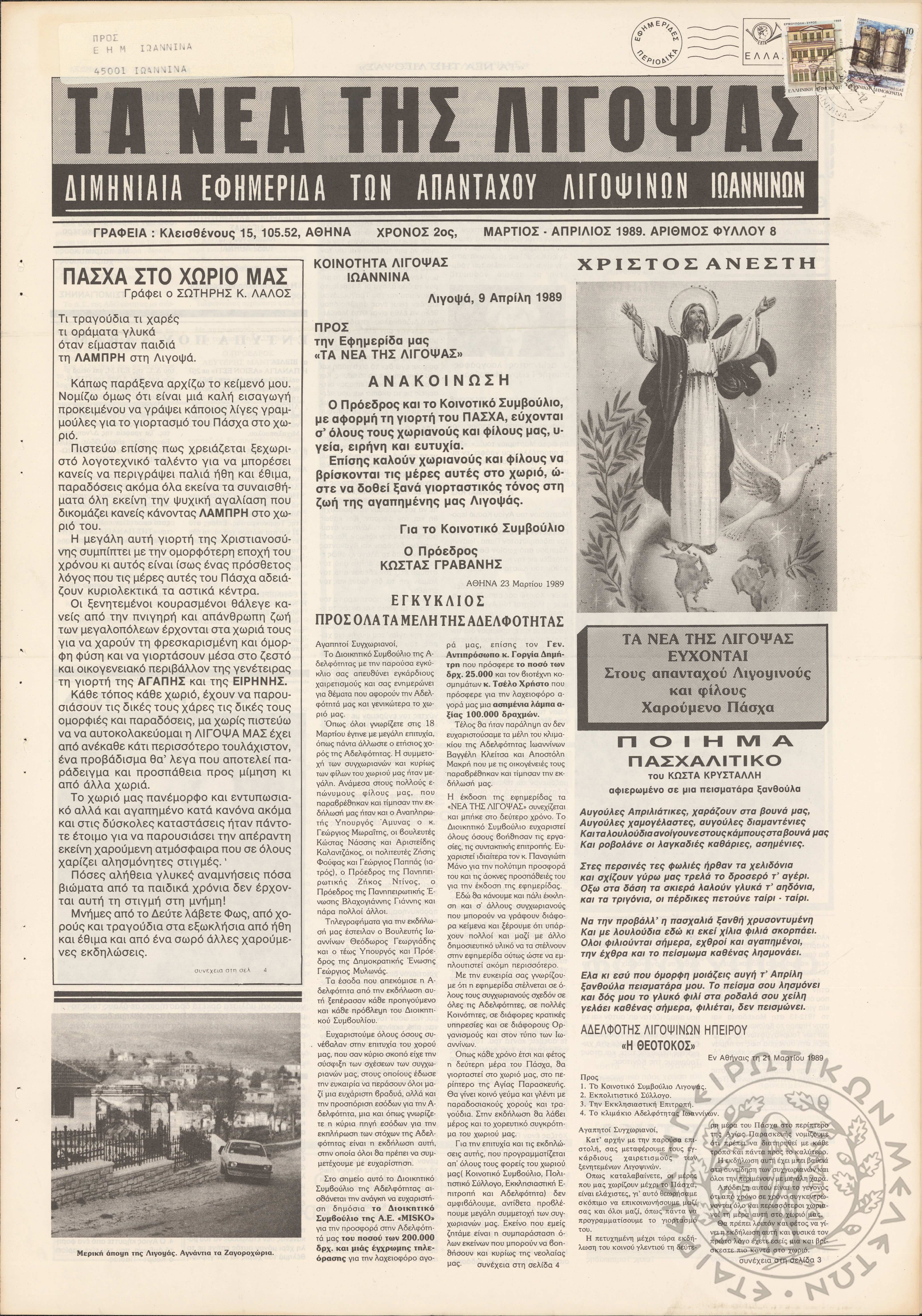 Τα νέα της Λιγοψάς: διμηνιαία εφημερίδα των απανταχού Λιγοψινών Ιωαννίνων, 1989, φ. 8Έτος 2ο, αρ. φ. 8...