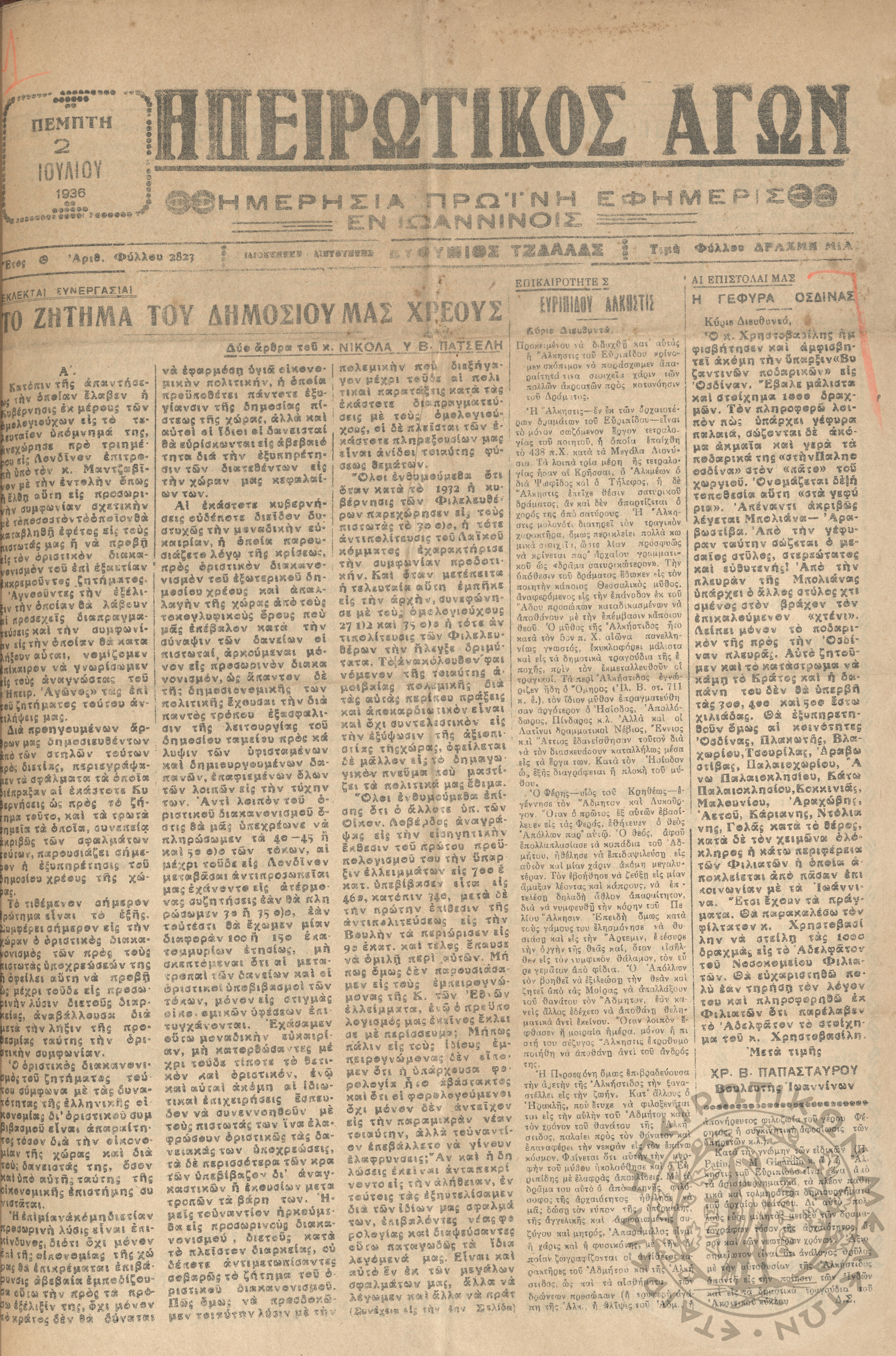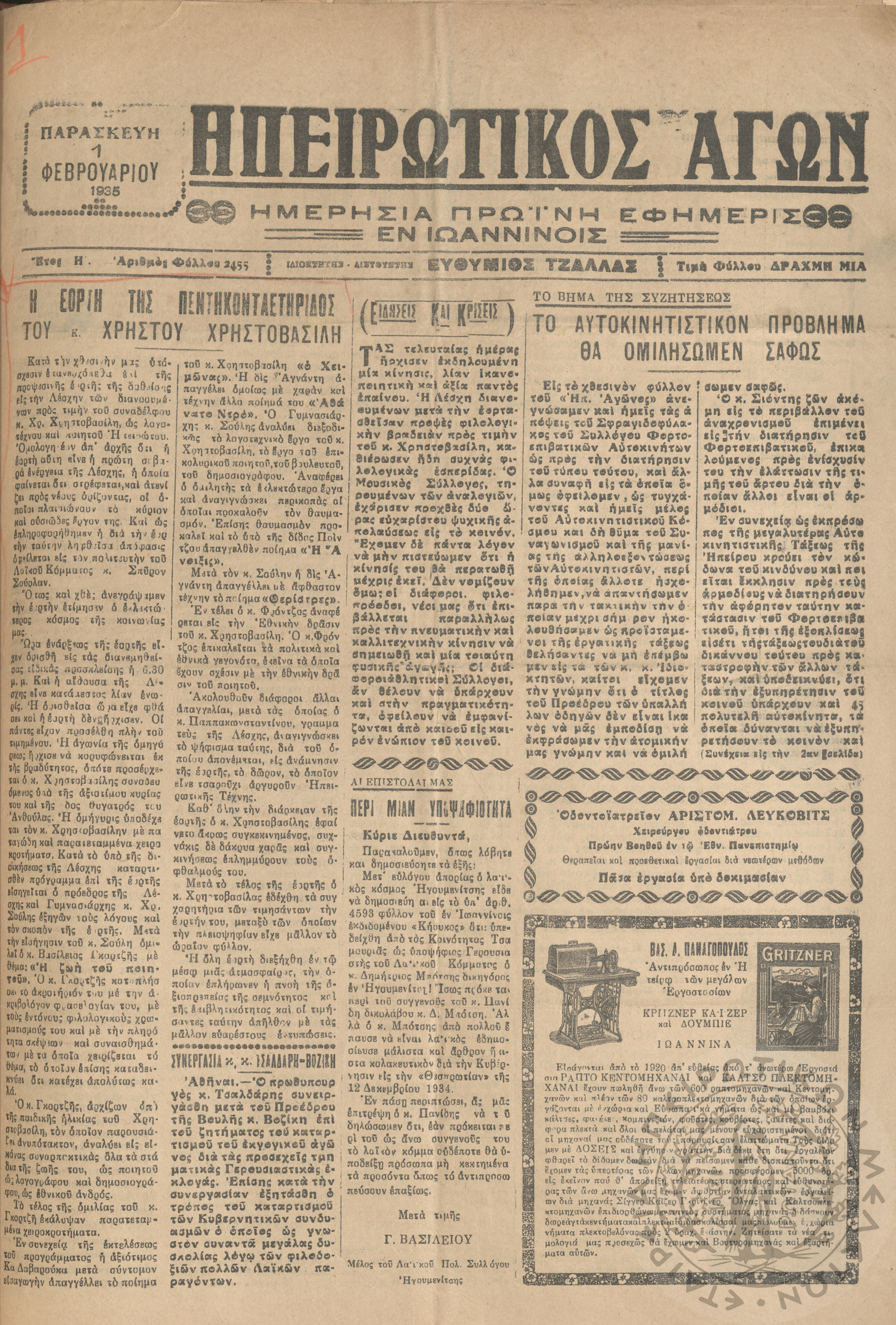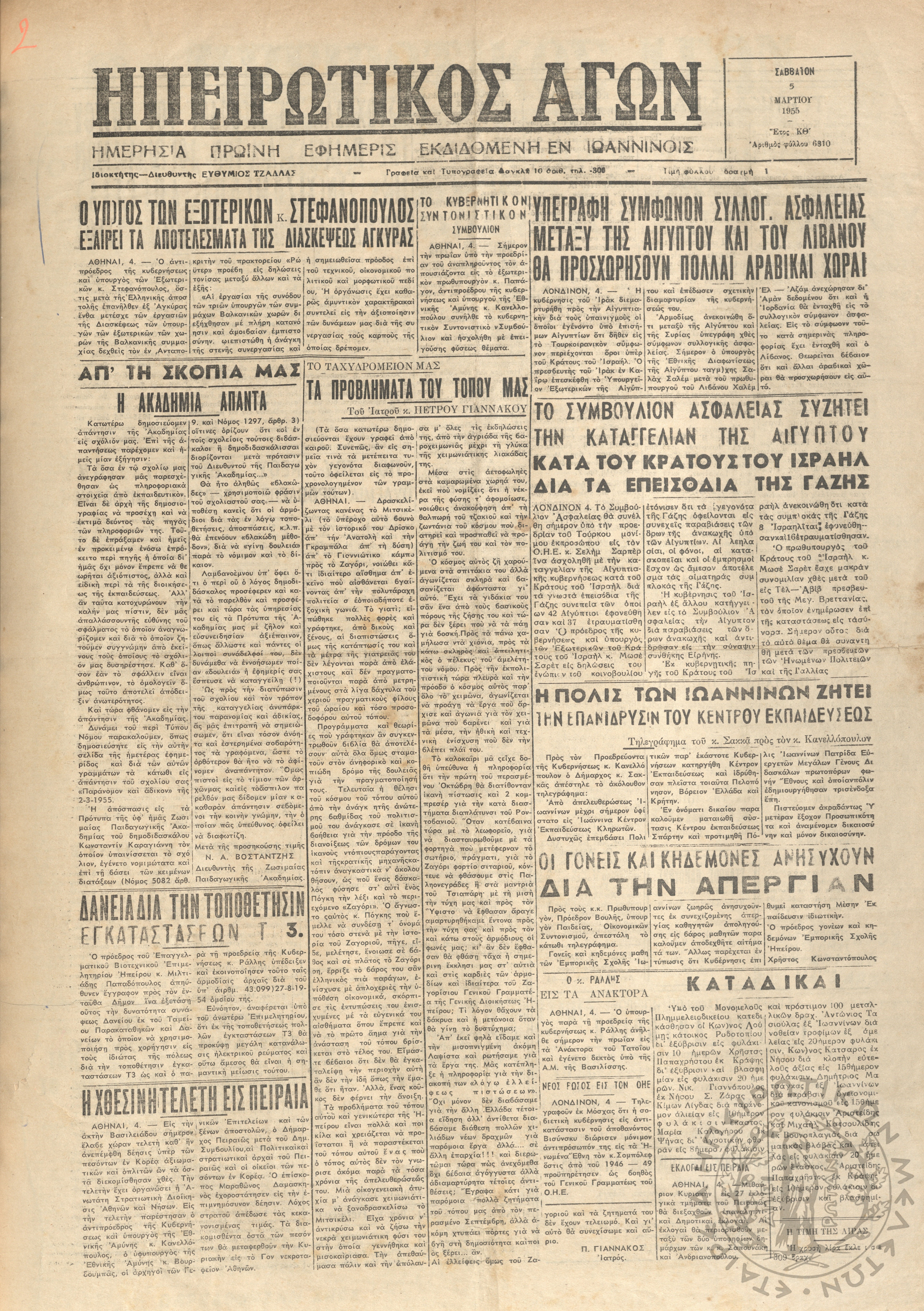 Ηπειρωτικός Αγών: ημερήσια πρωινή εφημερίς εκδιδομένη εν Ιωαννίνοις, 1955, φ. 6810Έτος ΚΘ΄, φ. 6810...
