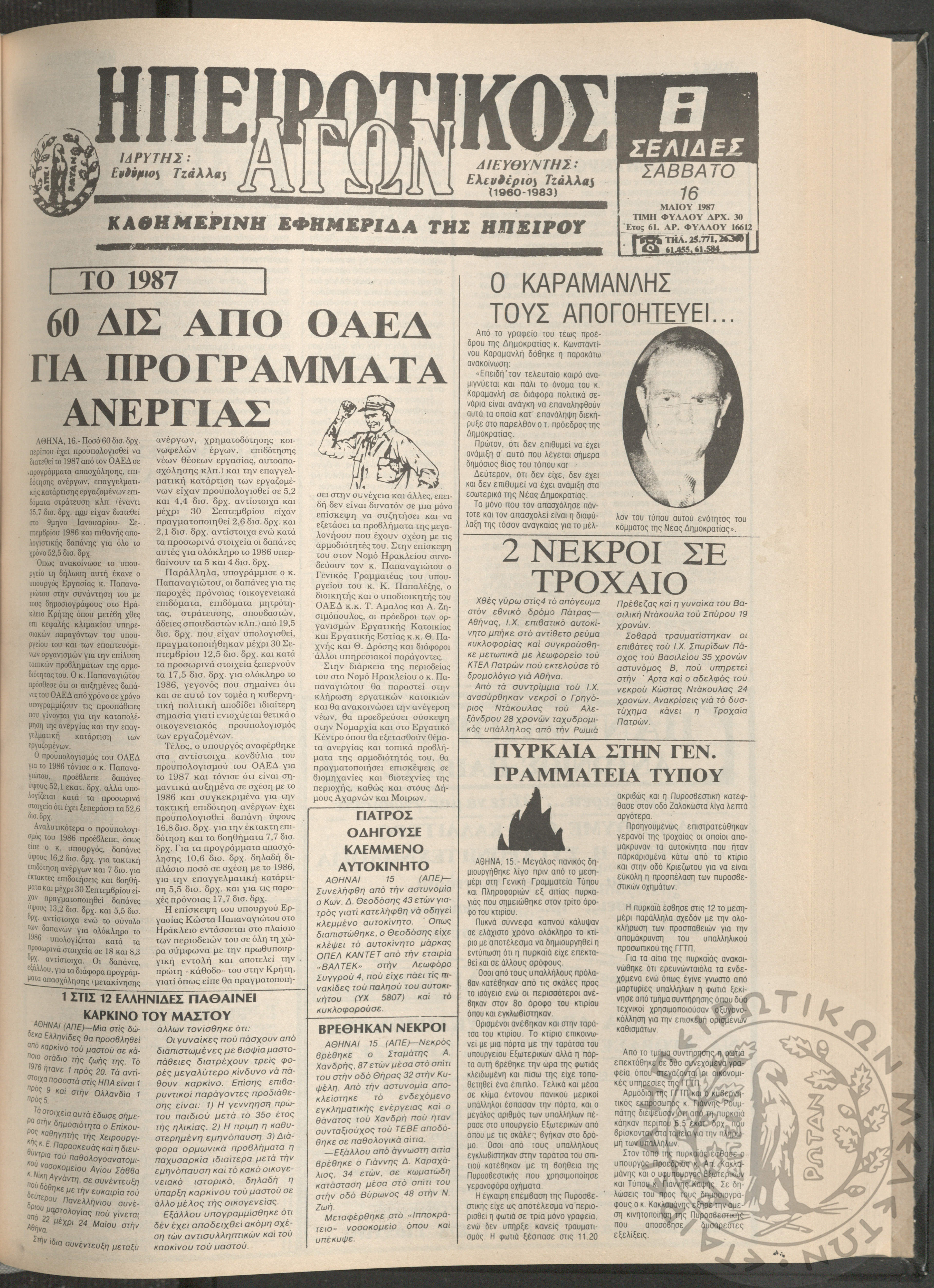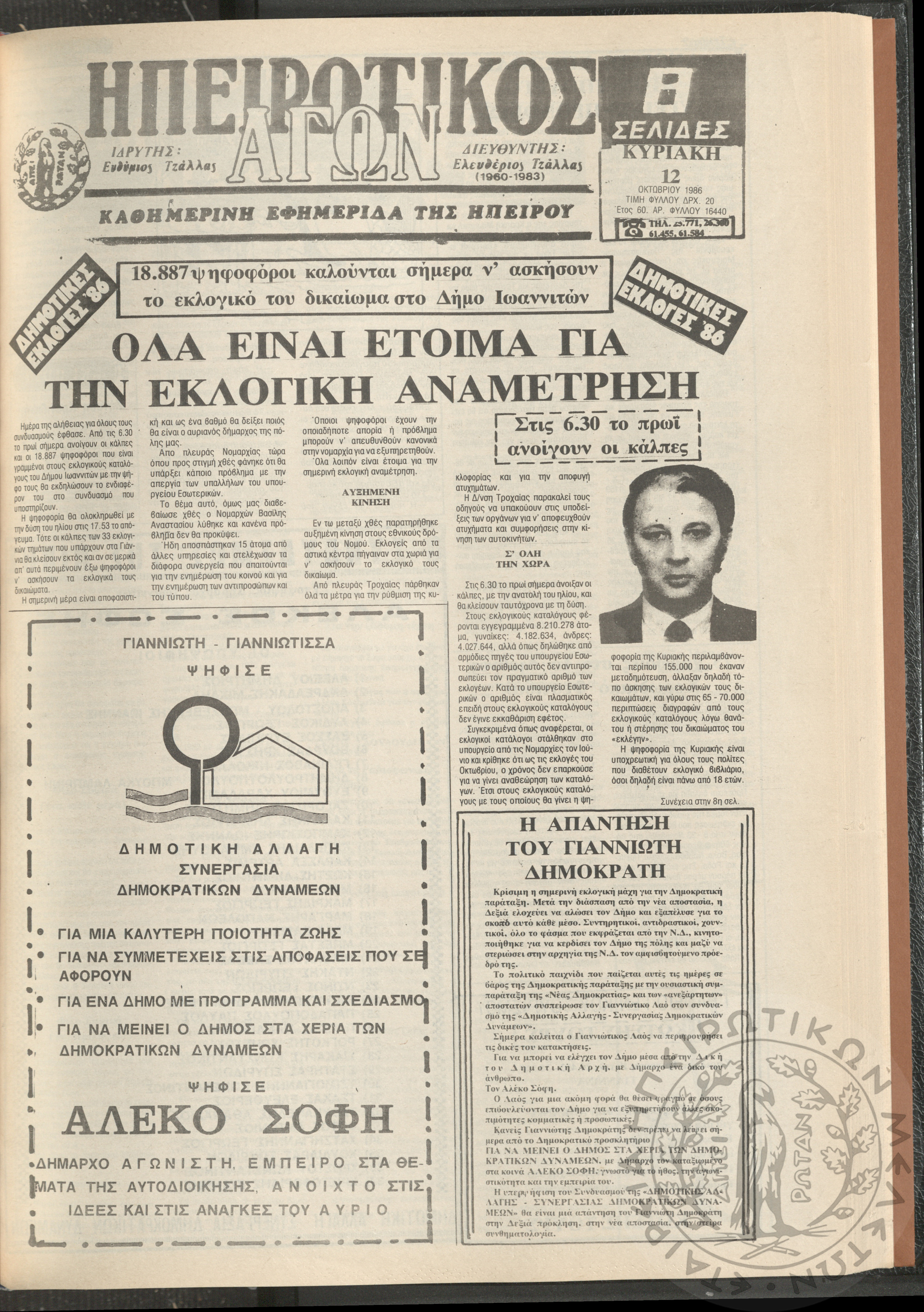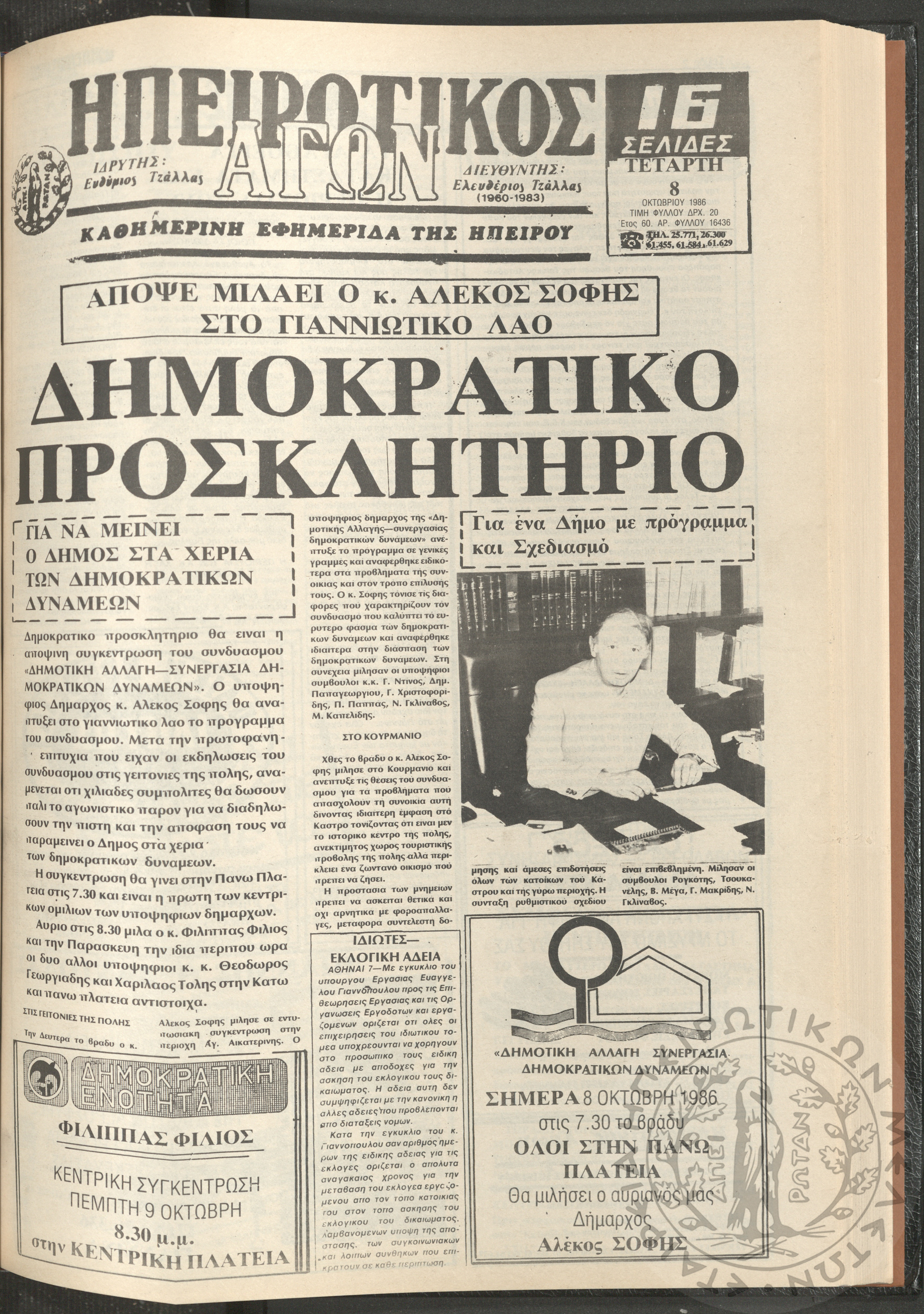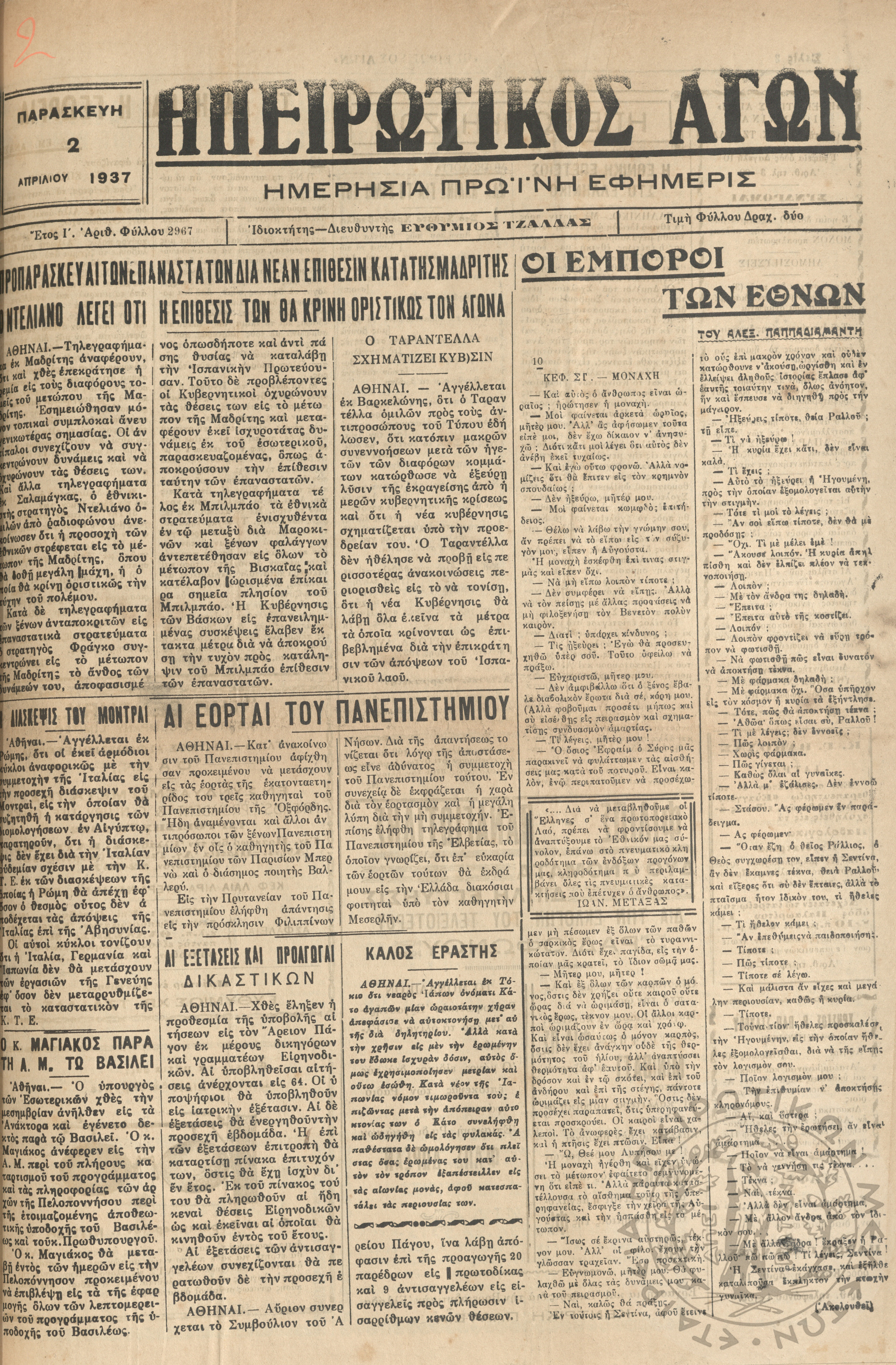 Ηπειρωτικός Αγών: ημερήσια πρωινή εφημερίς εκδιδομένη εν Ιωαννίνοις, 1955, φ. 6810Έτος ΚΘ΄, φ. 6810...