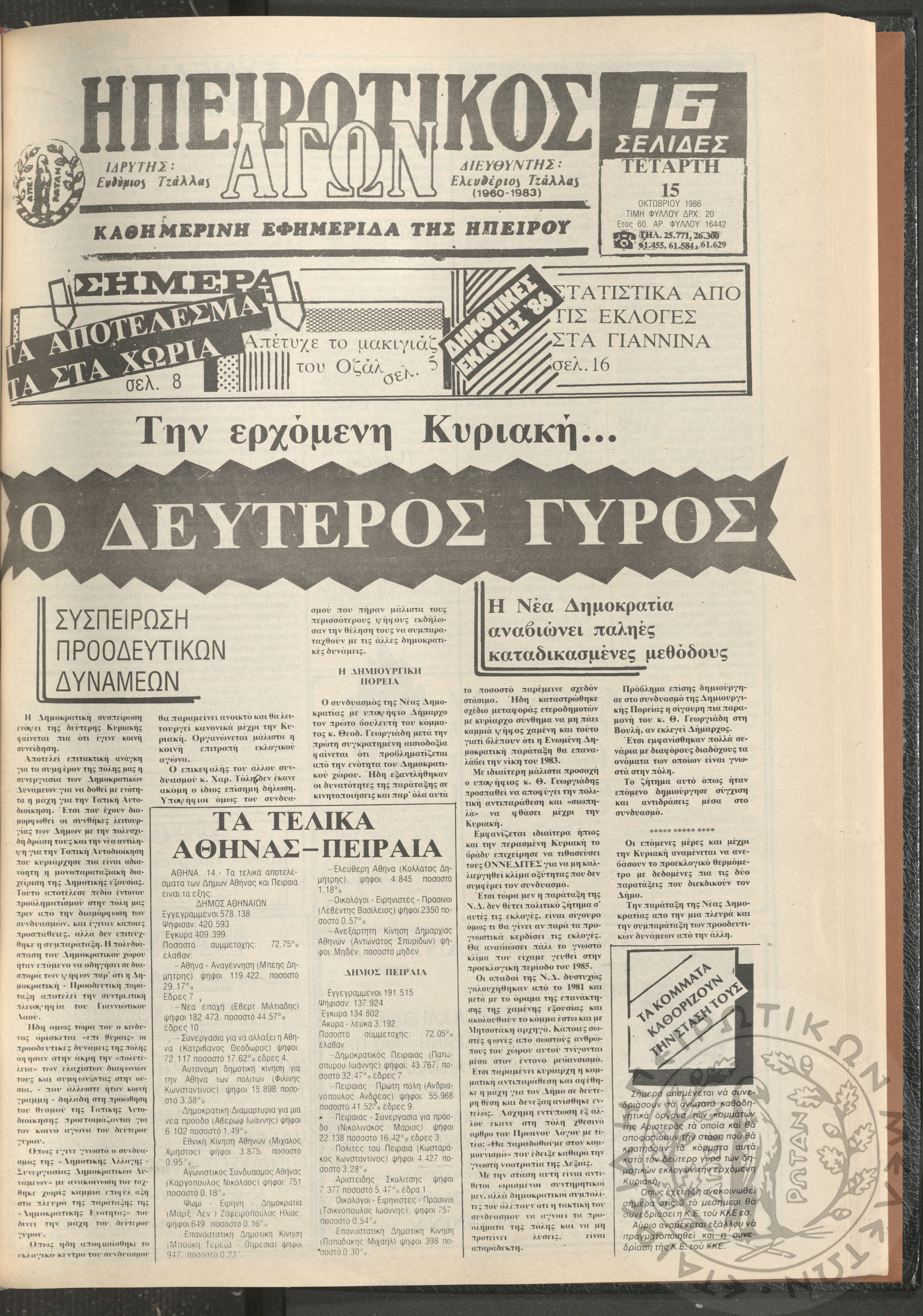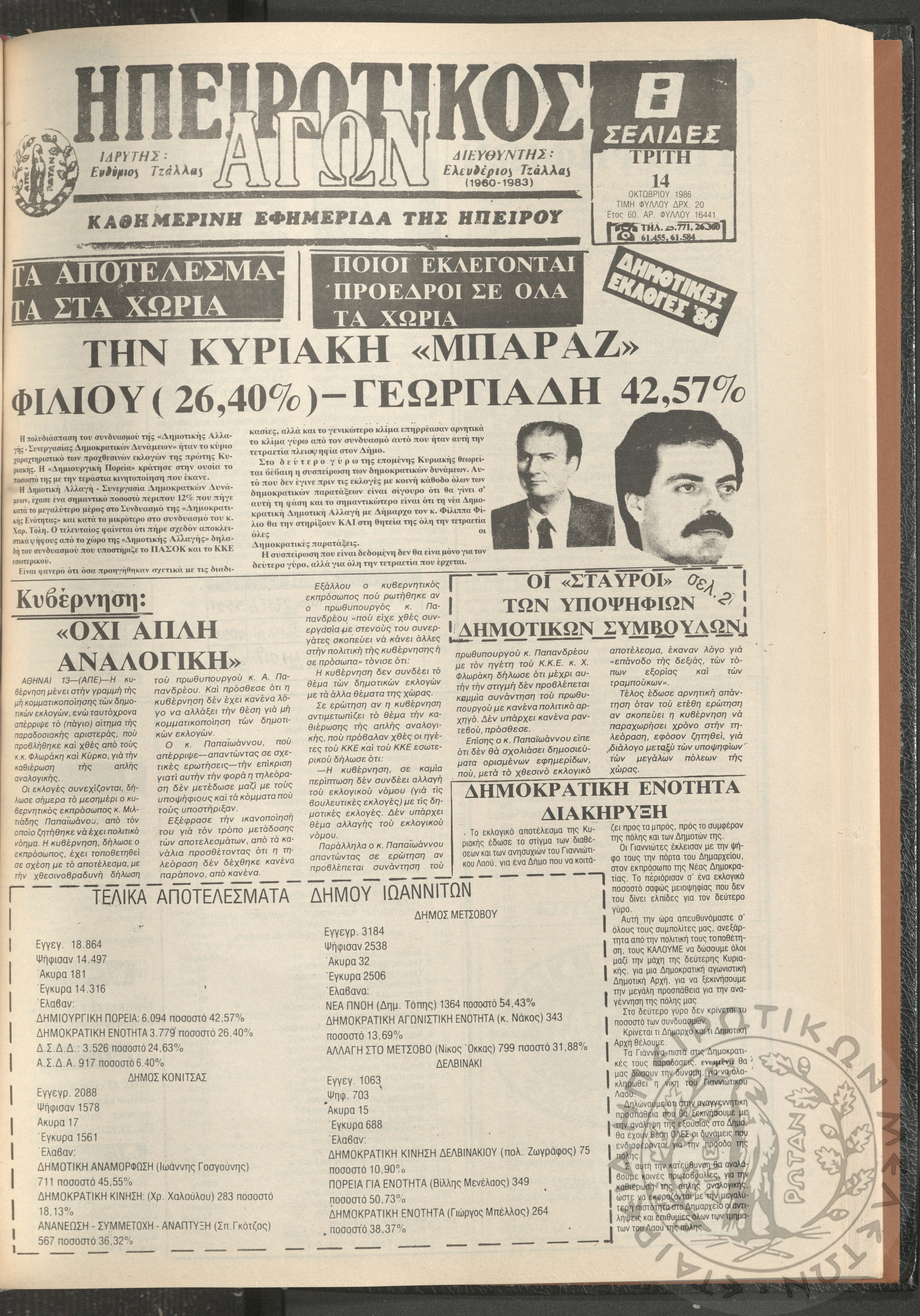 Ηπειρωτικός Αγών: καθημερινή εφημερίδα της Ηπείρου, 1986, φ. 16442