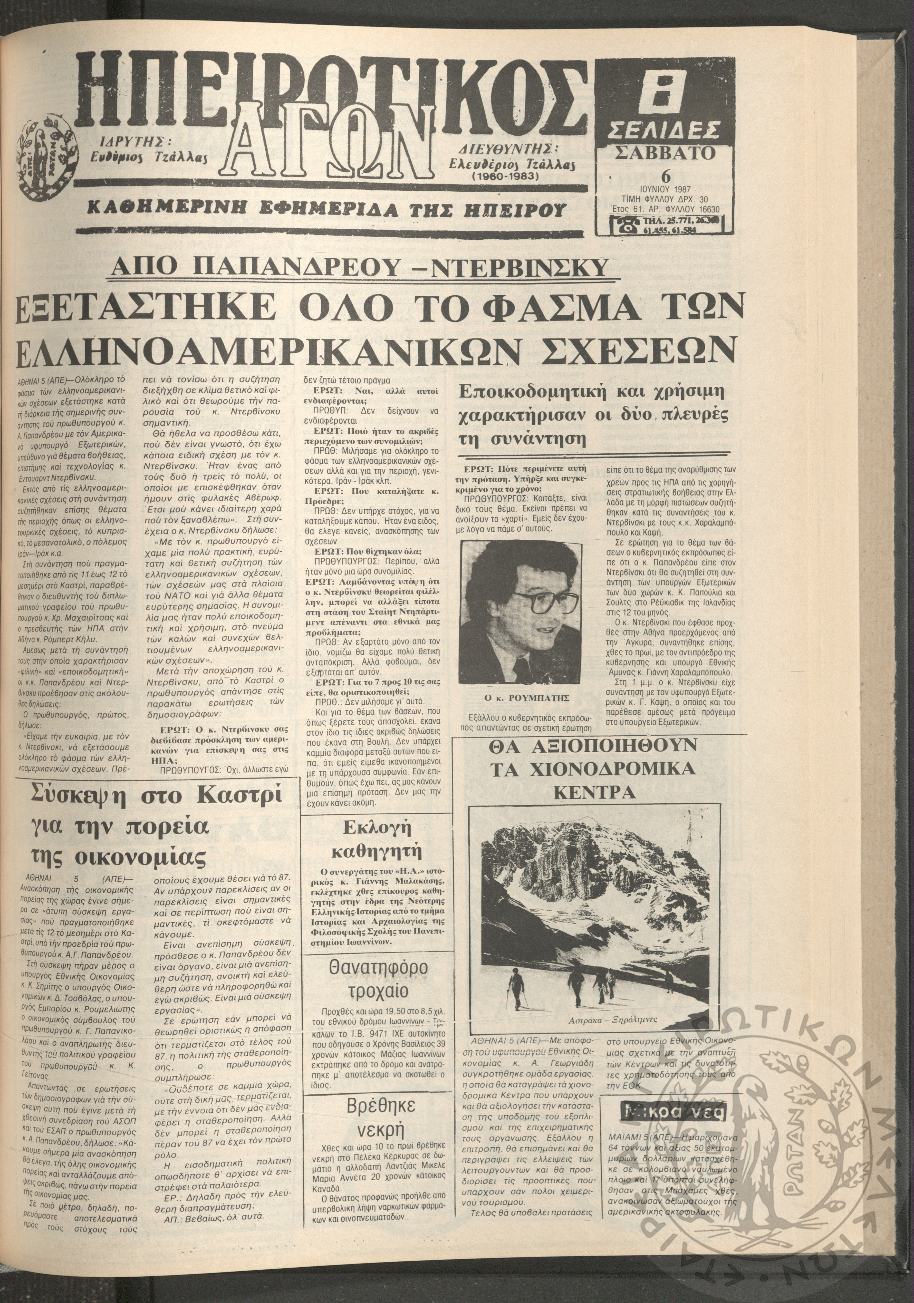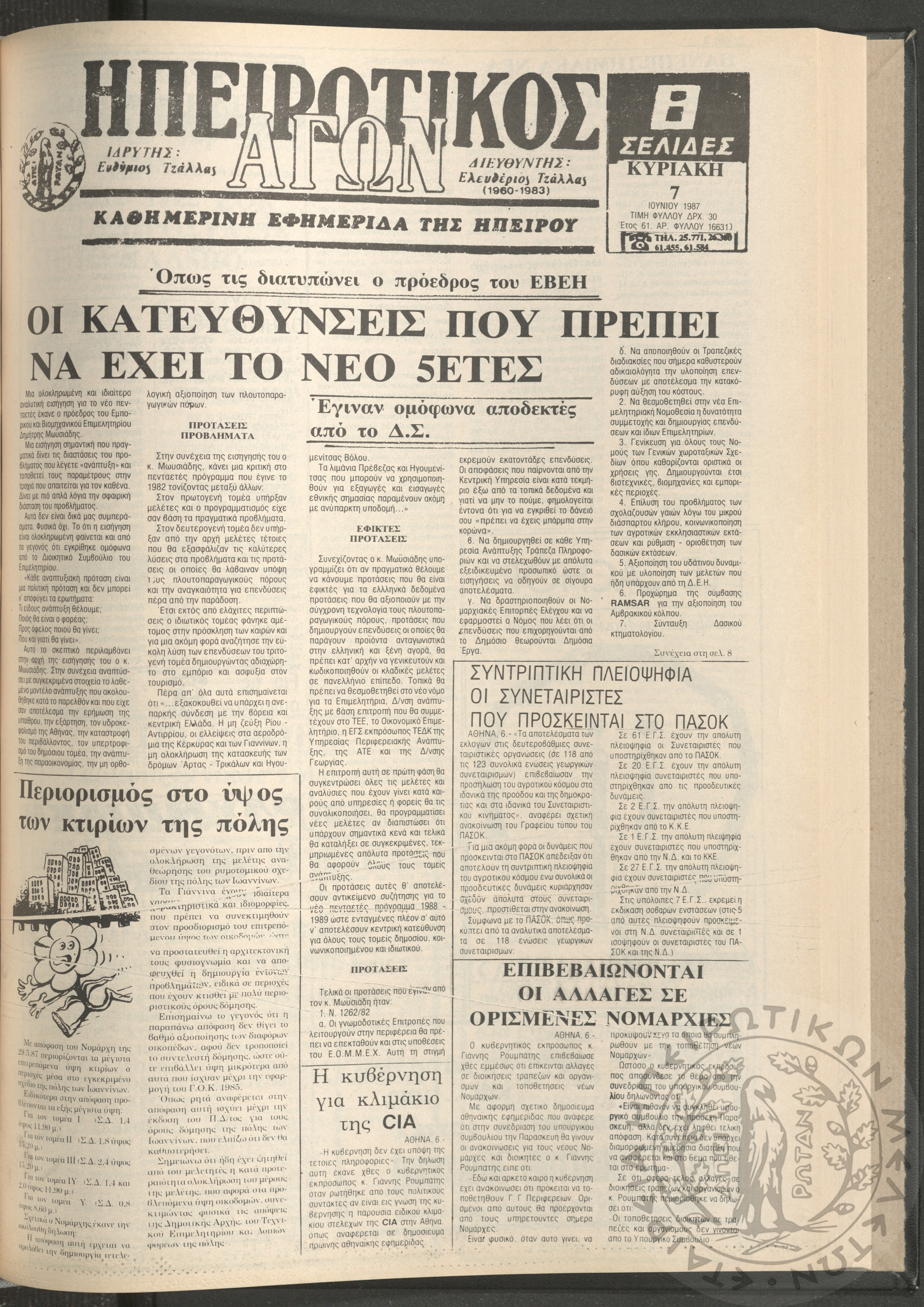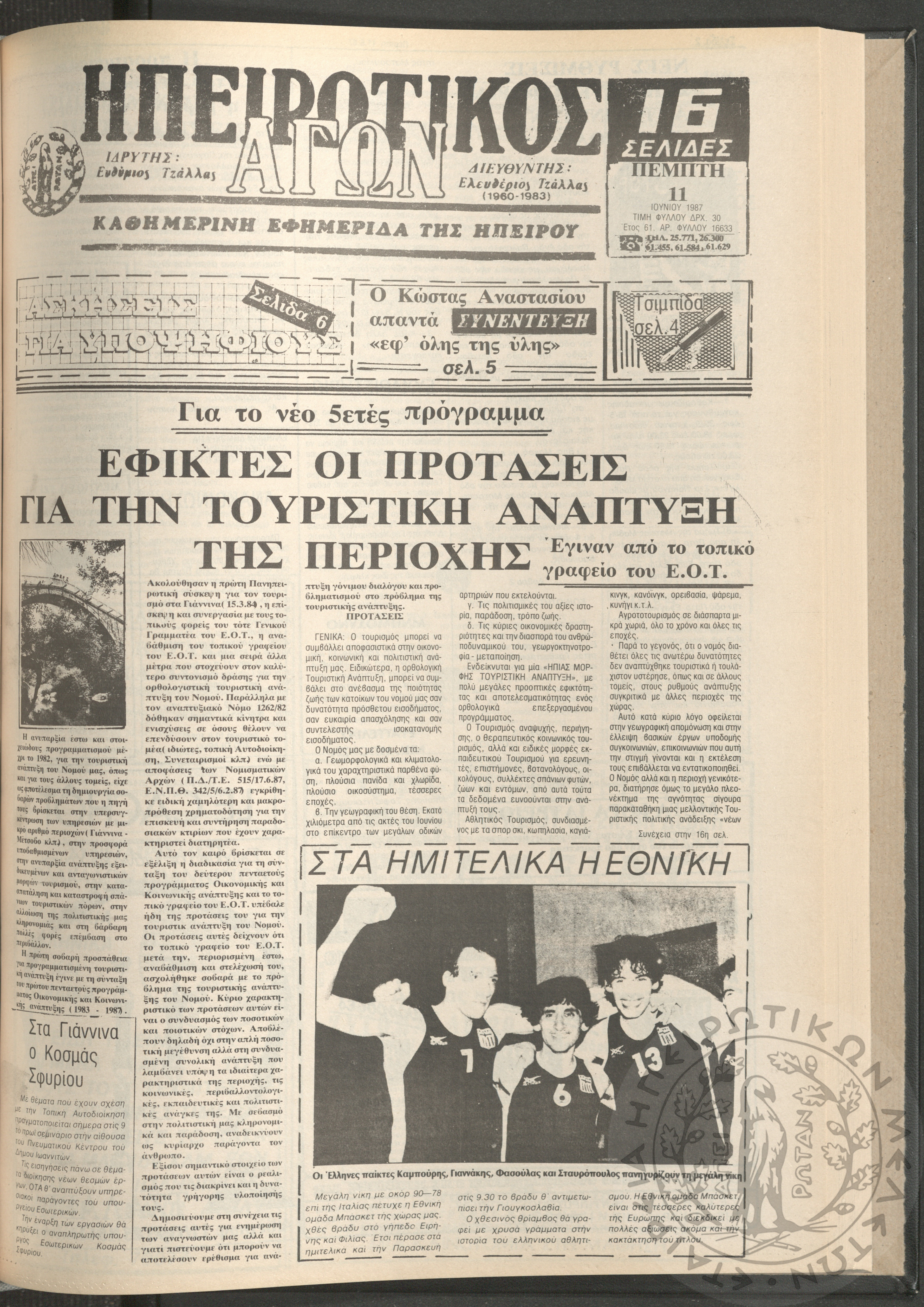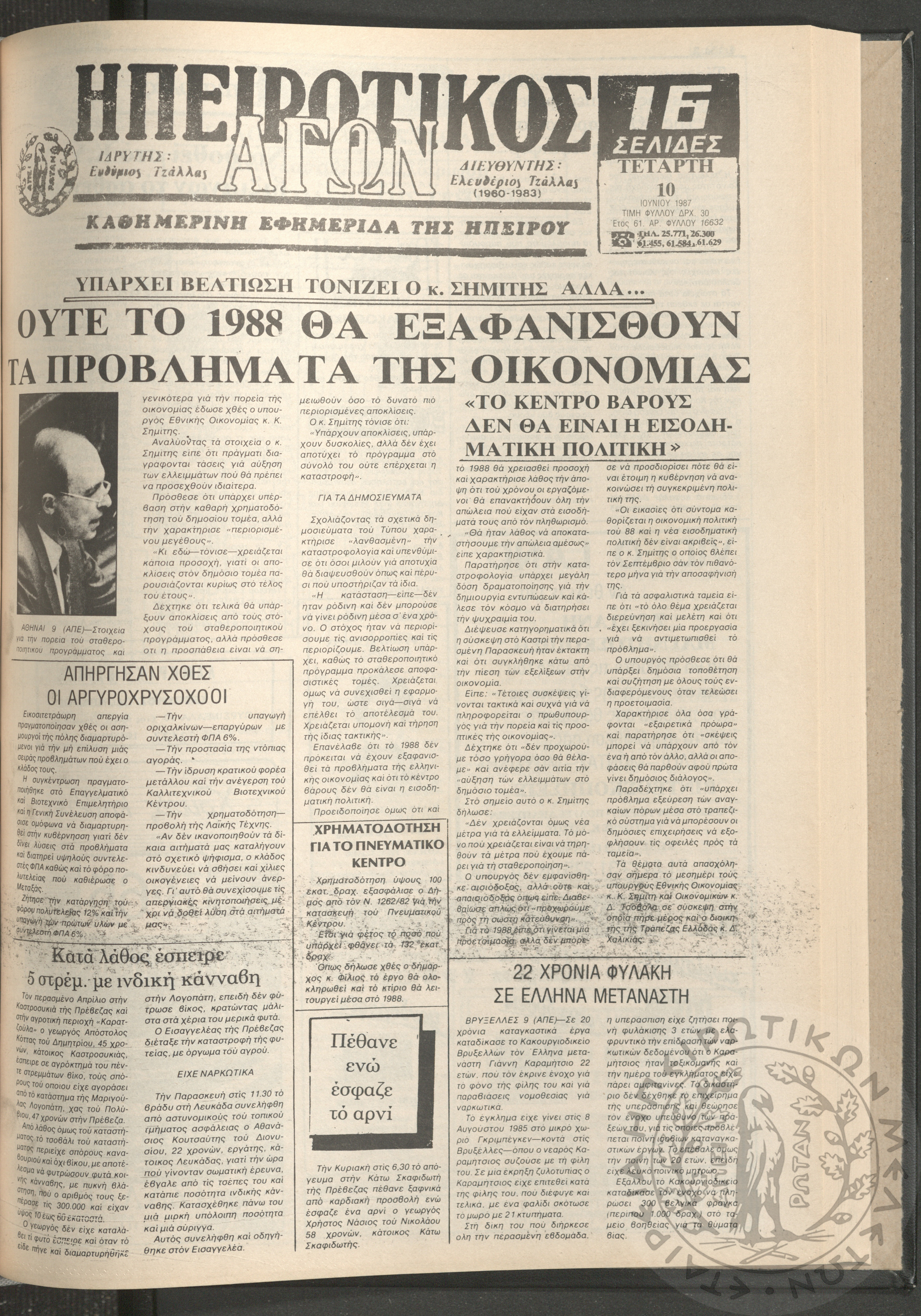 Ηπειρωτικός Αγών: καθημερινή εφημερίδα της Ηπείρου, 1987, φ. 16621
