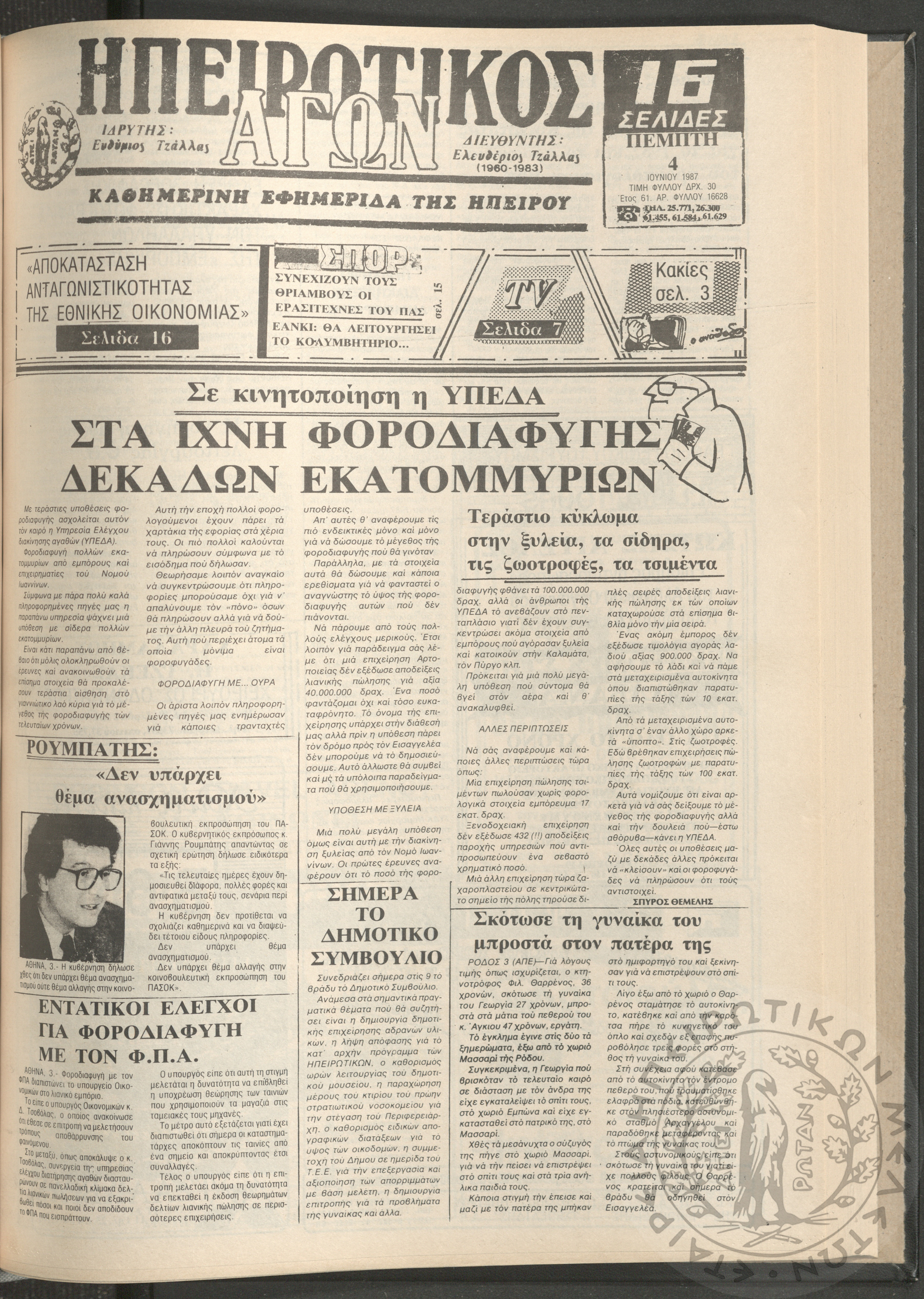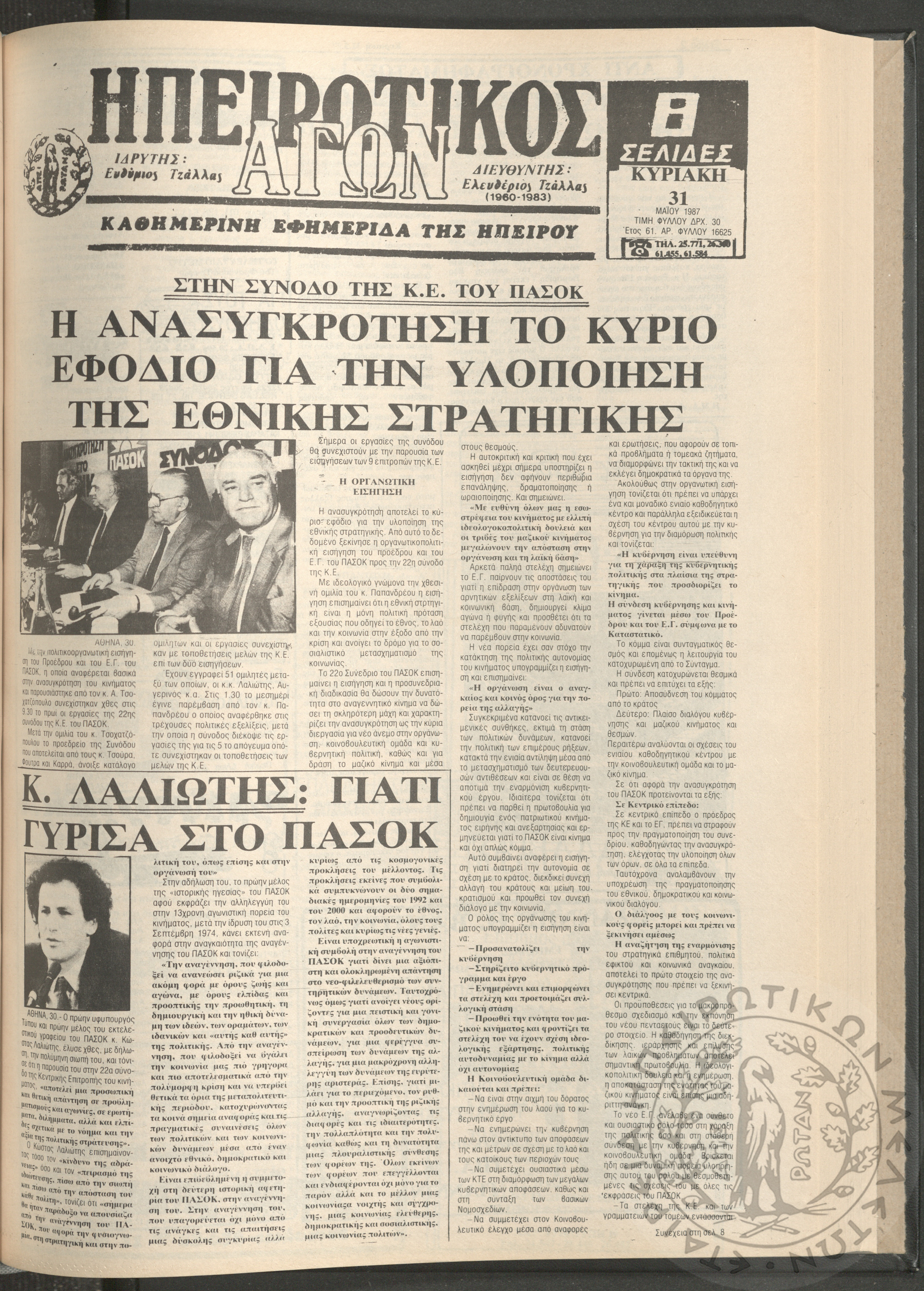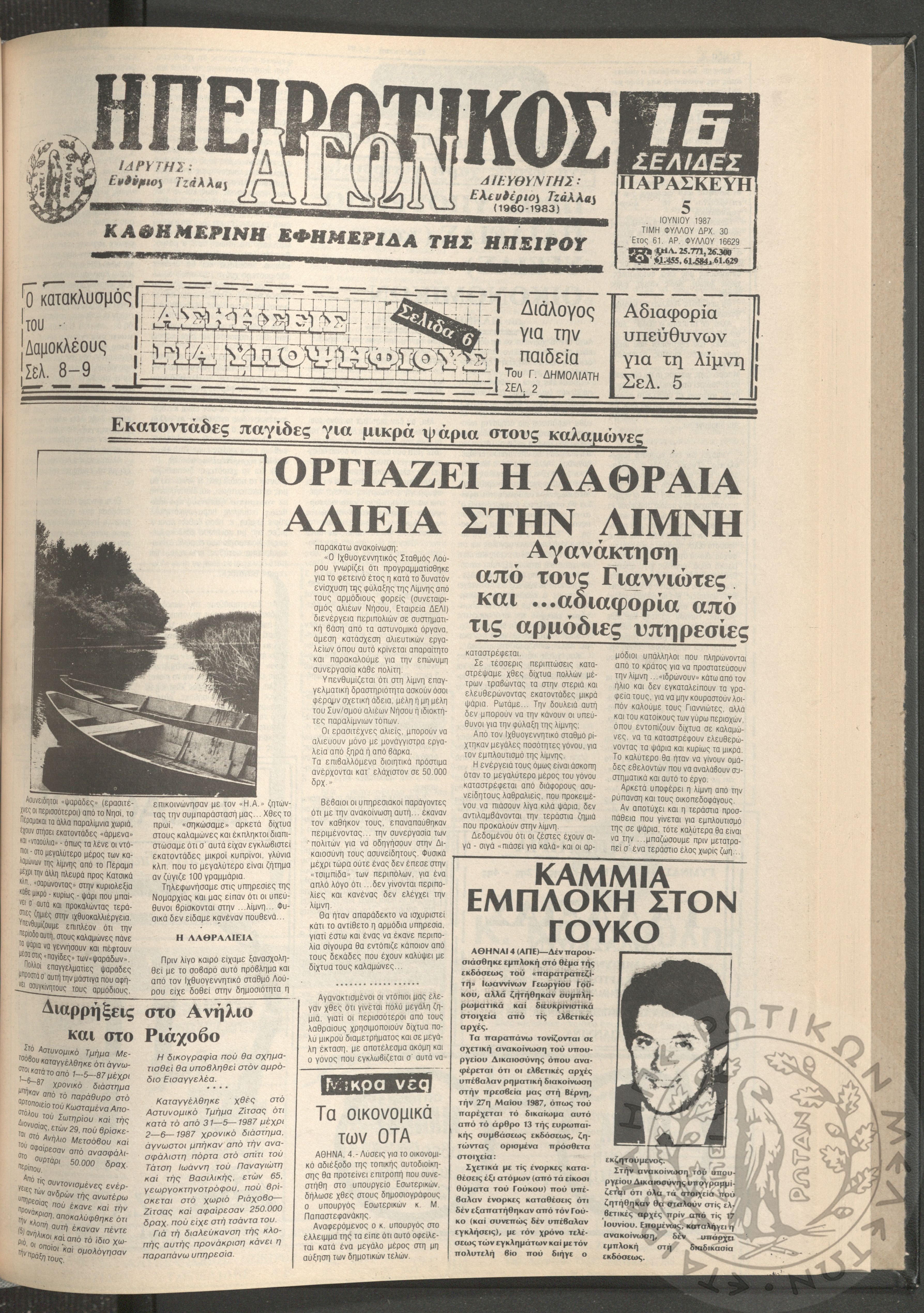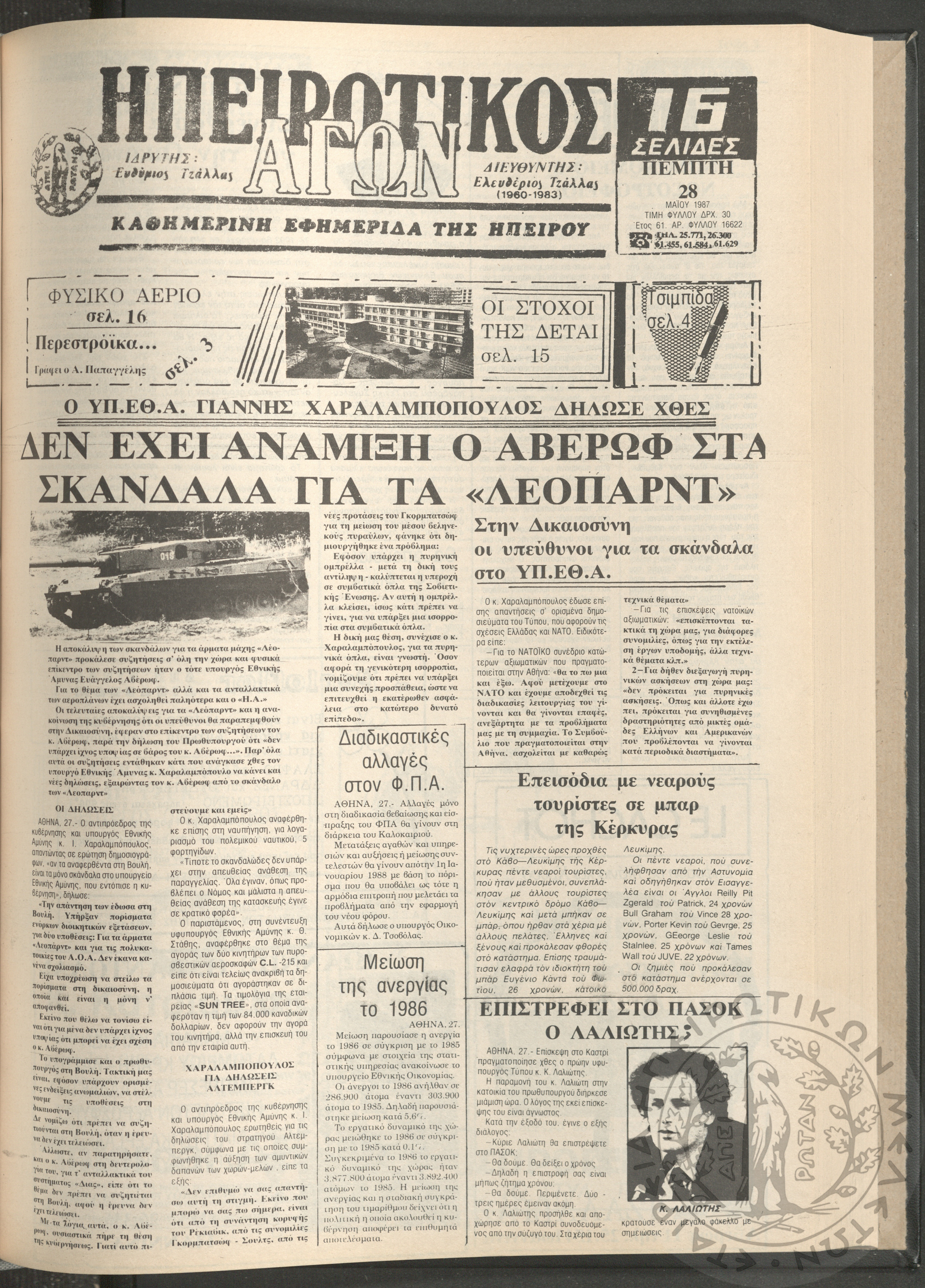 Ηπειρωτικός Αγών: καθημερινή εφημερίδα της Ηπείρου, 1987, φ. 16621