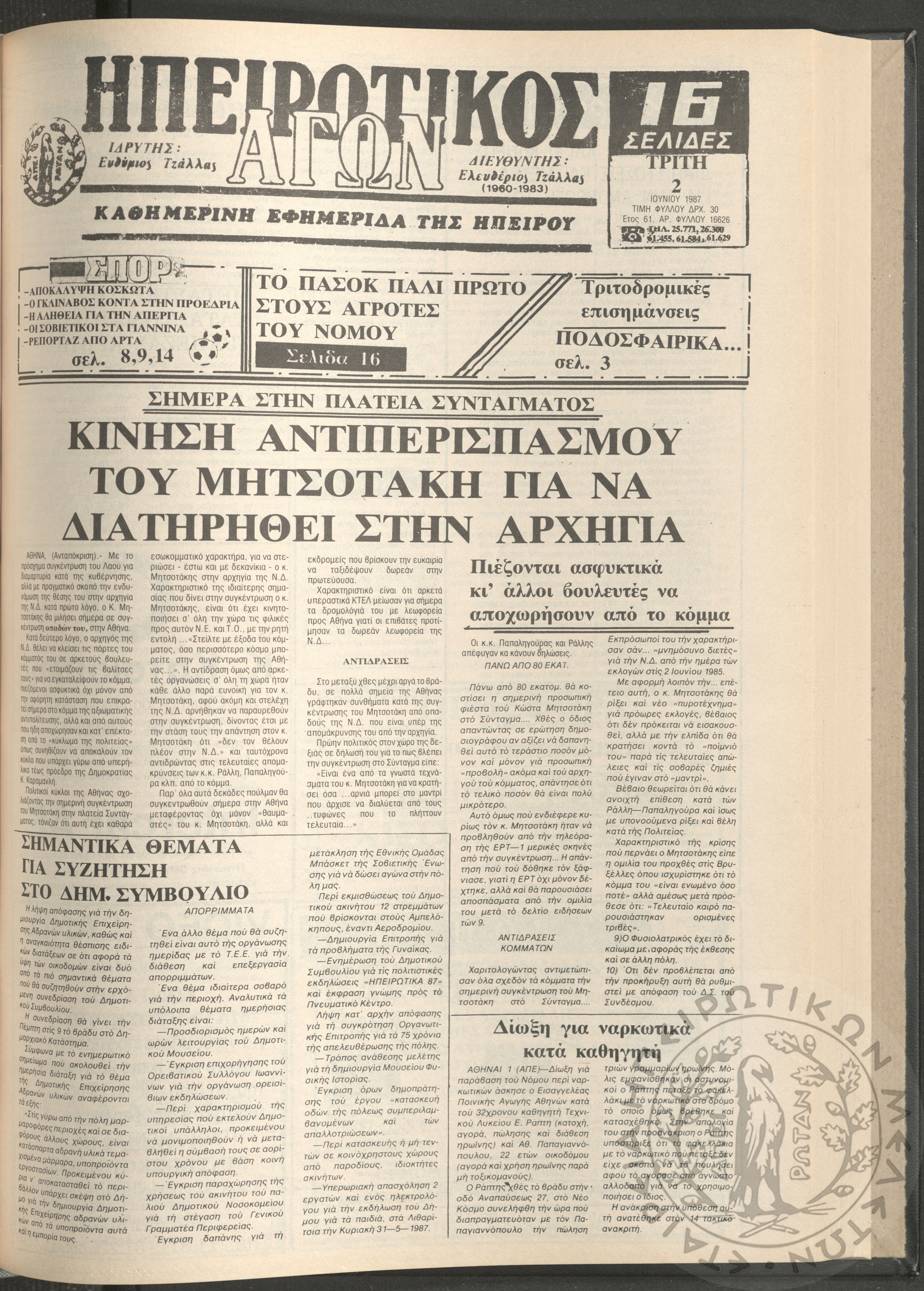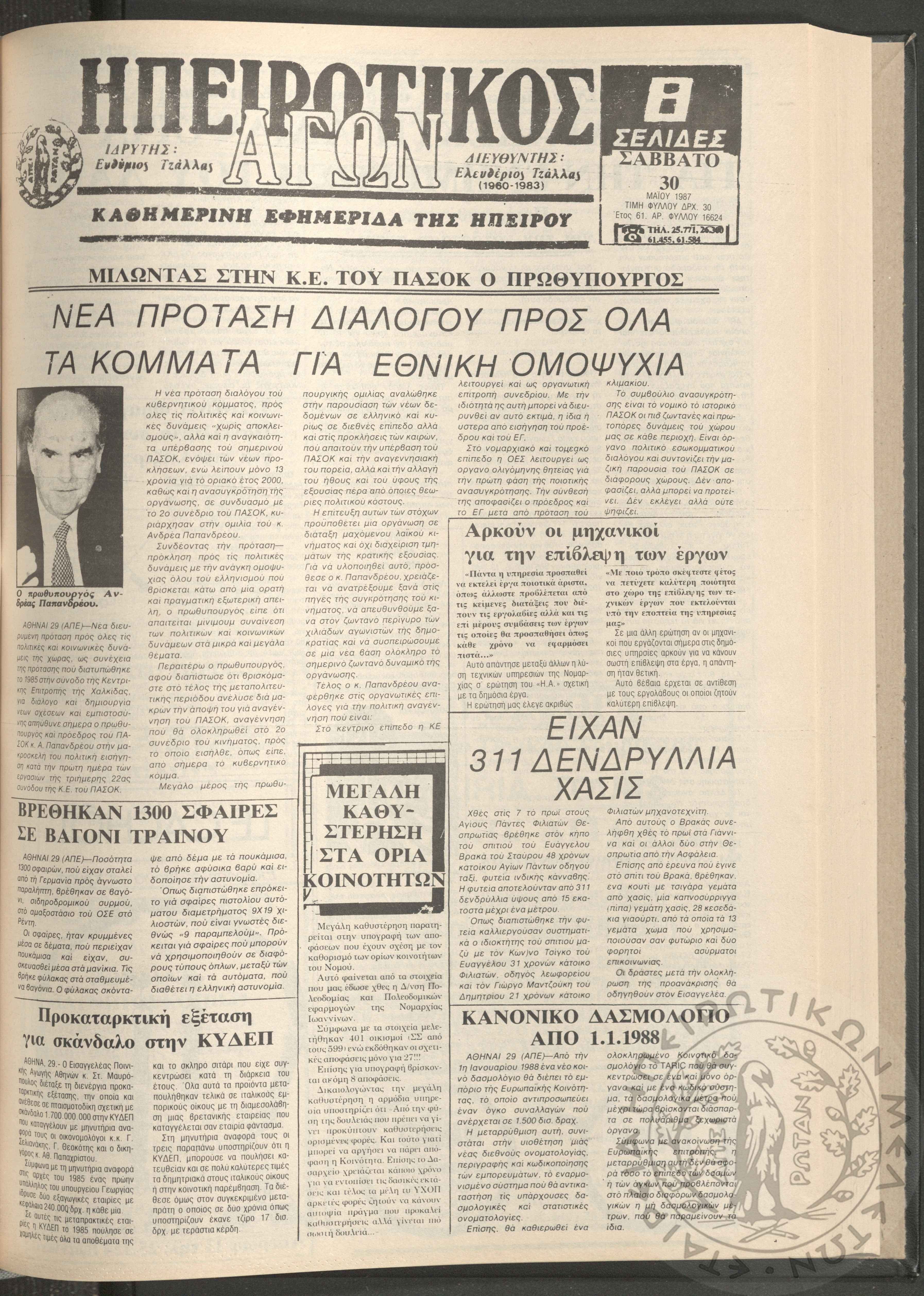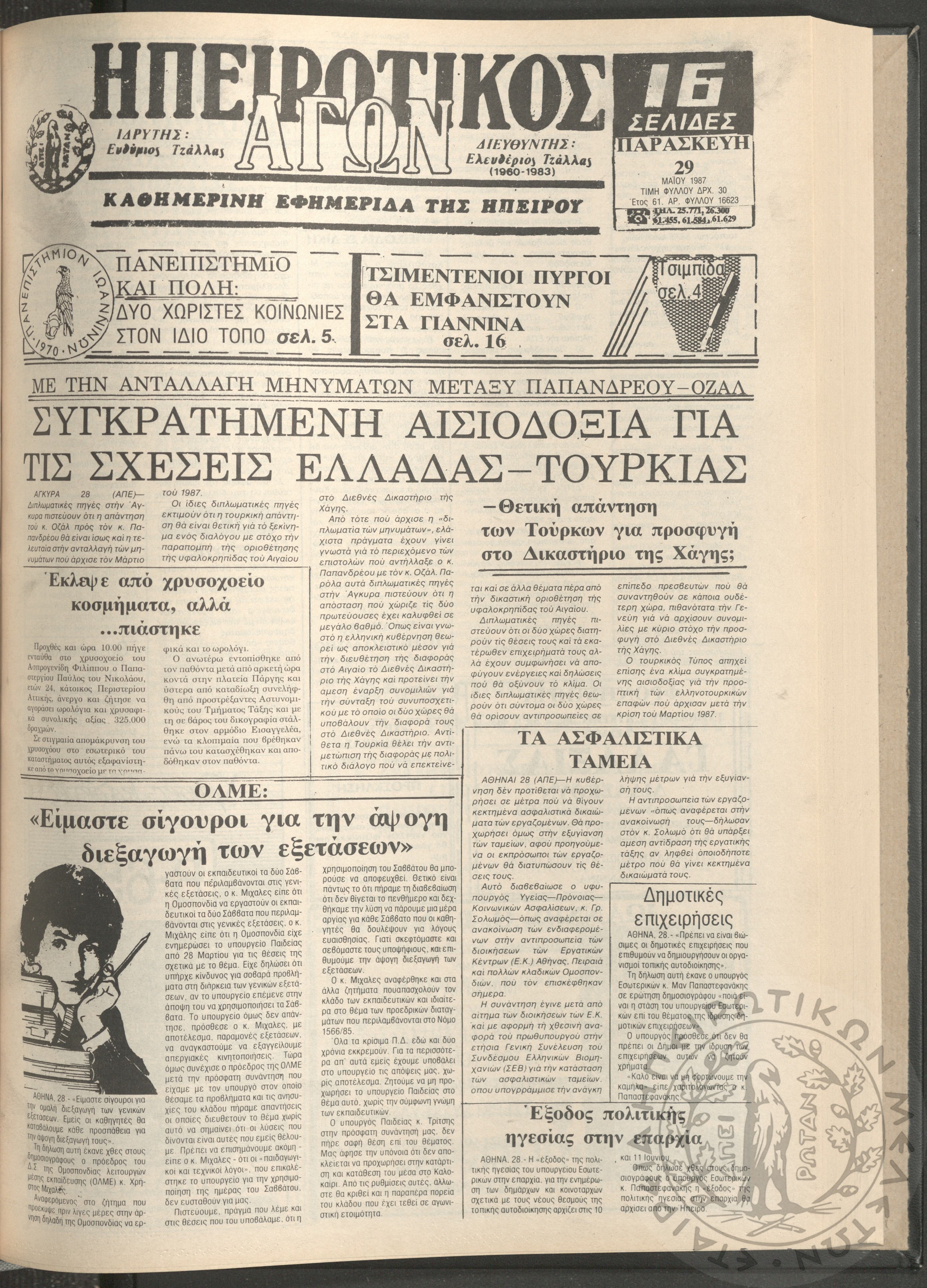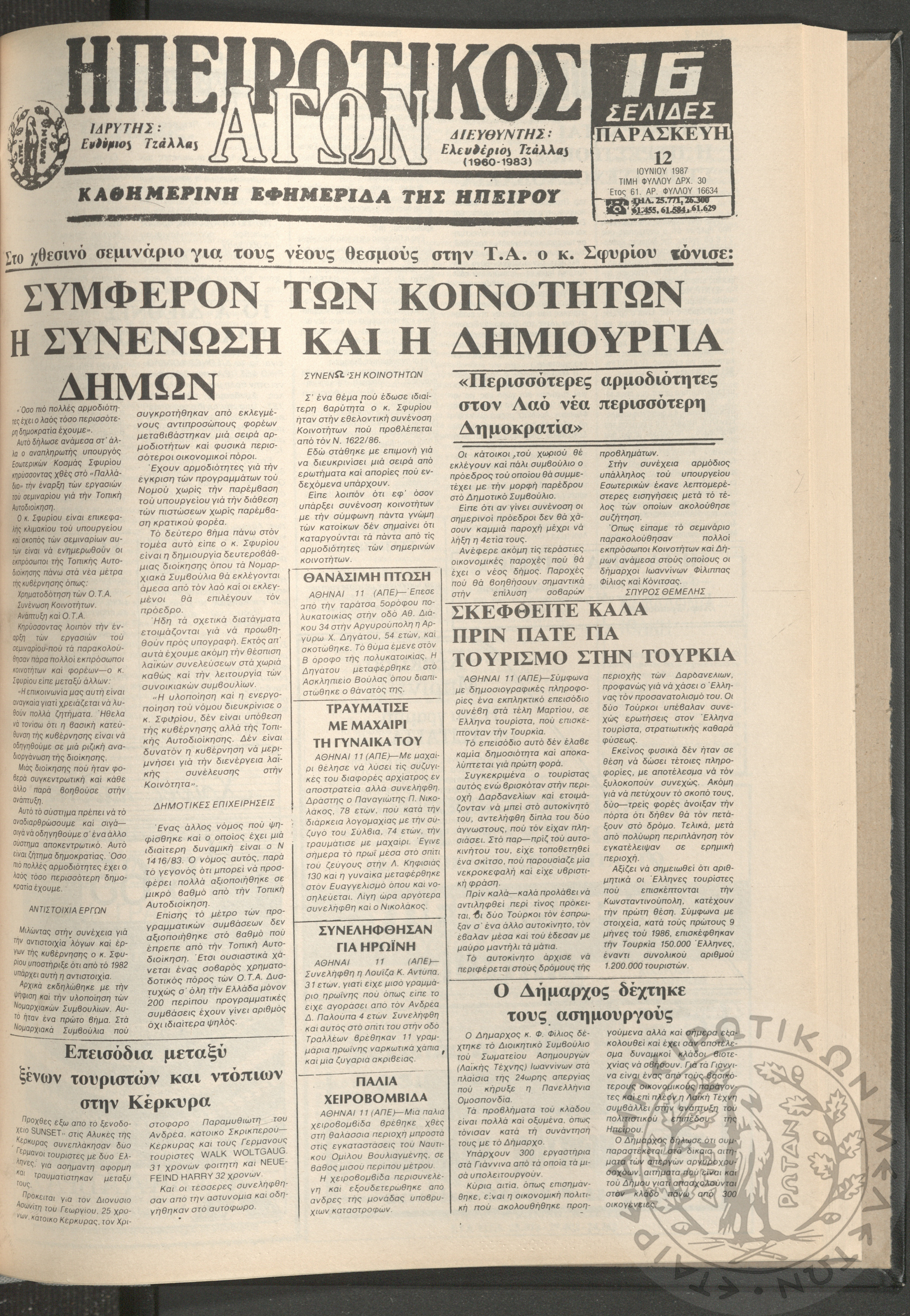 Ηπειρωτικός Αγών: καθημερινή εφημερίδα της Ηπείρου, 1987, φ. 16621