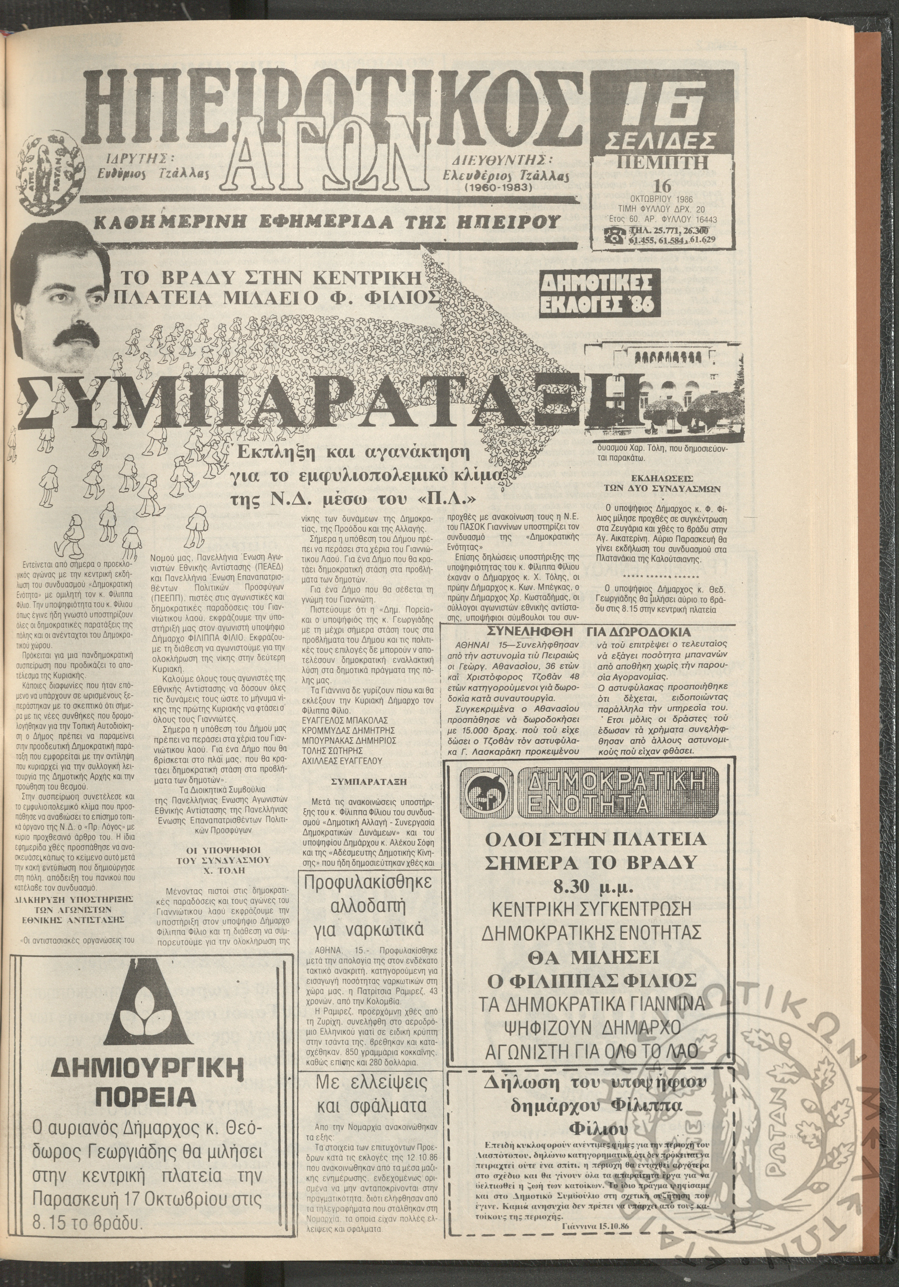 Ηπειρωτικός Αγών: καθημερινή εφημερίδα της Ηπείρου, 1986, φ. 16443