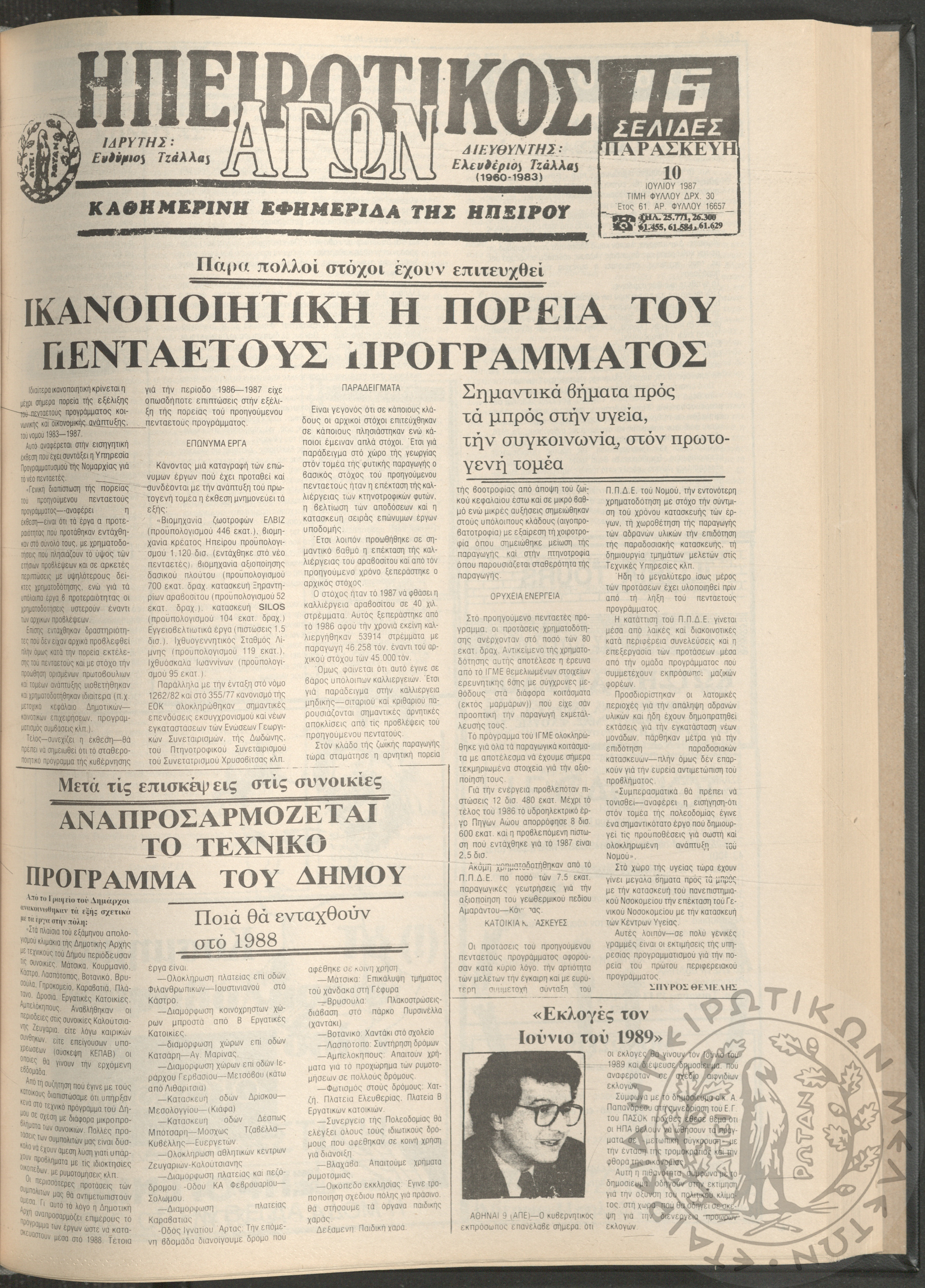 Ηπειρωτικός Αγών: καθημερινή εφημερίδα της Ηπείρου, 1987, φ. 16651