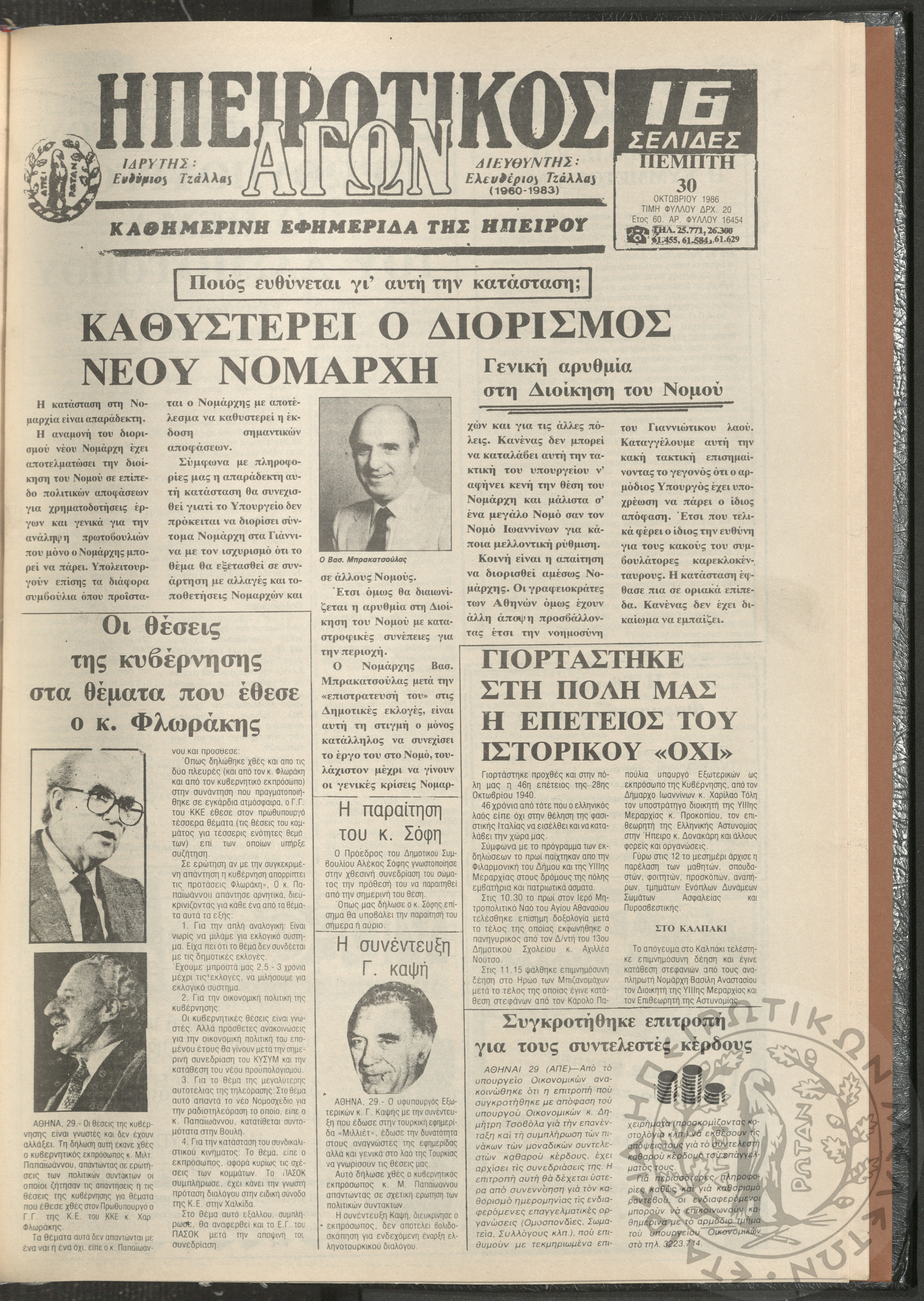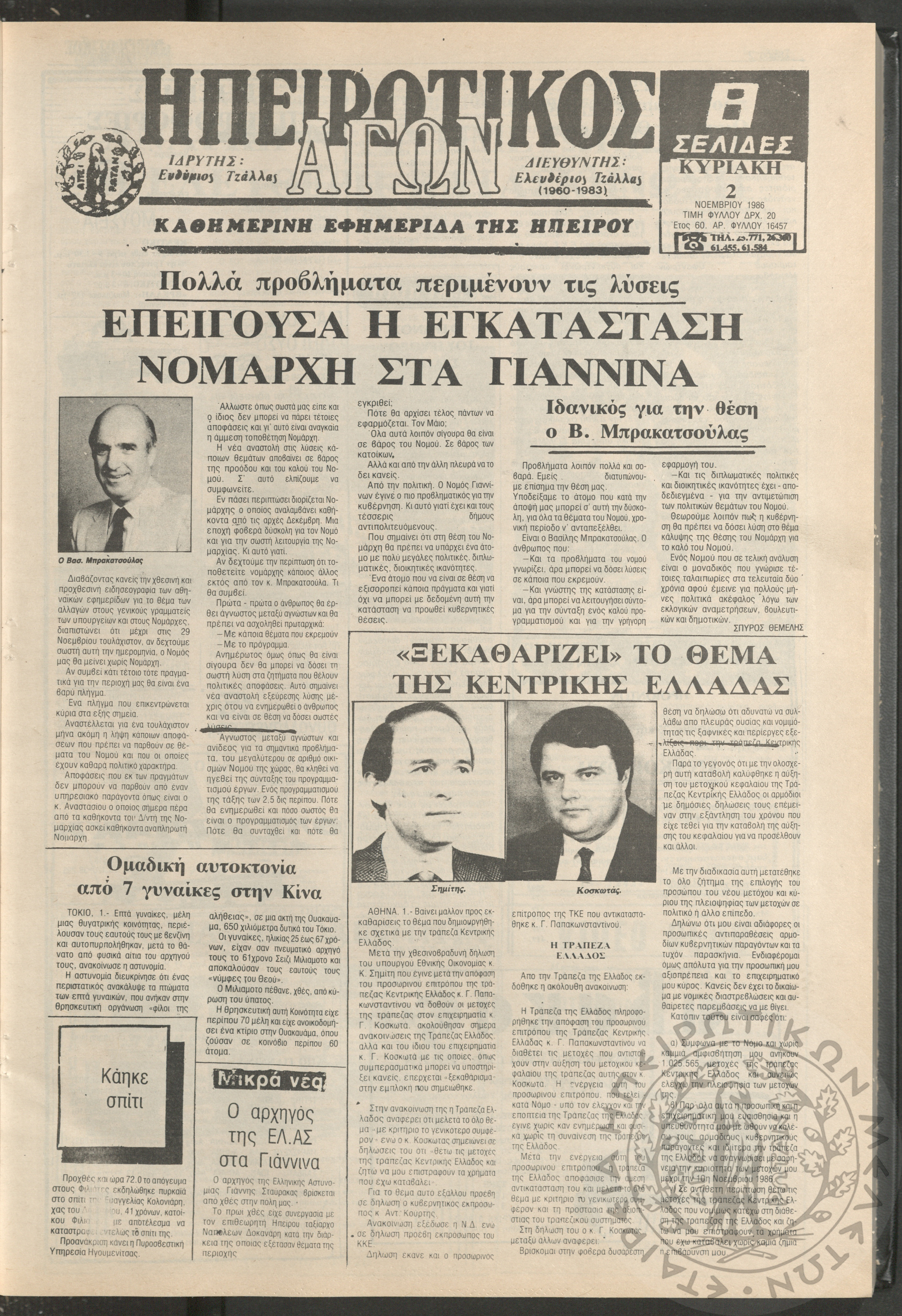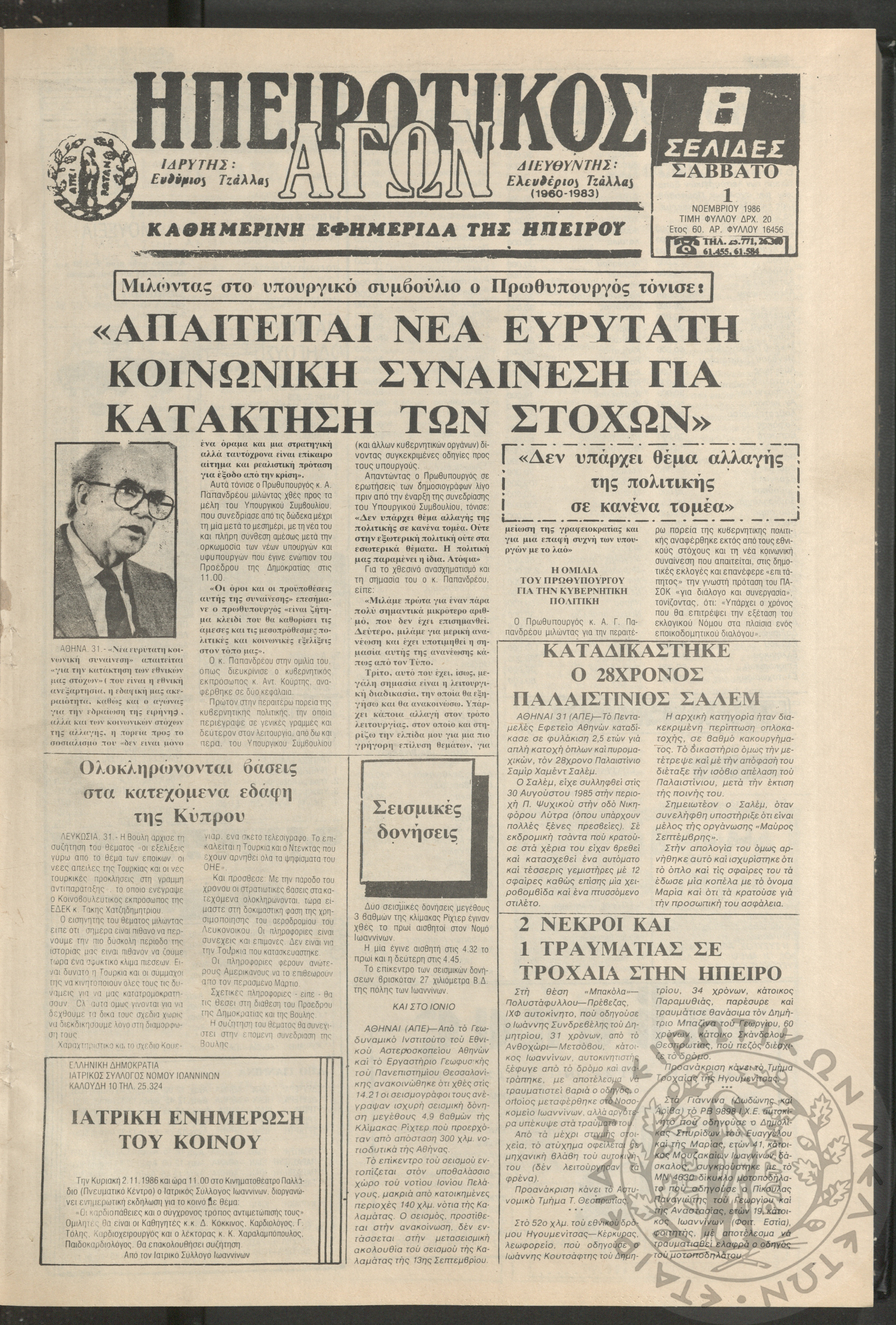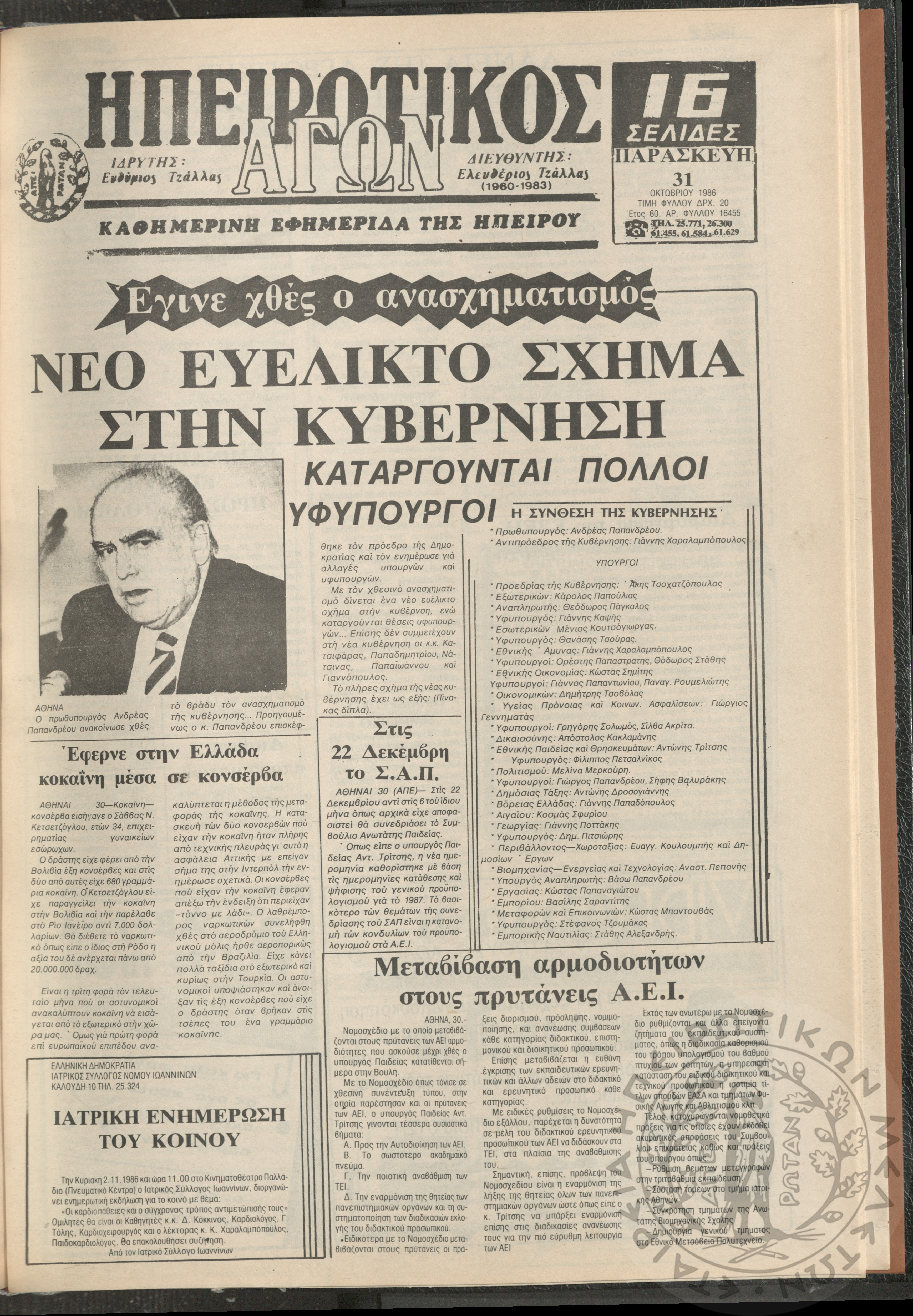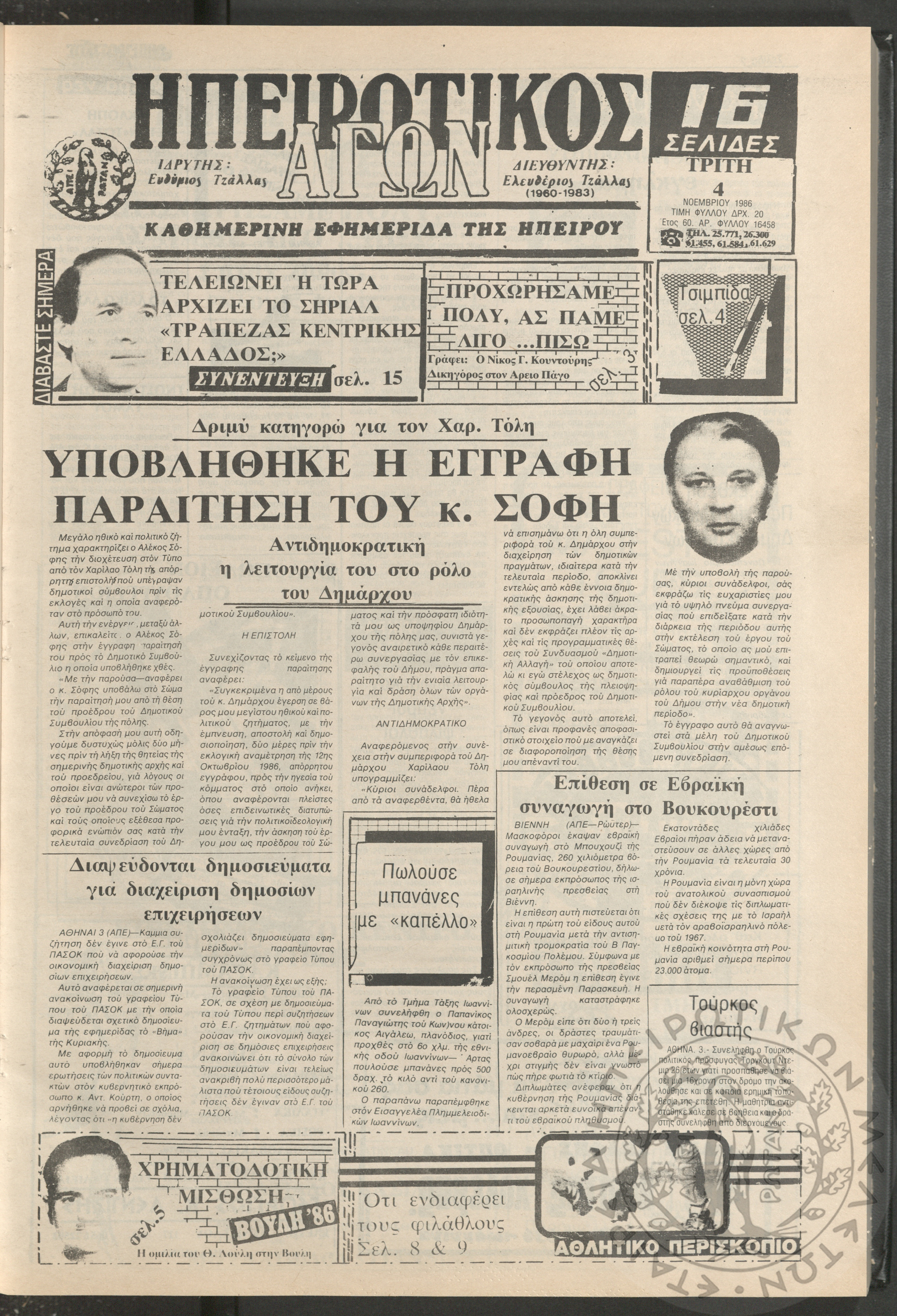 Ηπειρωτικός Αγών: καθημερινή εφημερίδα της Ηπείρου, 1986, φ. 16455
