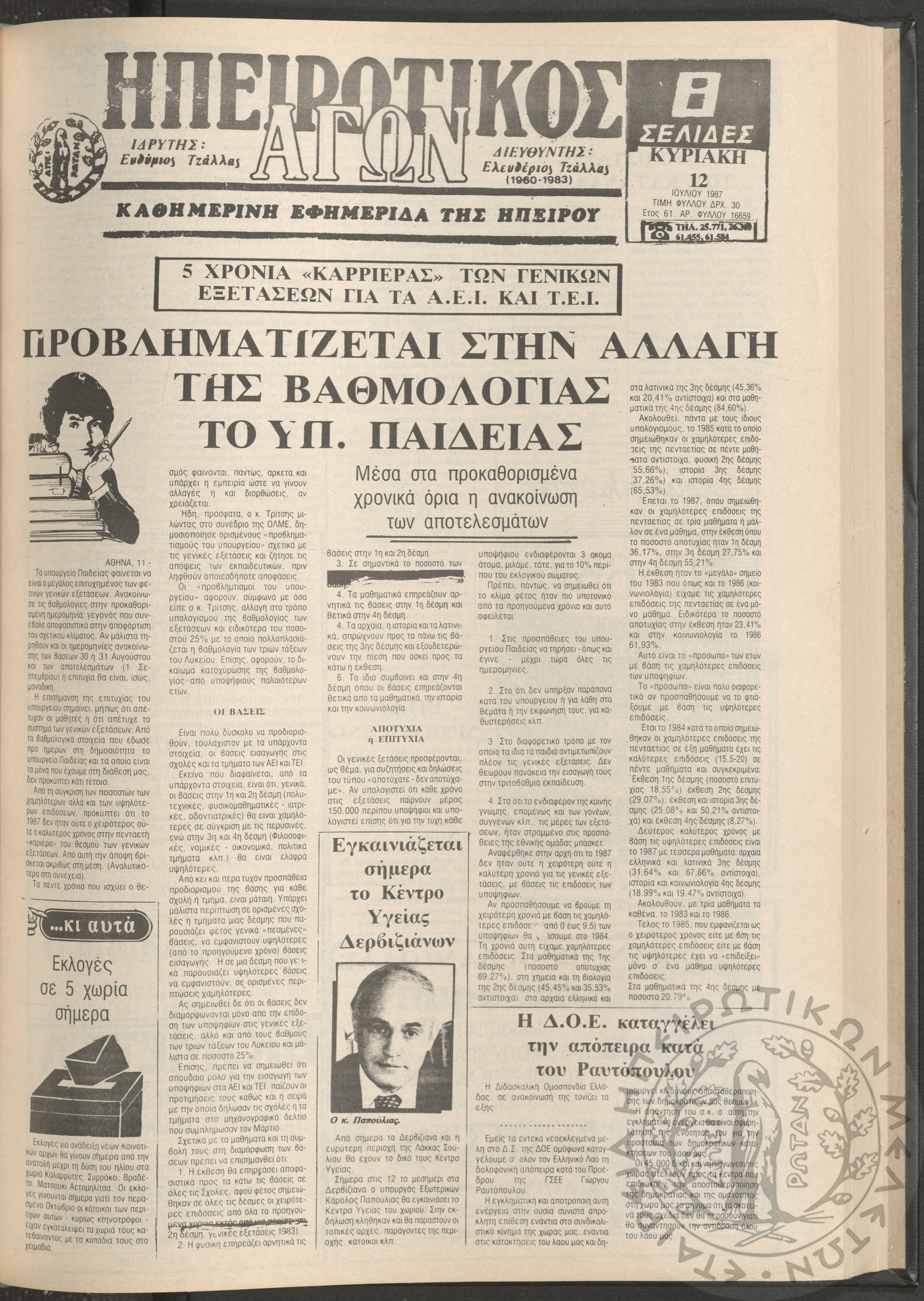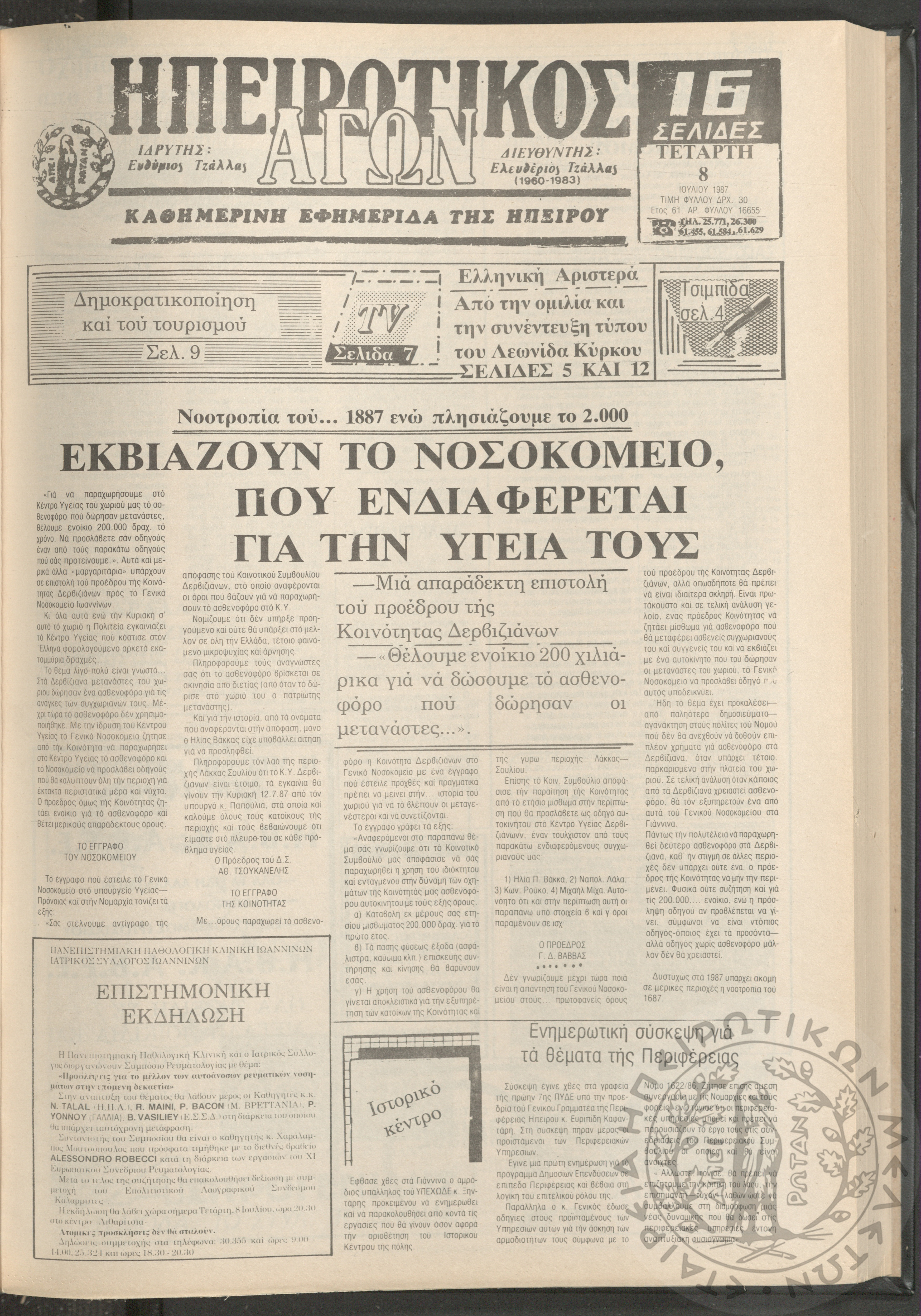 Ηπειρωτικός Αγών: καθημερινή εφημερίδα της Ηπείρου, 1987, φ. 16659