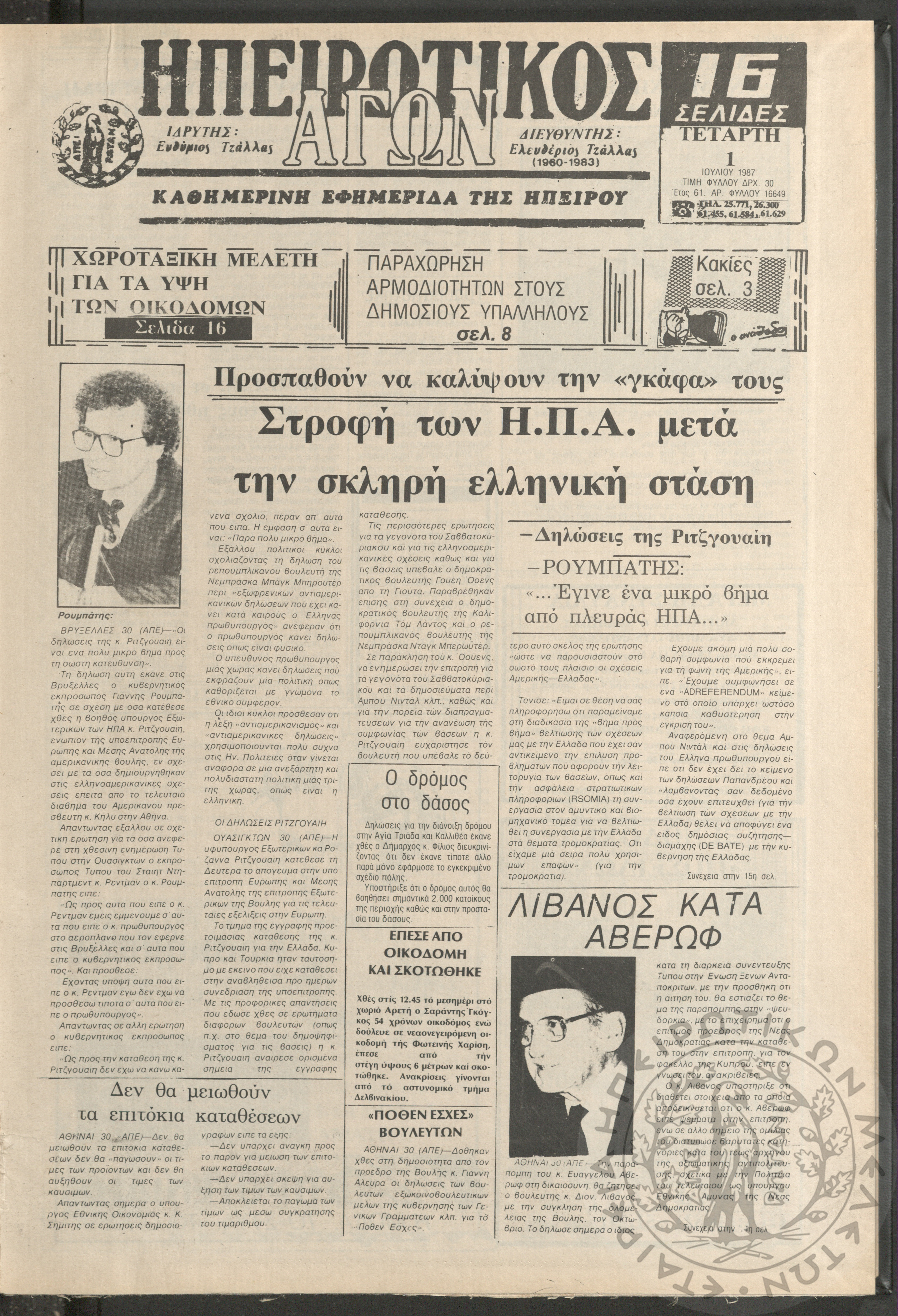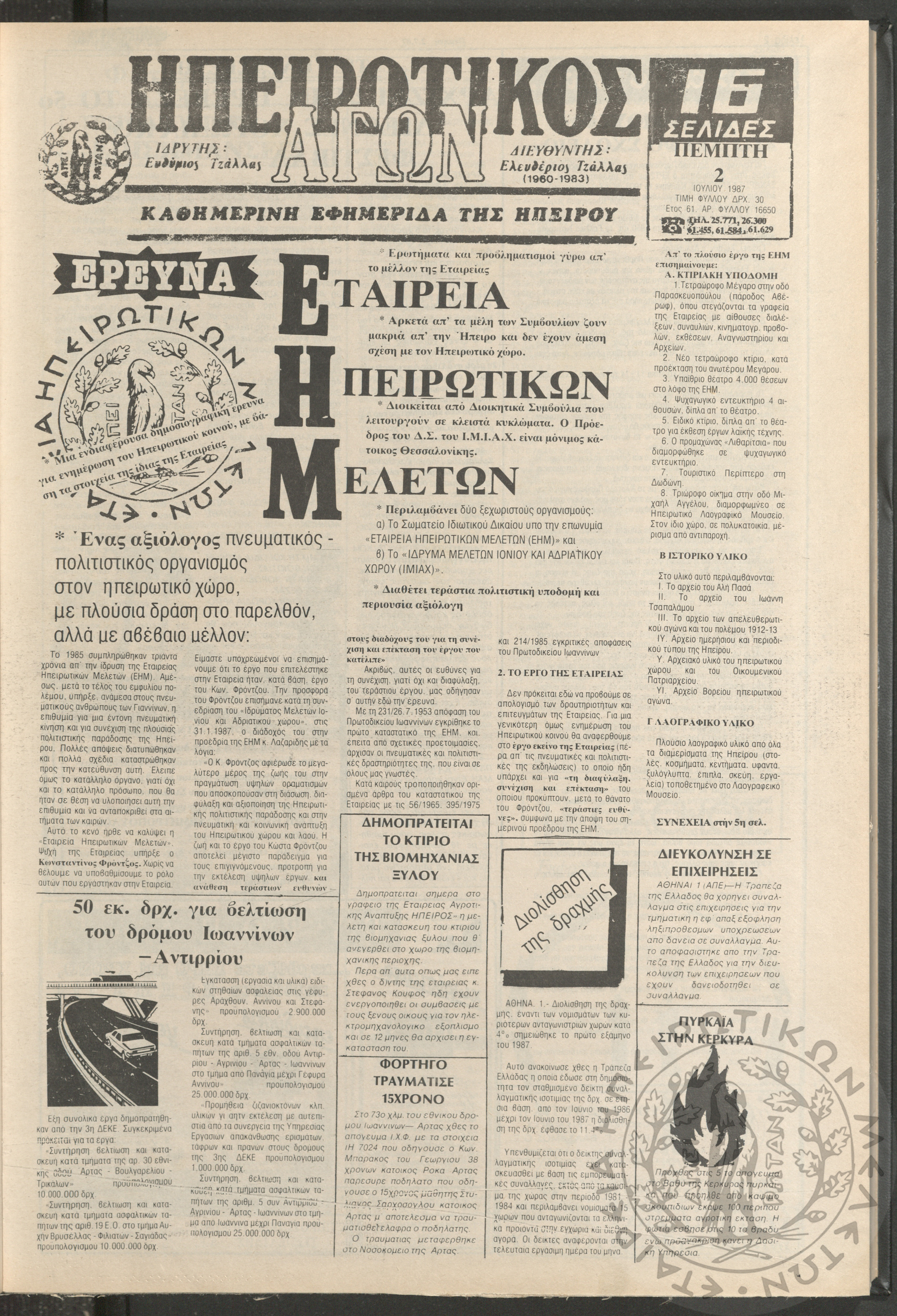 Ηπειρωτικός Αγών: καθημερινή εφημερίδα της Ηπείρου, 1987, φ. 16649