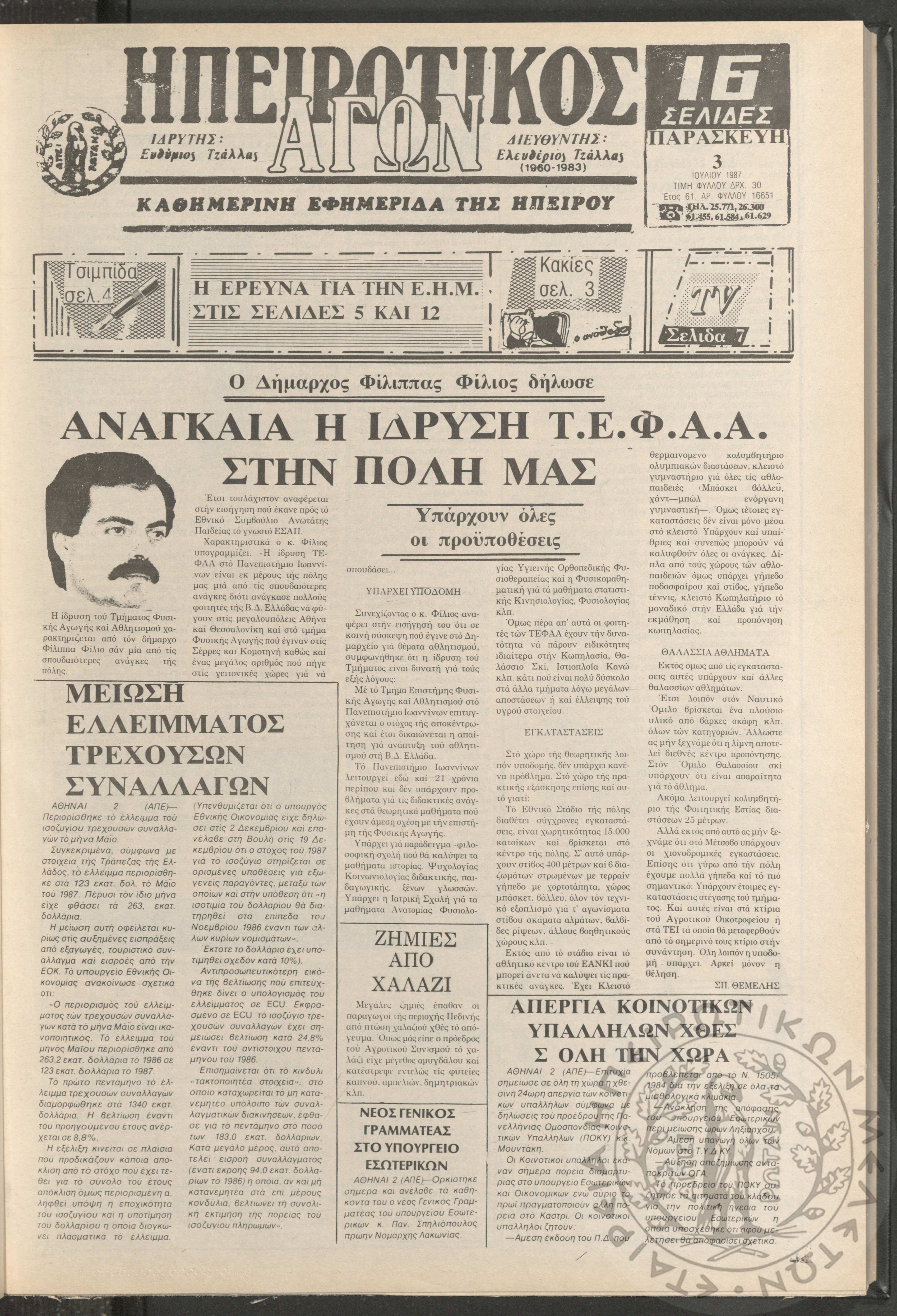 Ηπειρωτικός Αγών: καθημερινή εφημερίδα της Ηπείρου, 1987, φ. 16653