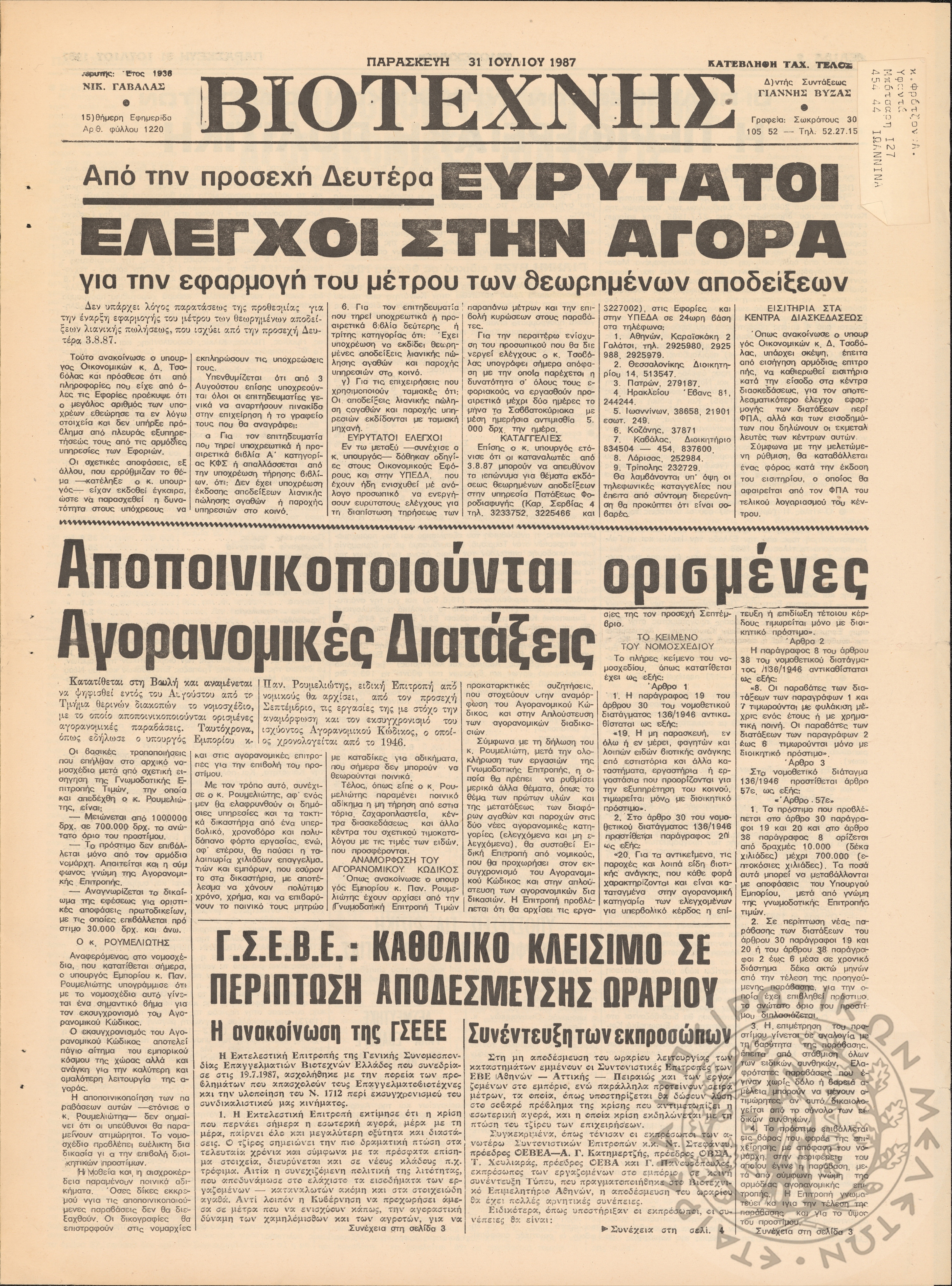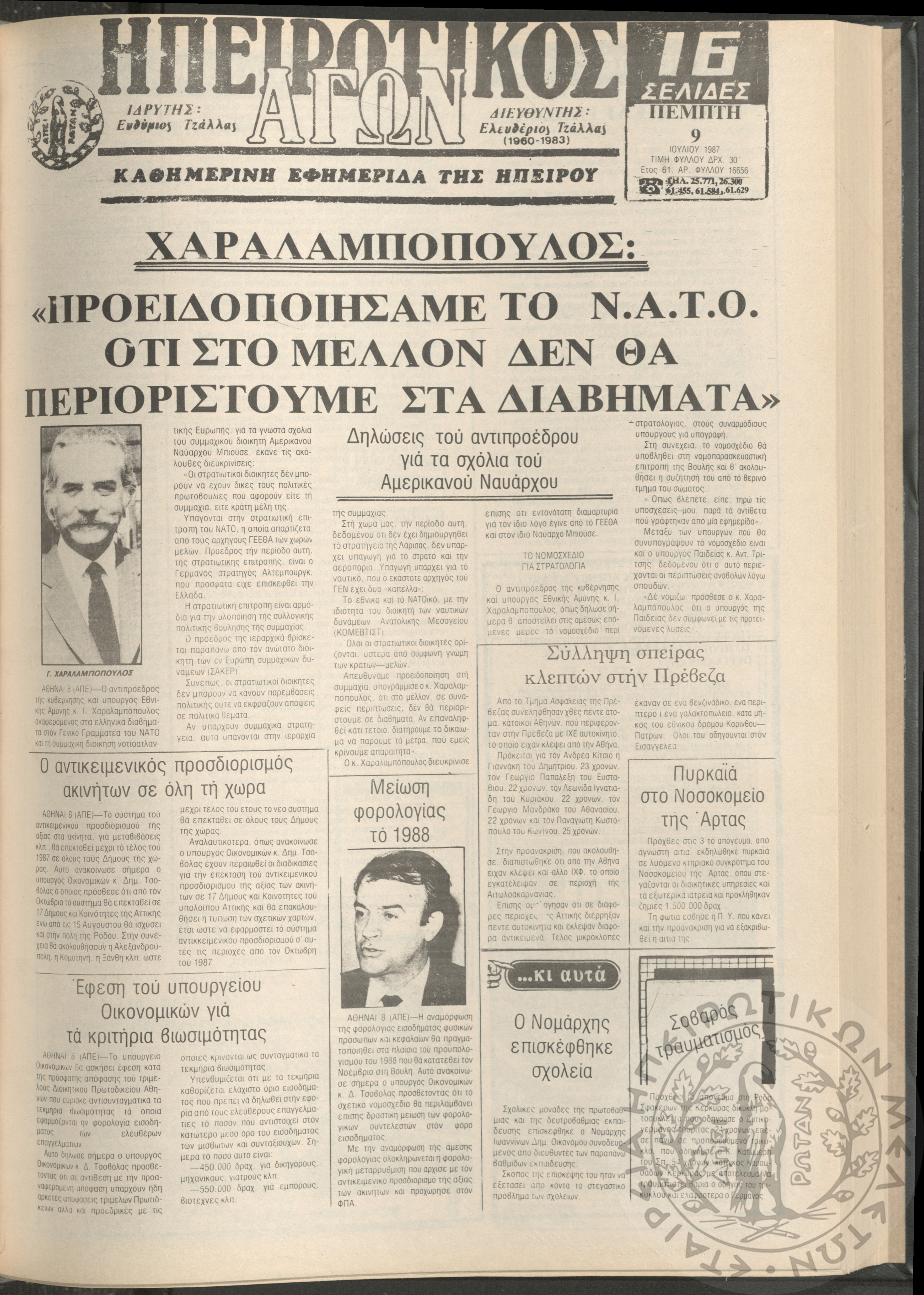 Ηπειρωτικός Αγών: καθημερινή εφημερίδα της Ηπείρου, 1987, φ. 16652