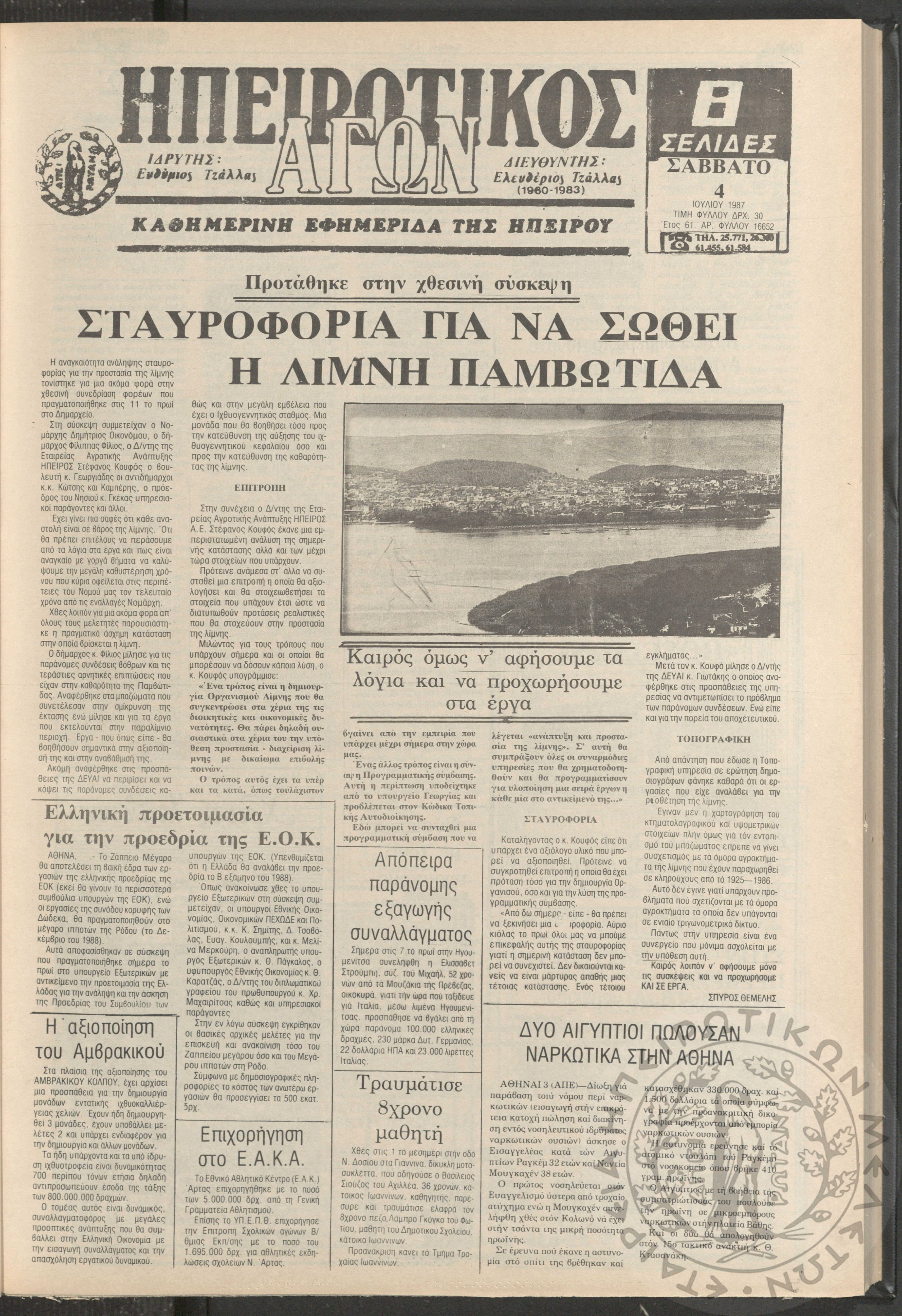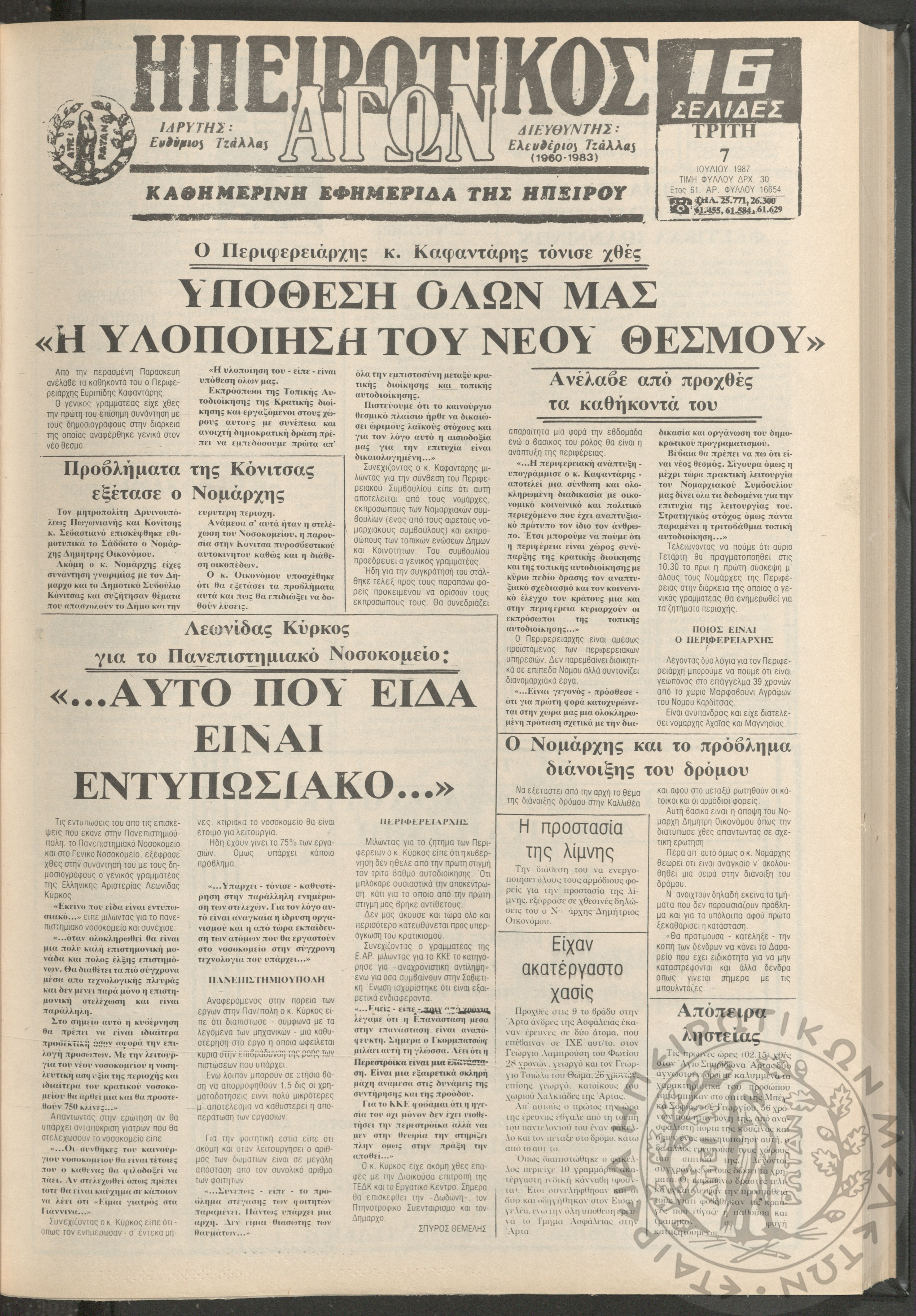 Ηπειρωτικός Αγών: καθημερινή εφημερίδα της Ηπείρου, 1987, φ. 16654