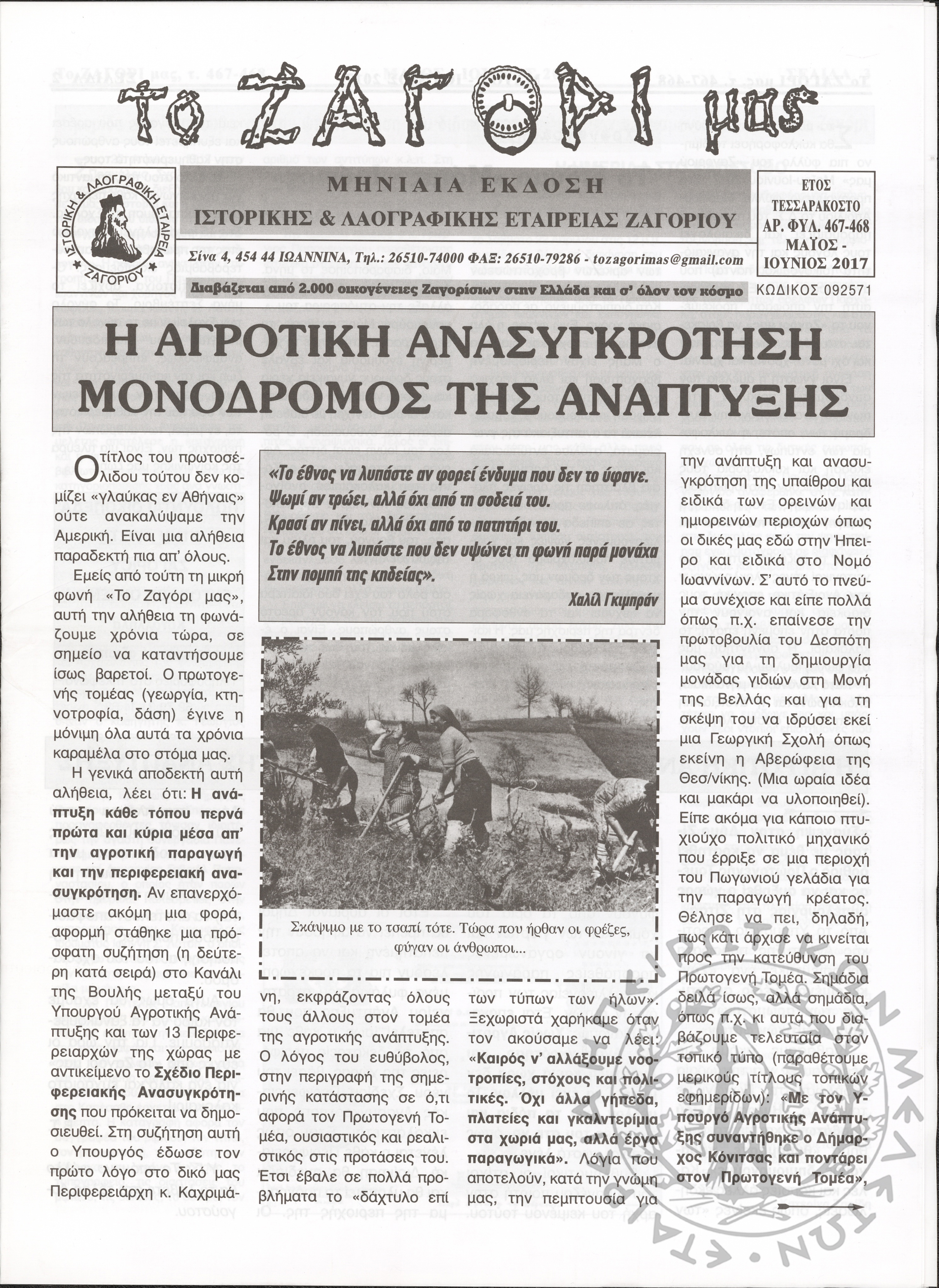 Το Ζαγόρι μας: μηνιαία έκδοση Ιστορικής και Λαογραφικής Εταιρείας Ζαγορίου (φ. 467-468)Έτος 40o, φ. 467-468...