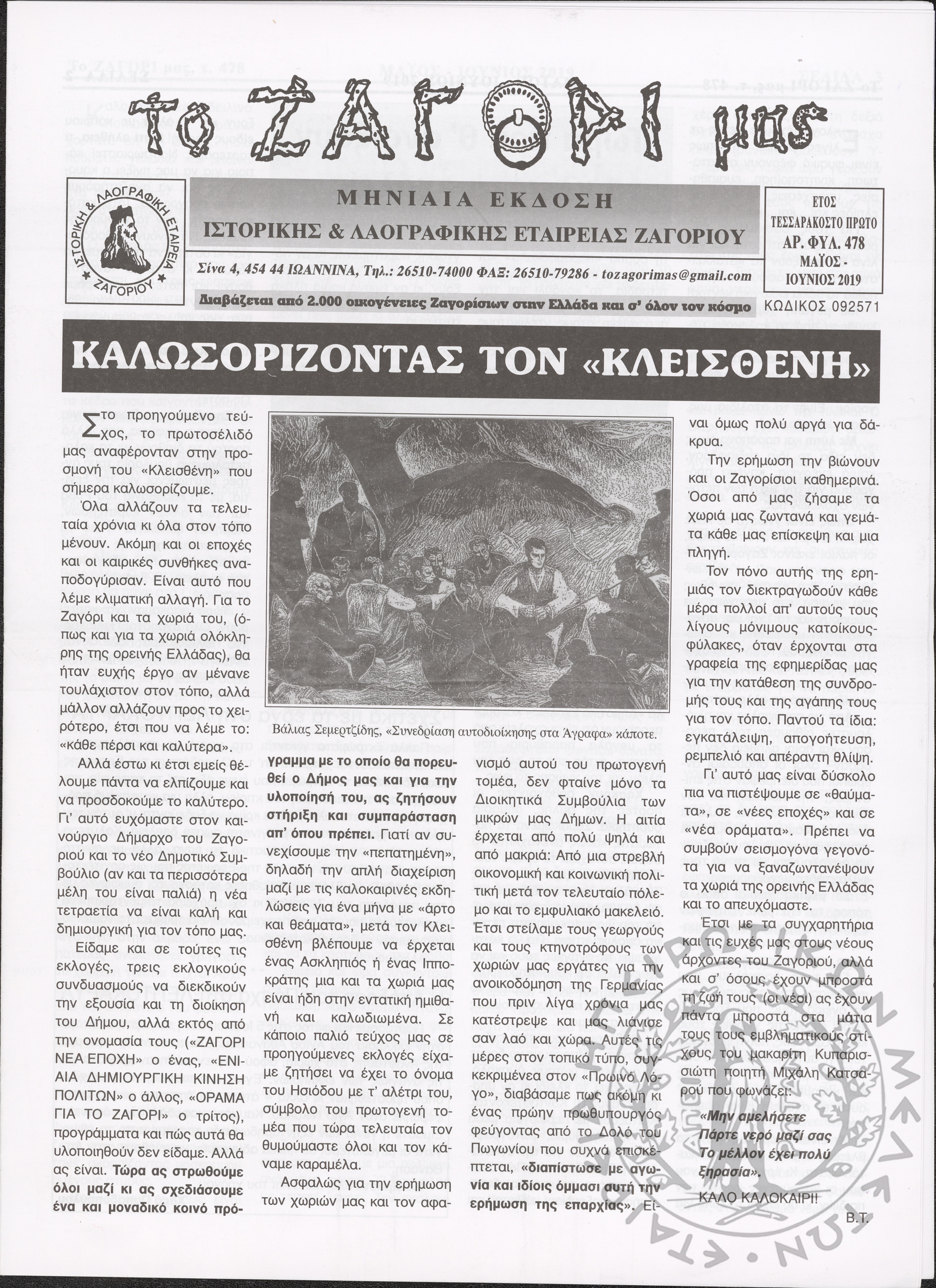 Το Ζαγόρι μας: μηνιαία έκδοση Ιστορικής και Λαογραφικής Εταιρείας Ζαγορίου (φ. 478)Έτος 41o, φ. 478...