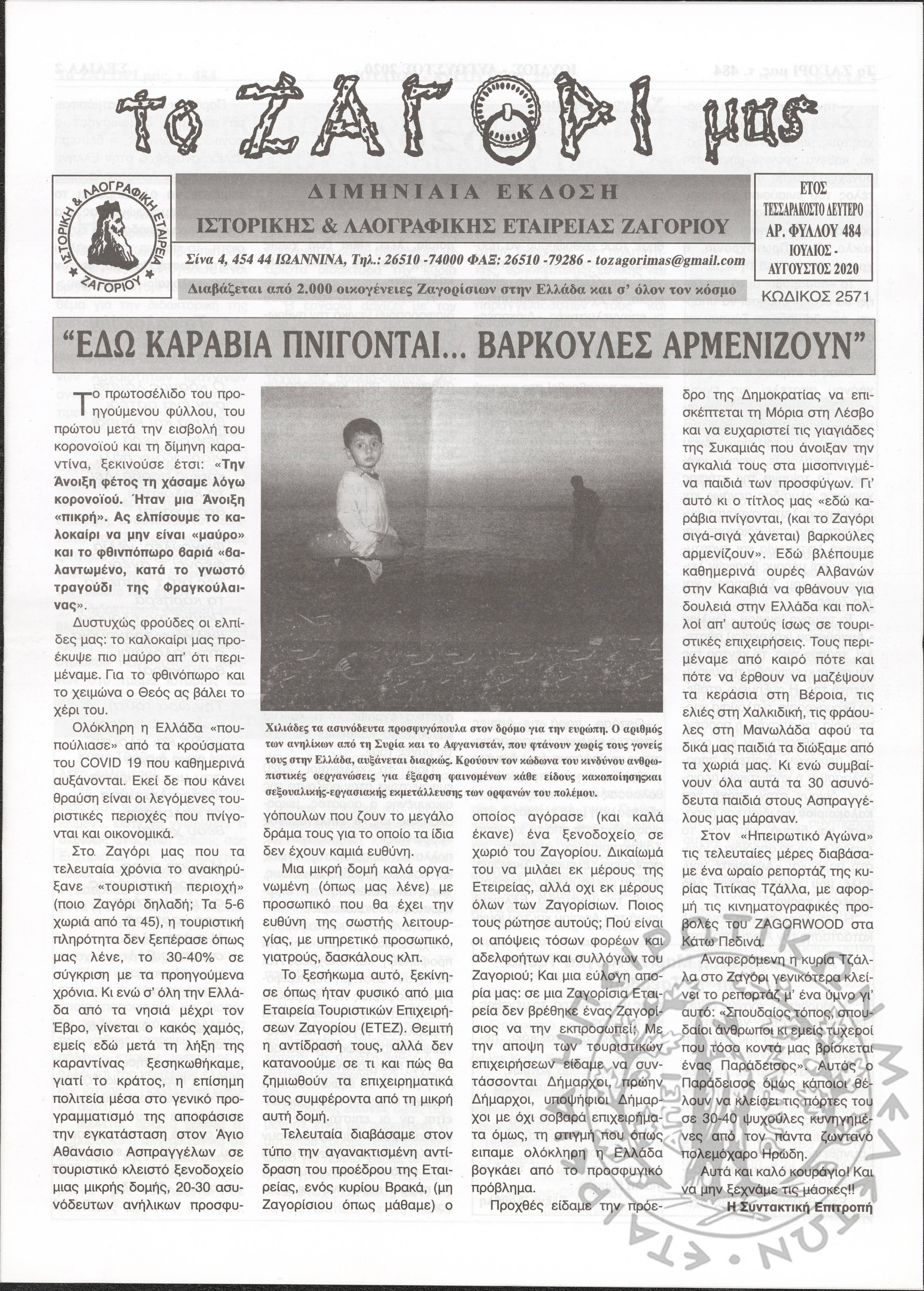 Το Ζαγόρι μας: μηνιαία έκδοση Ιστορικής και Λαογραφικής Εταιρείας Ζαγορίου (φ. 484)Έτος 42o, φ. 484...