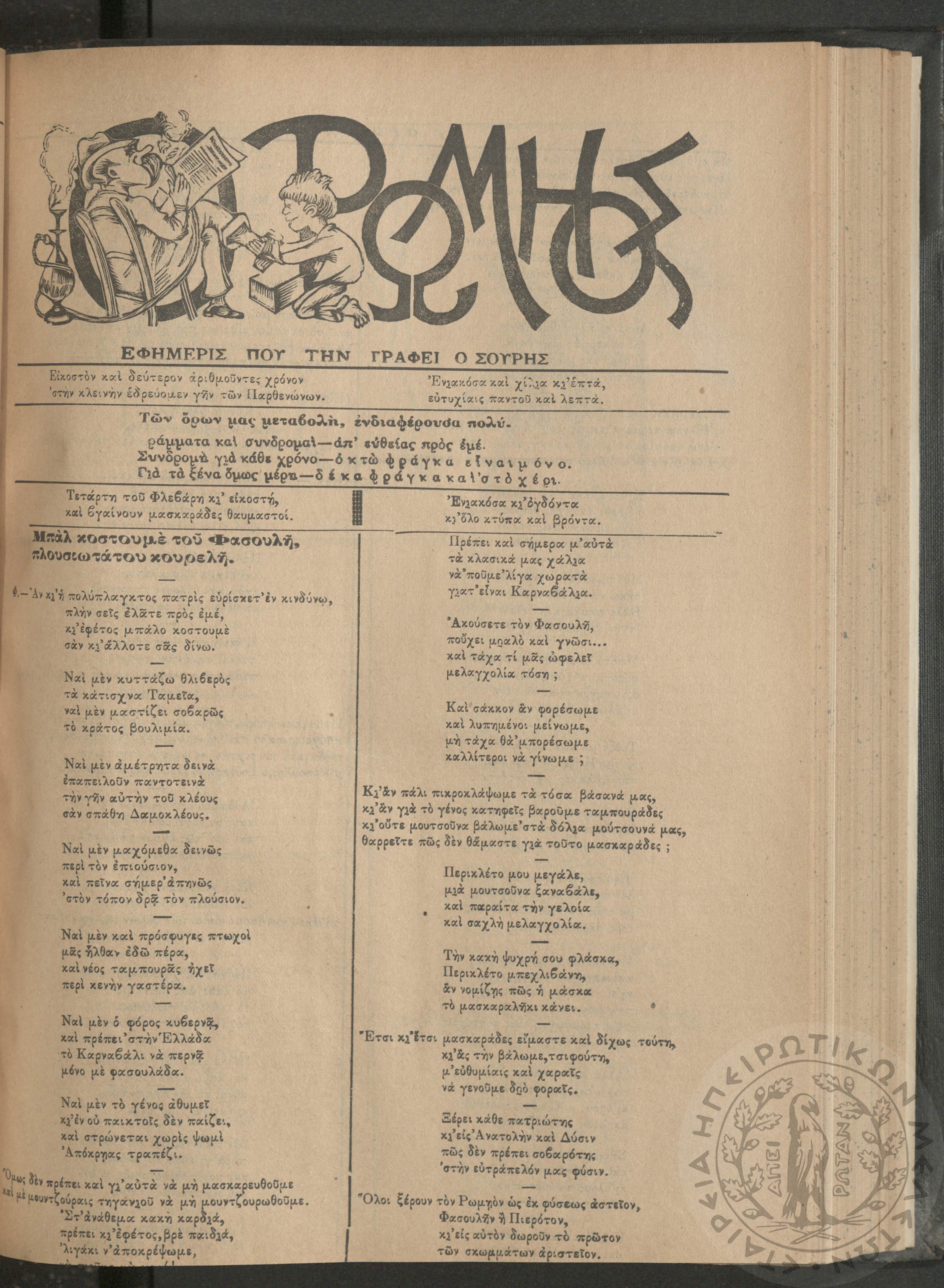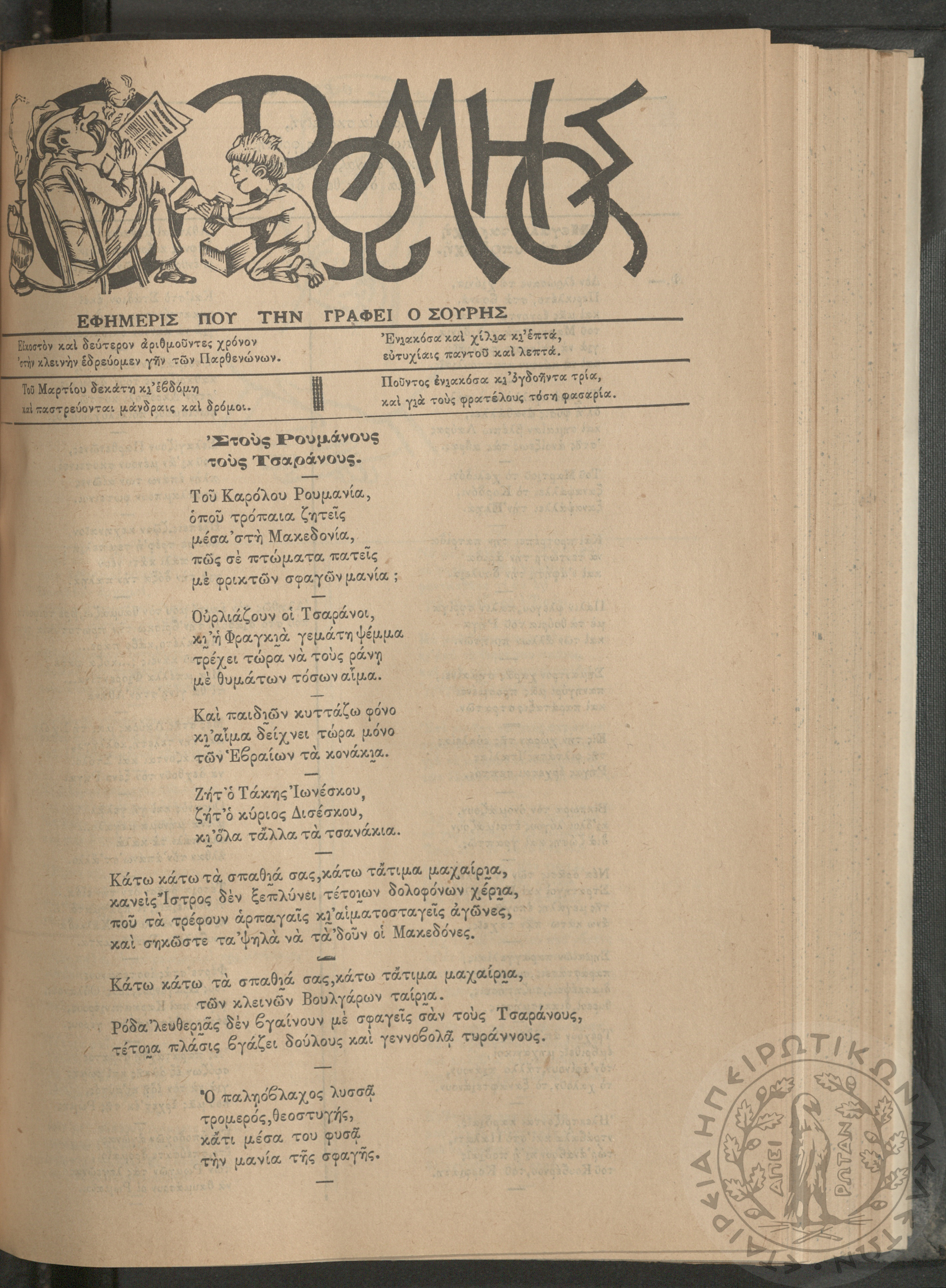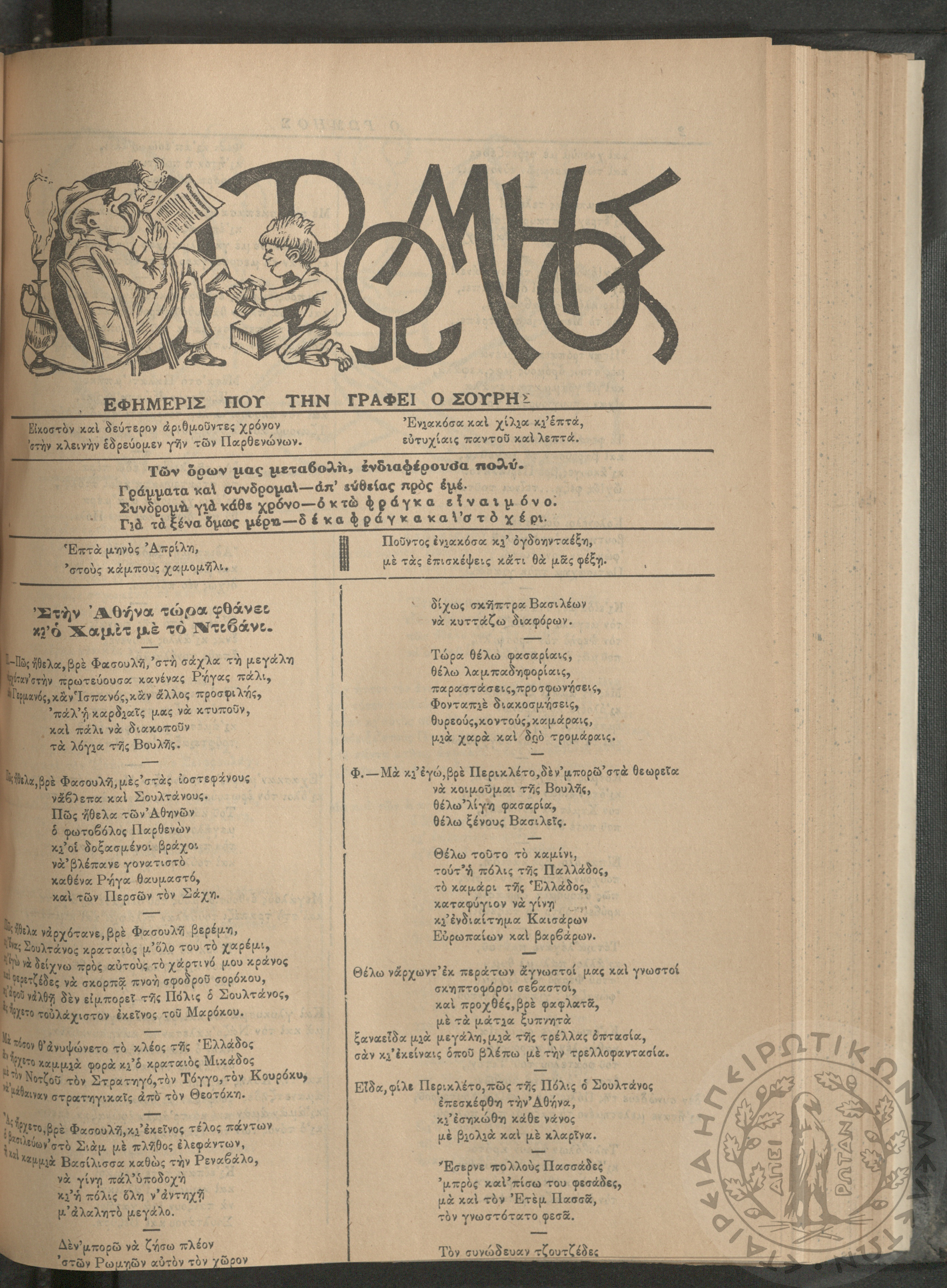 Ο Ρωμηός: Εφημερίς που την γράφει ο Σουρής, 1907, φ. 975