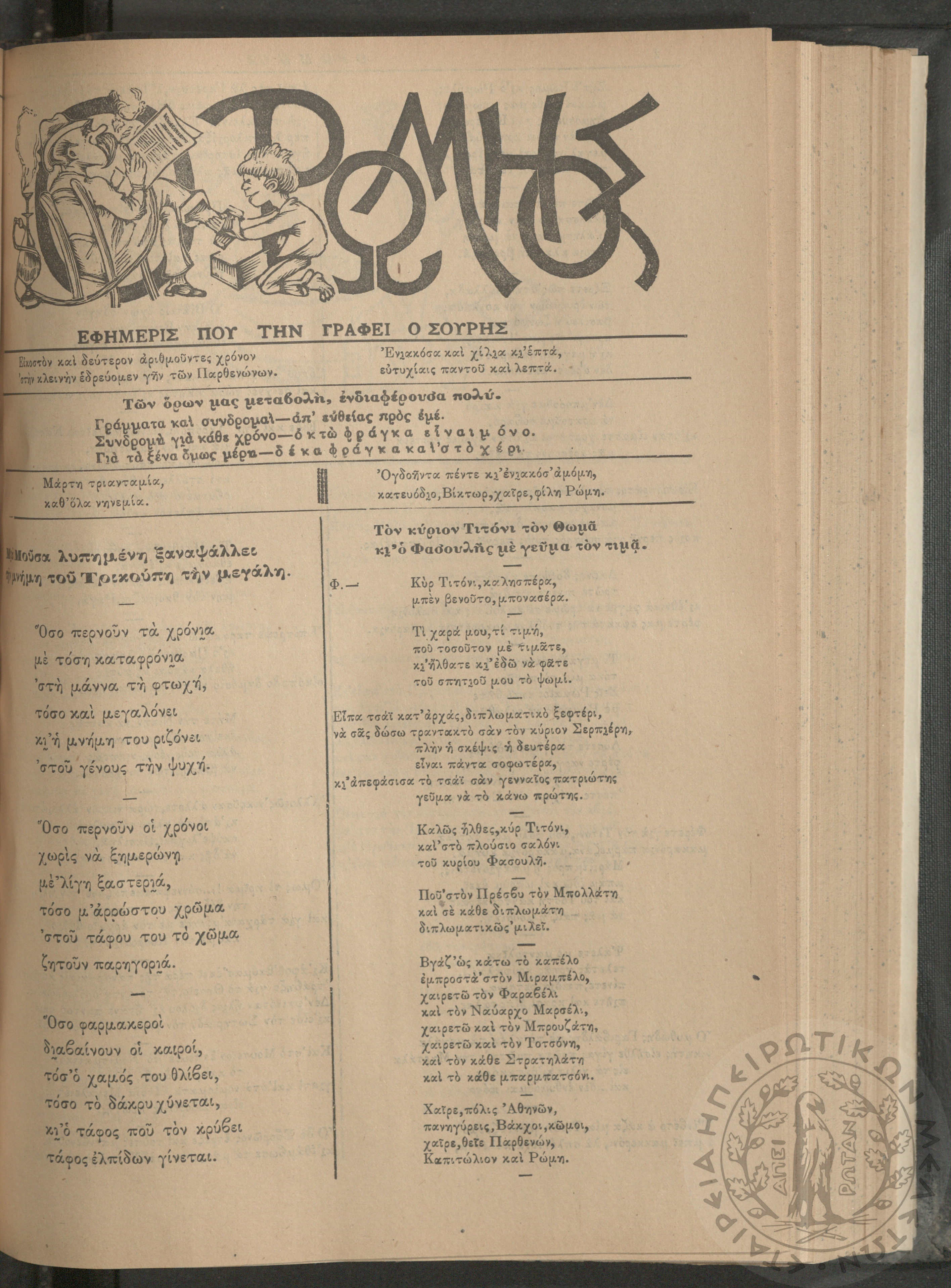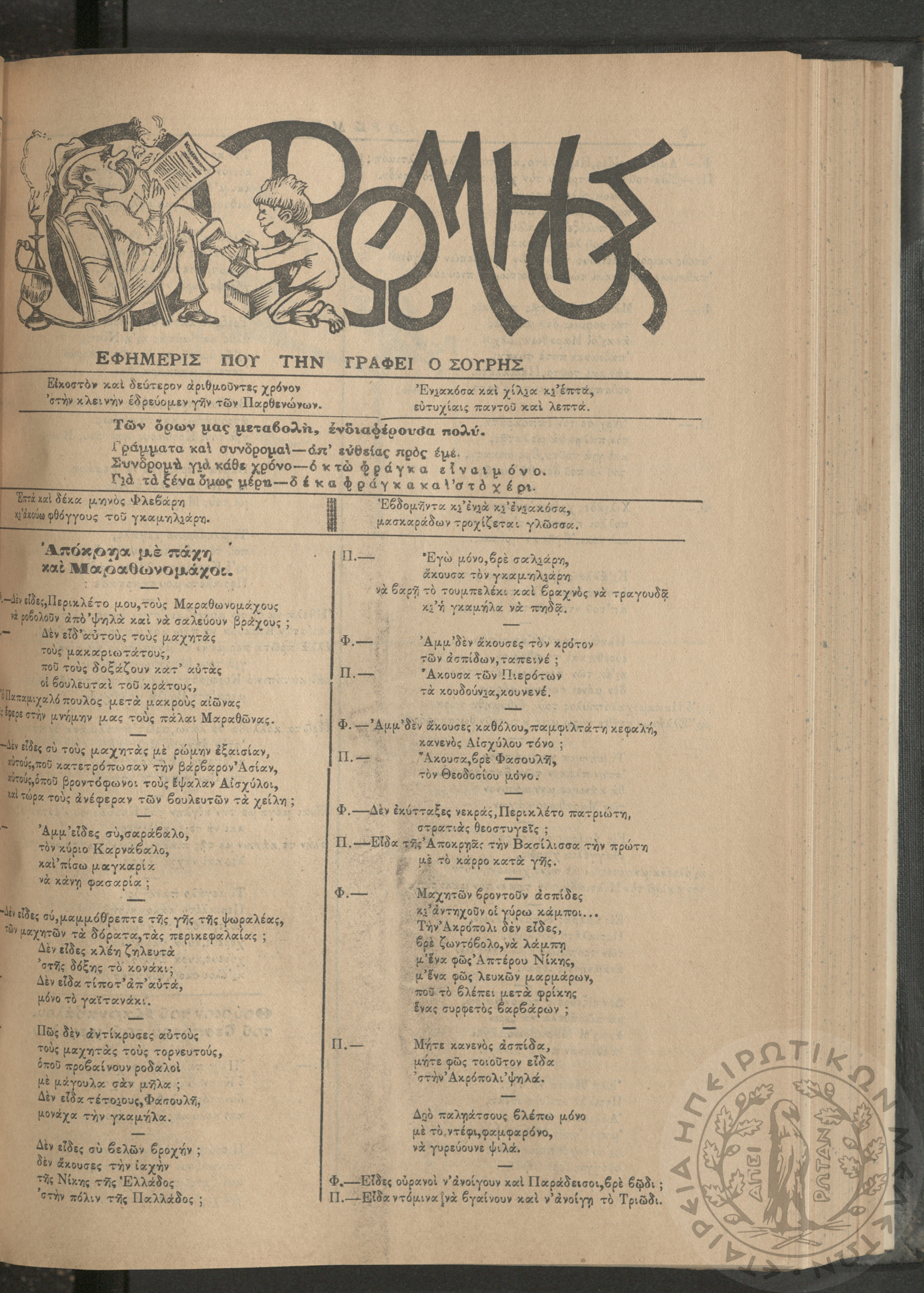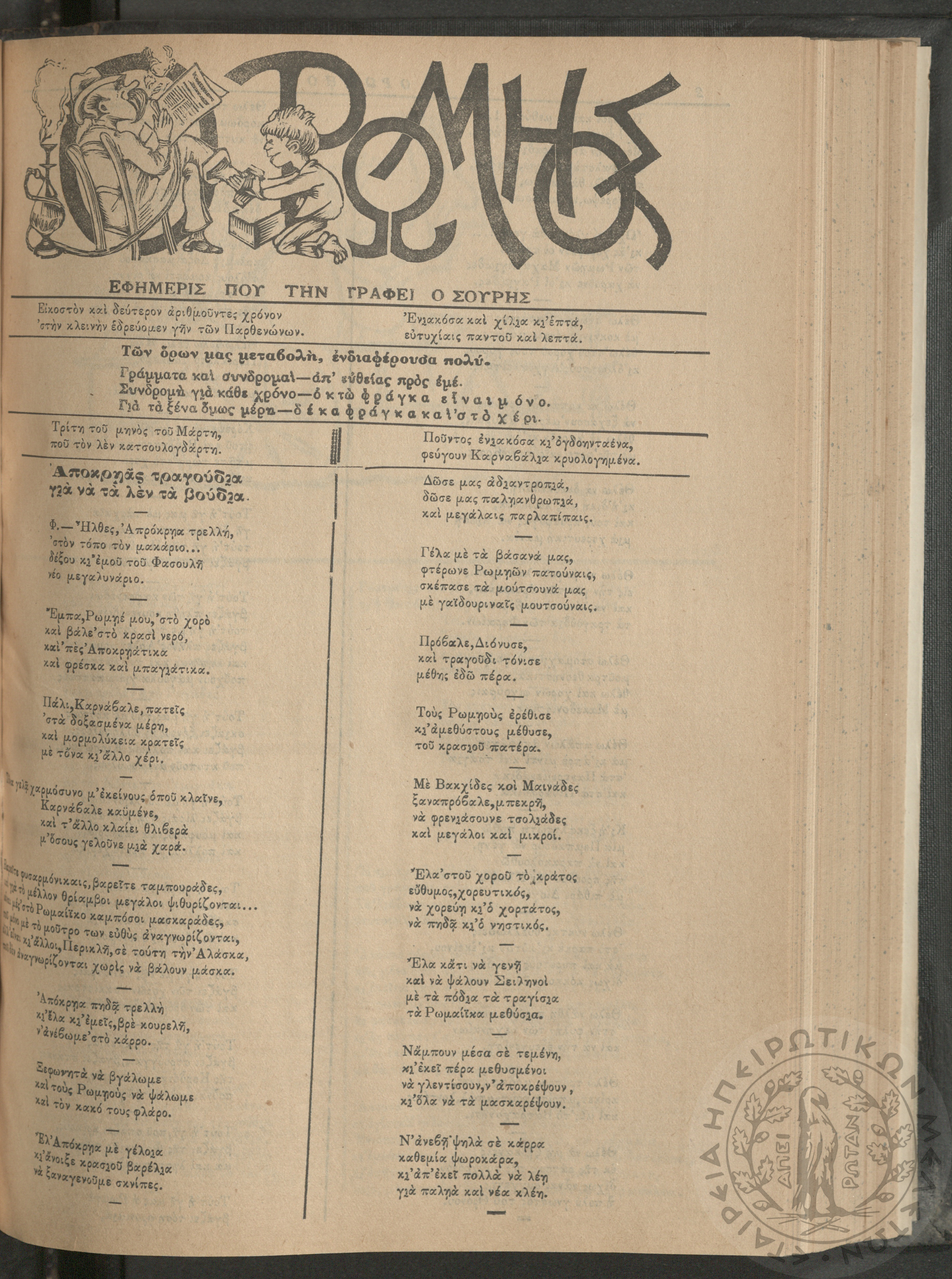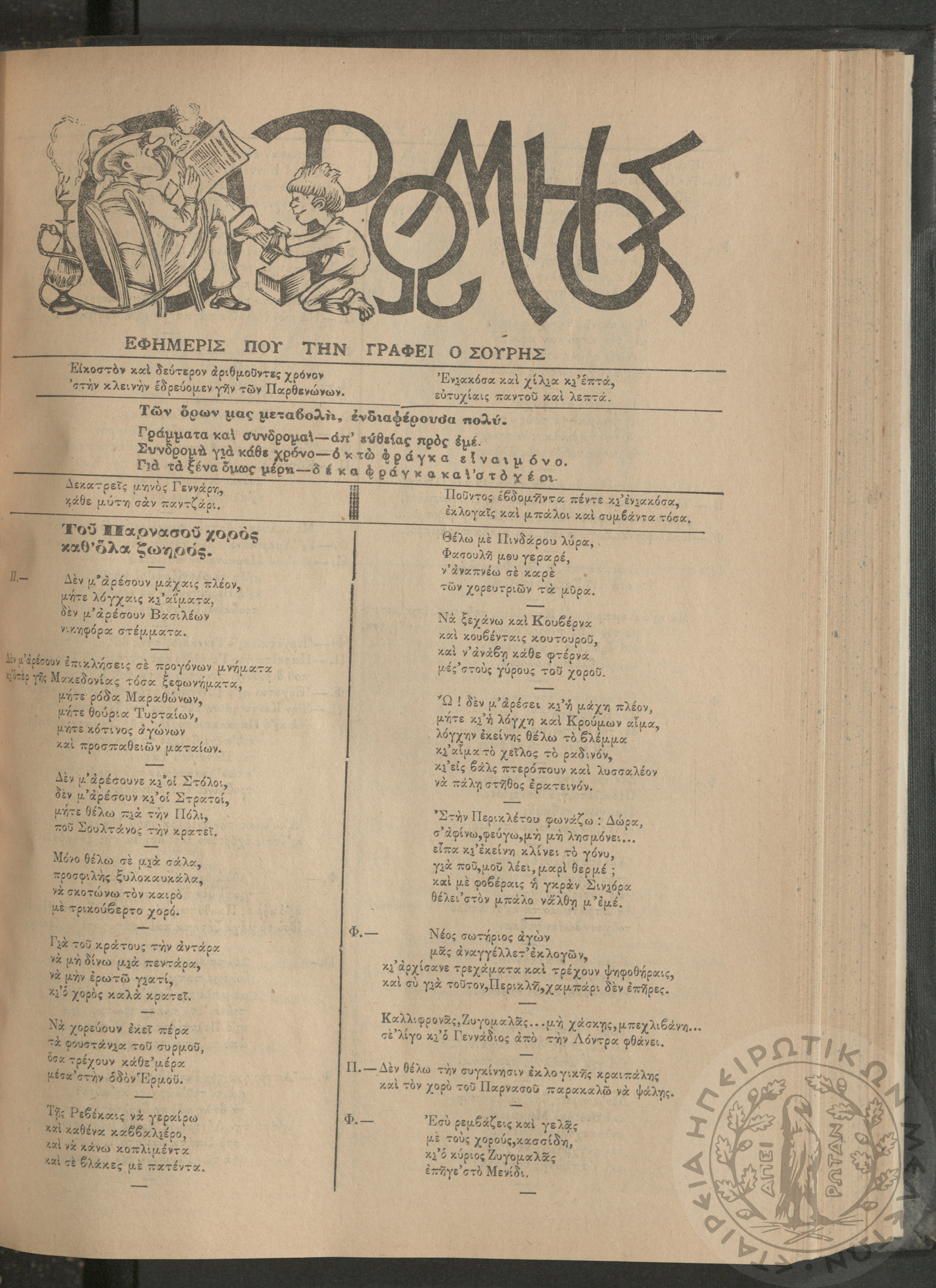 Ο Ρωμηός: Εφημερίς που την γράφει ο Σουρής, 1907, φ. 975