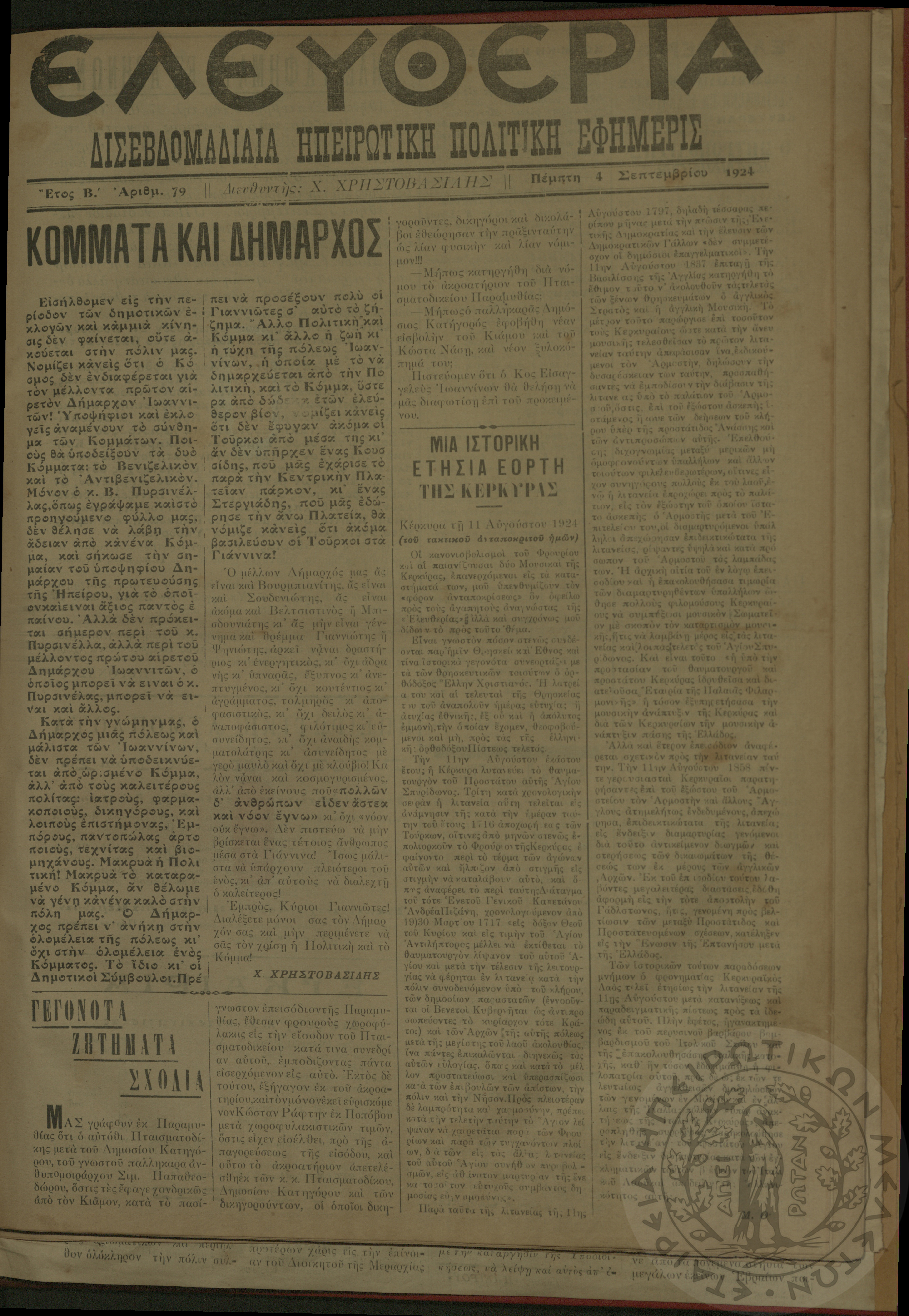 Ελευθερία: δισεβδομαδιαία Ηπειρωτική πολιτική εφημερίς, 1924, φ. 79