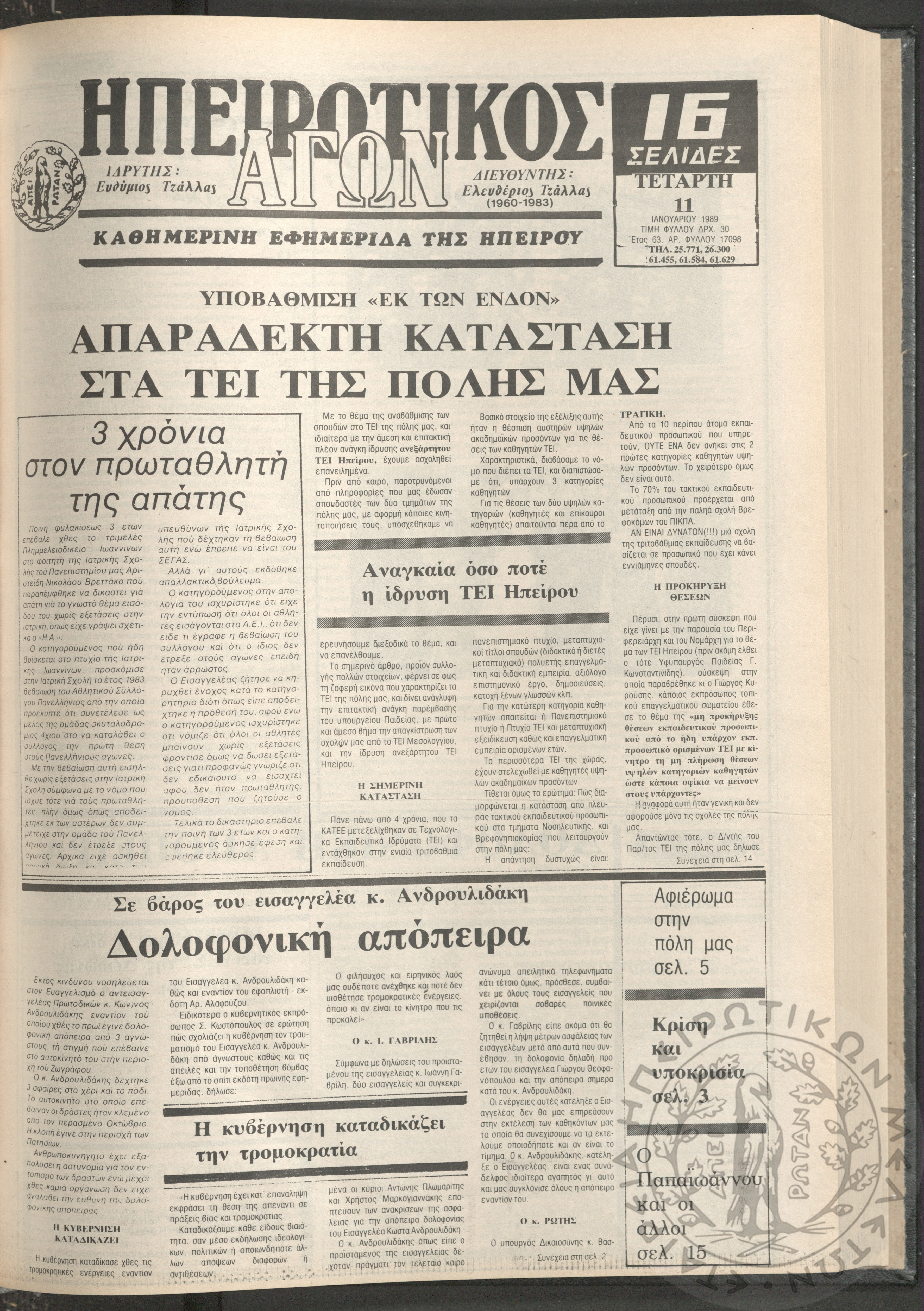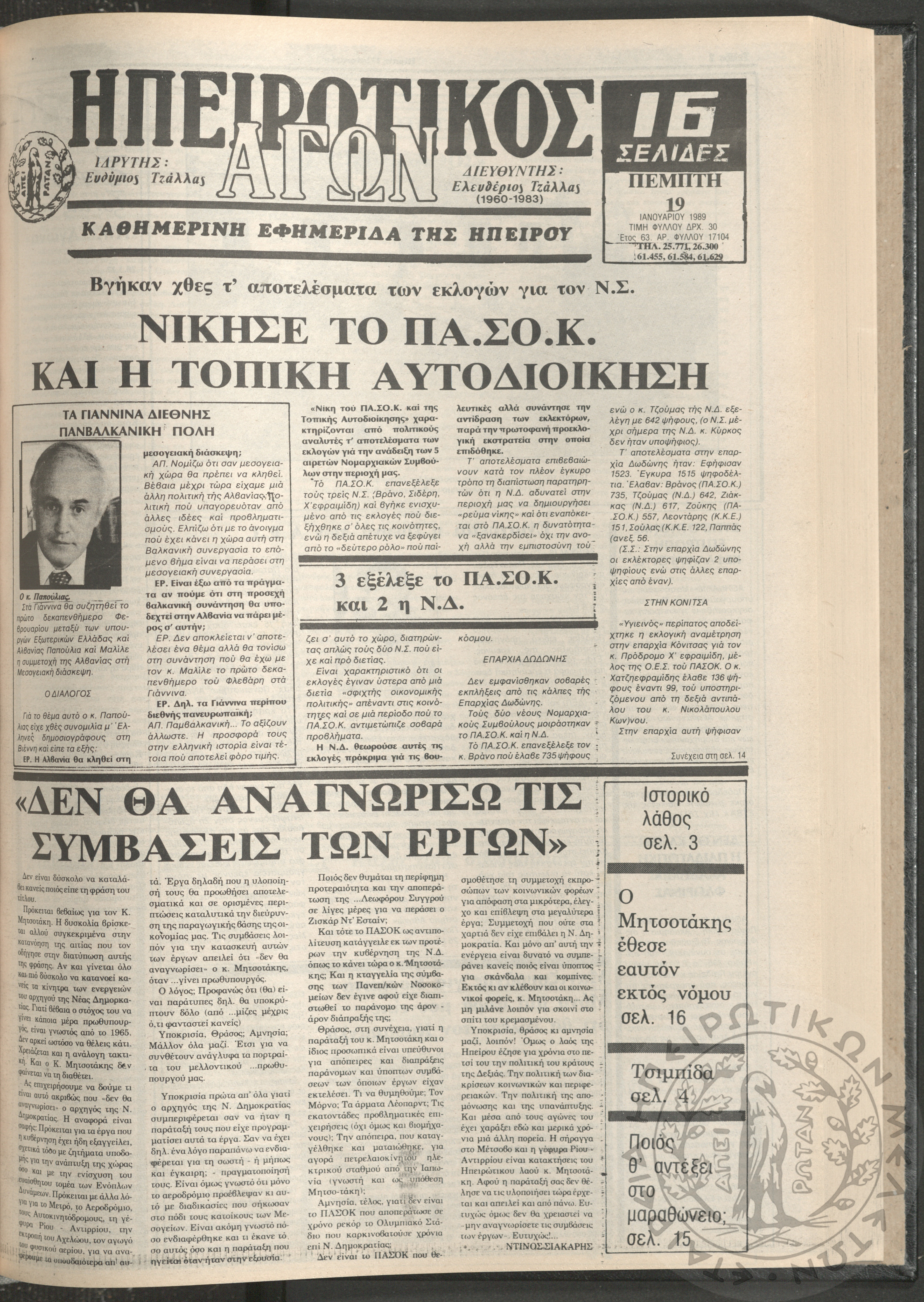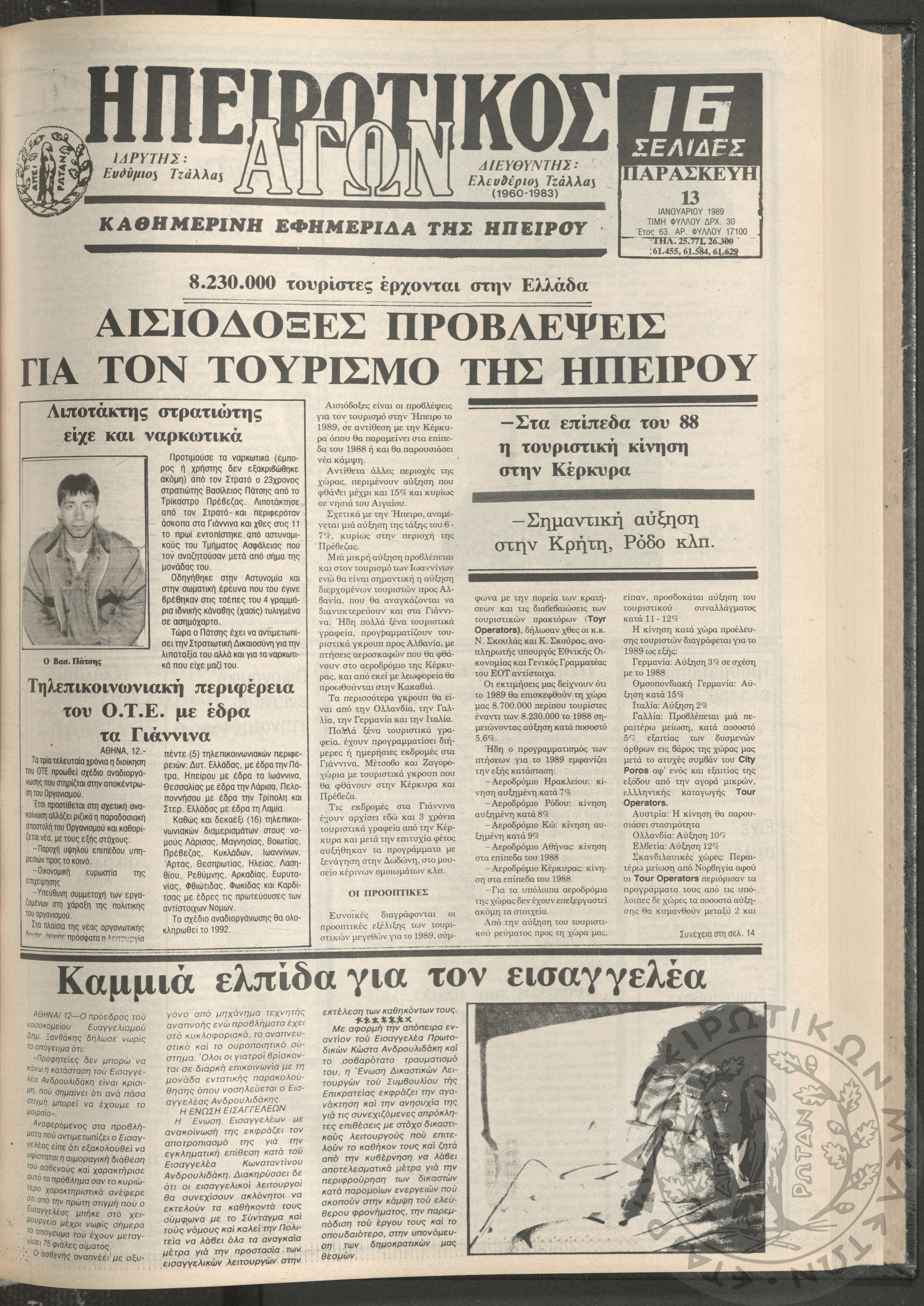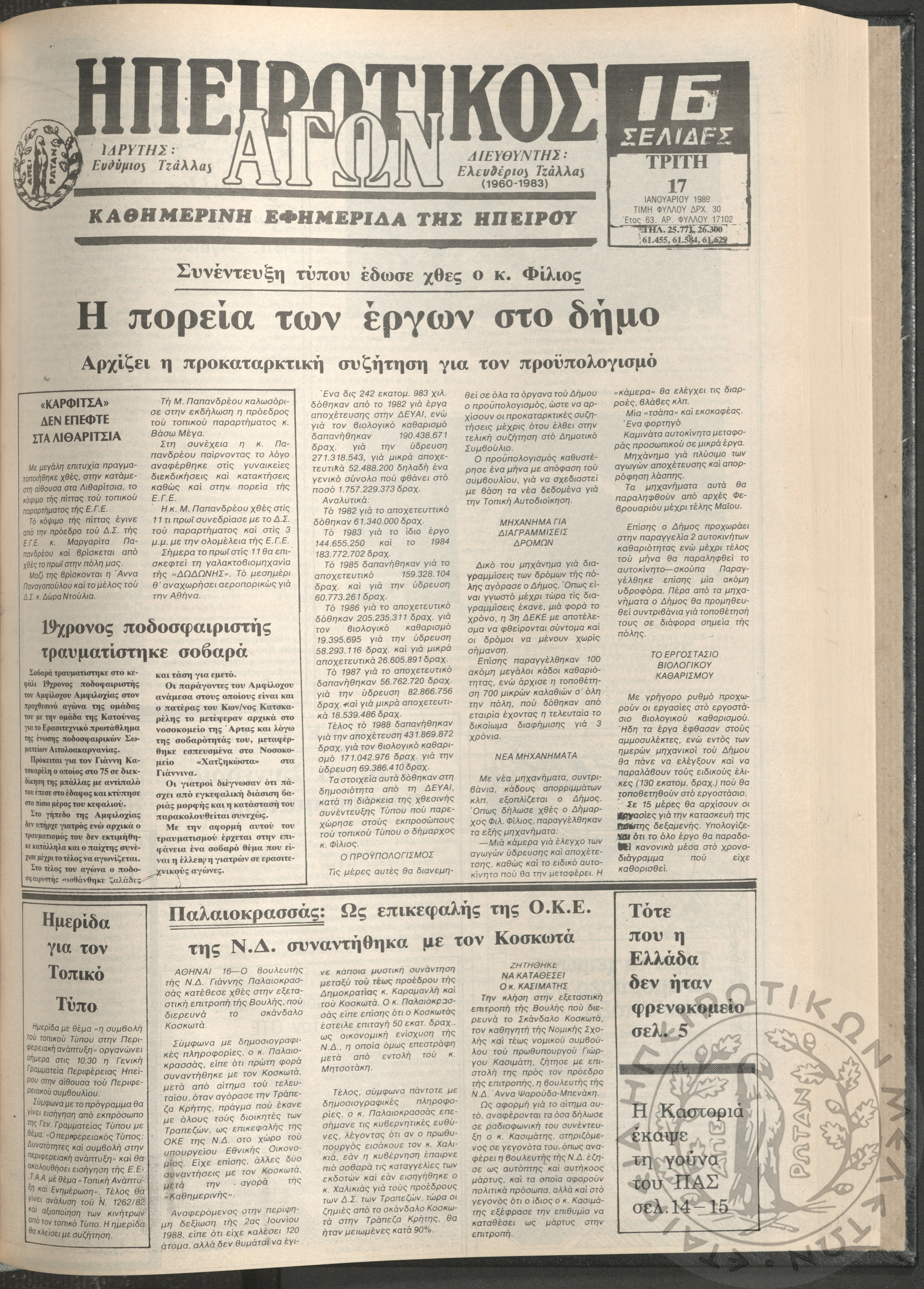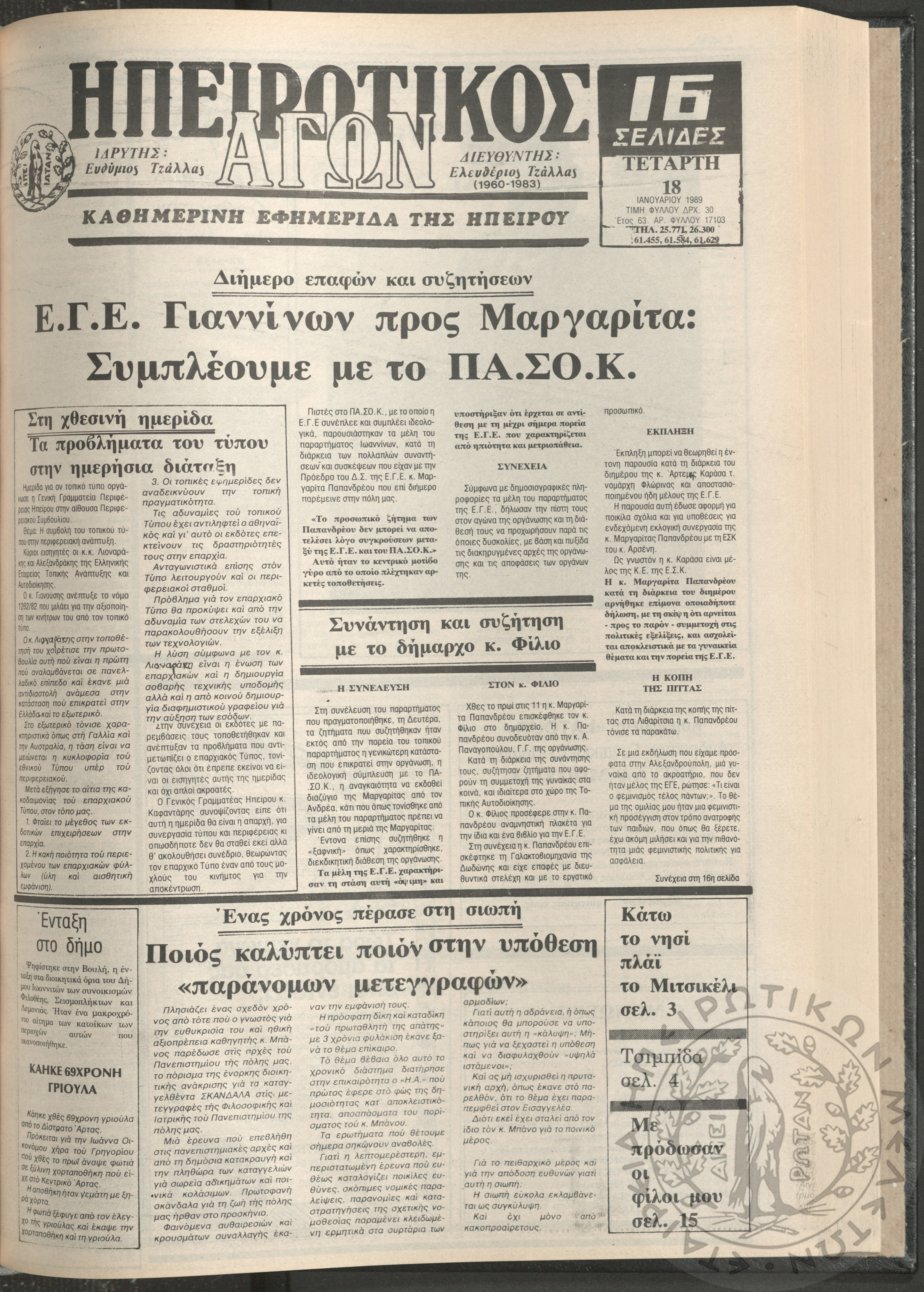 Ηπειρωτικός Αγών: καθημερινή εφημερίδα της Ηπείρου, 1989, φ. 17100