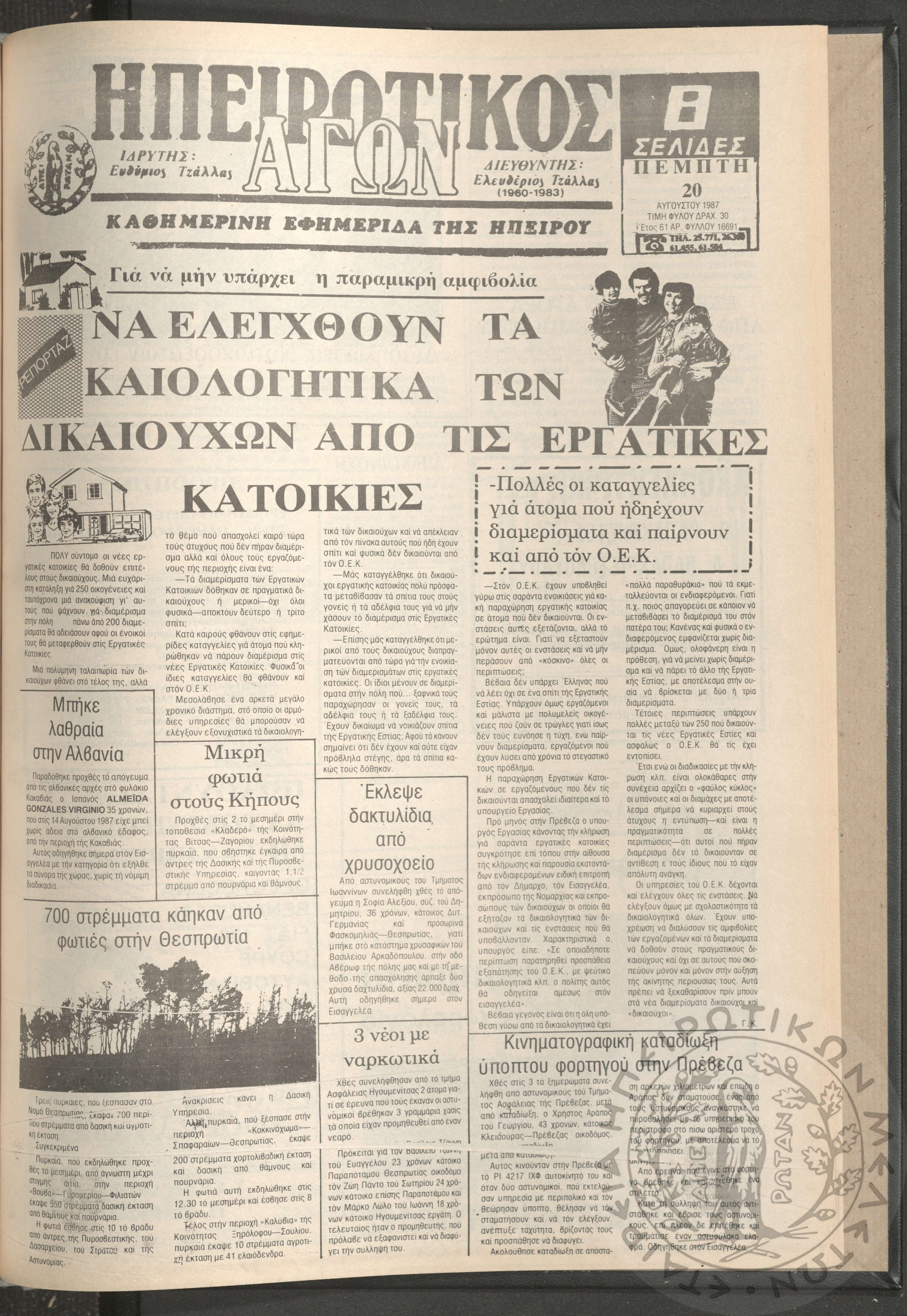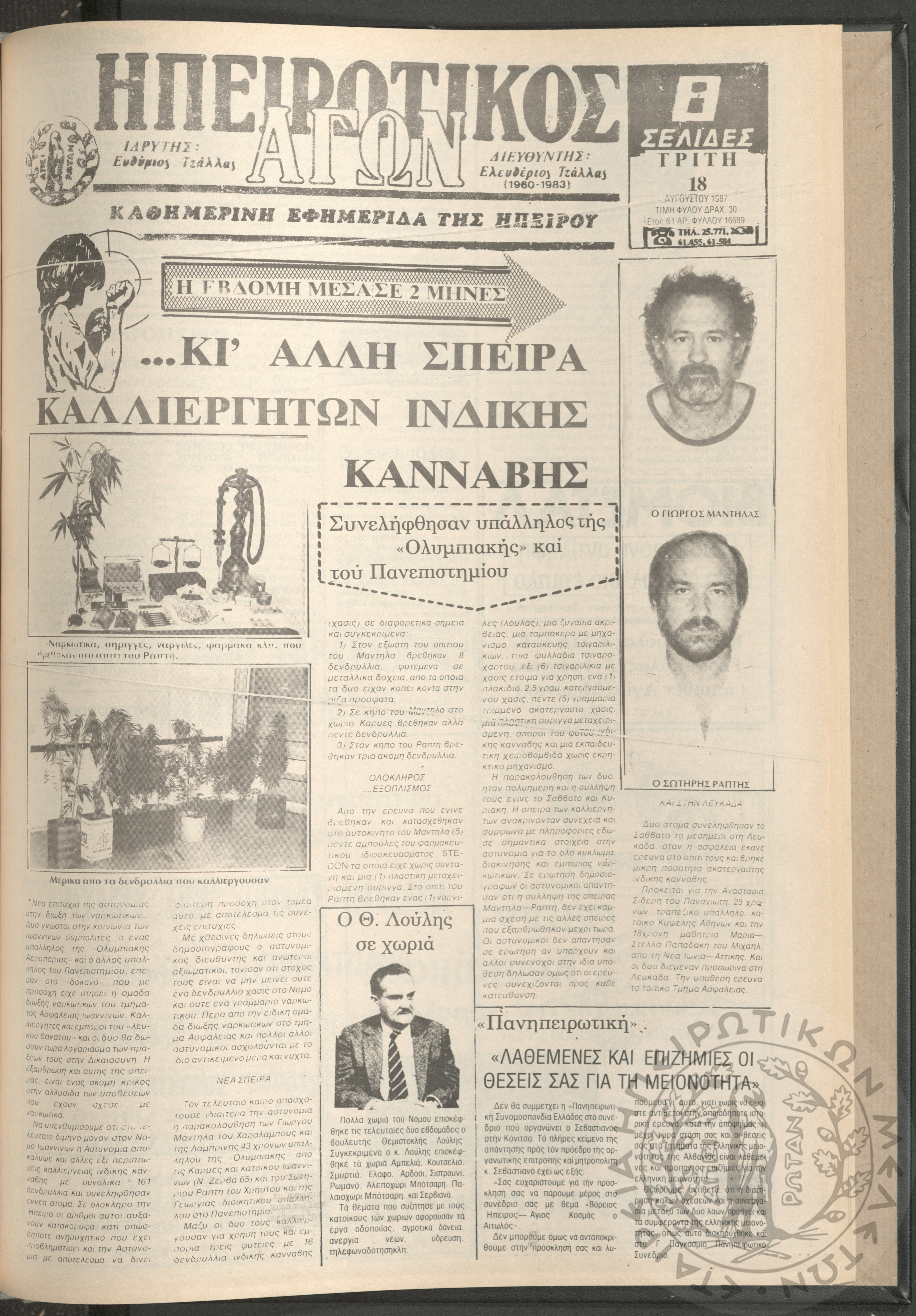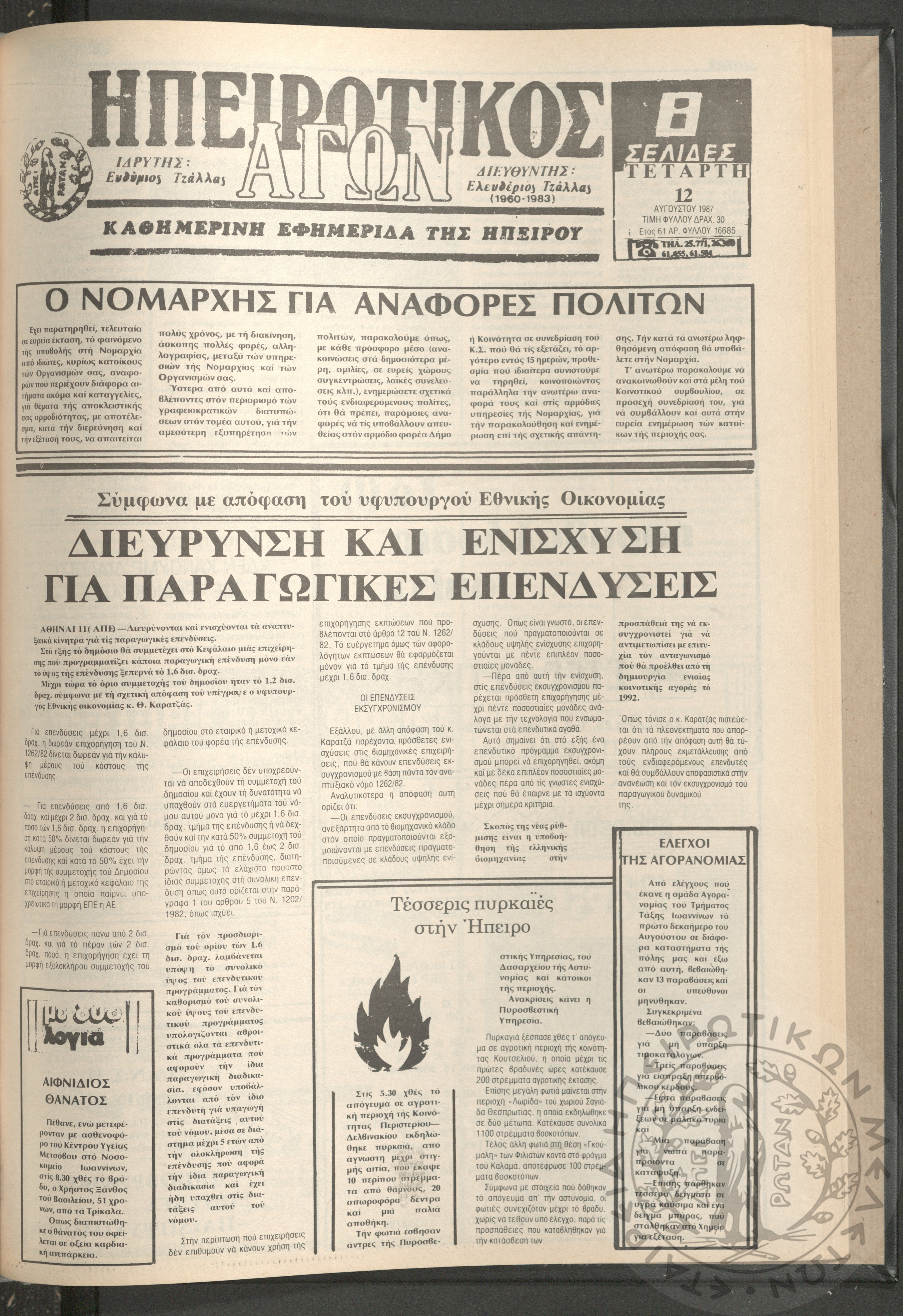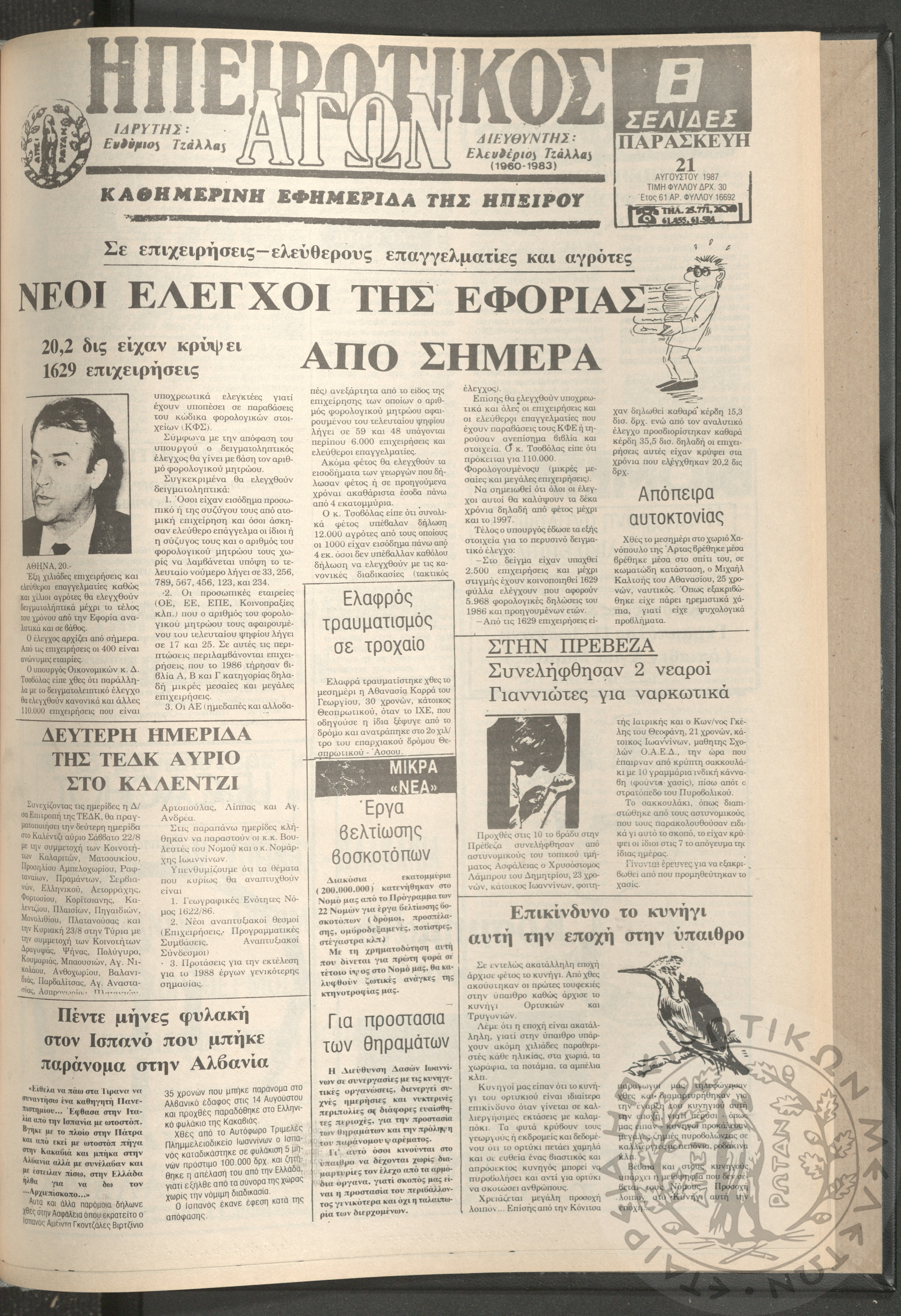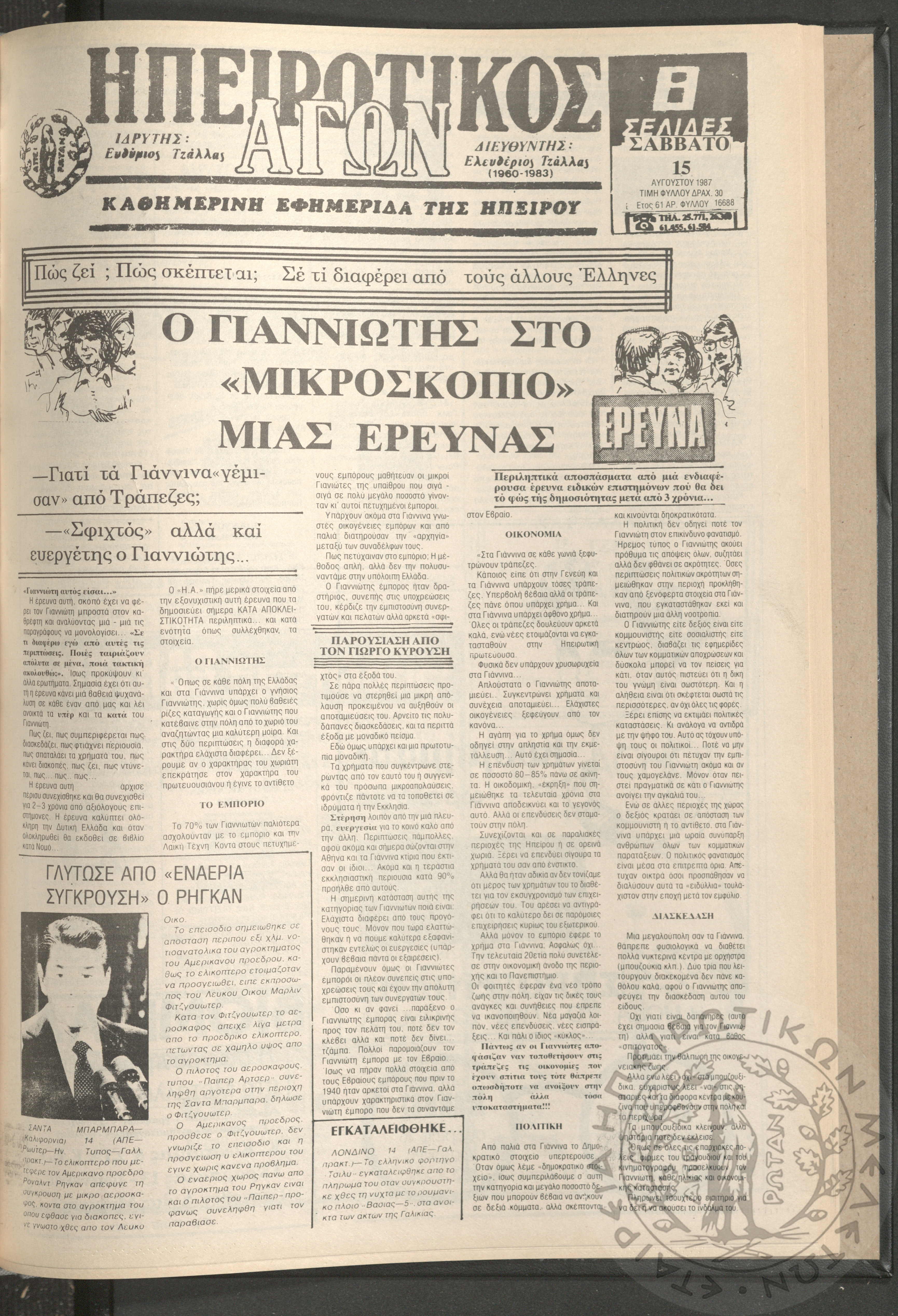 Ηπειρωτικός Αγών: καθημερινή εφημερίδα της Ηπείρου, 1987, φ. 16689