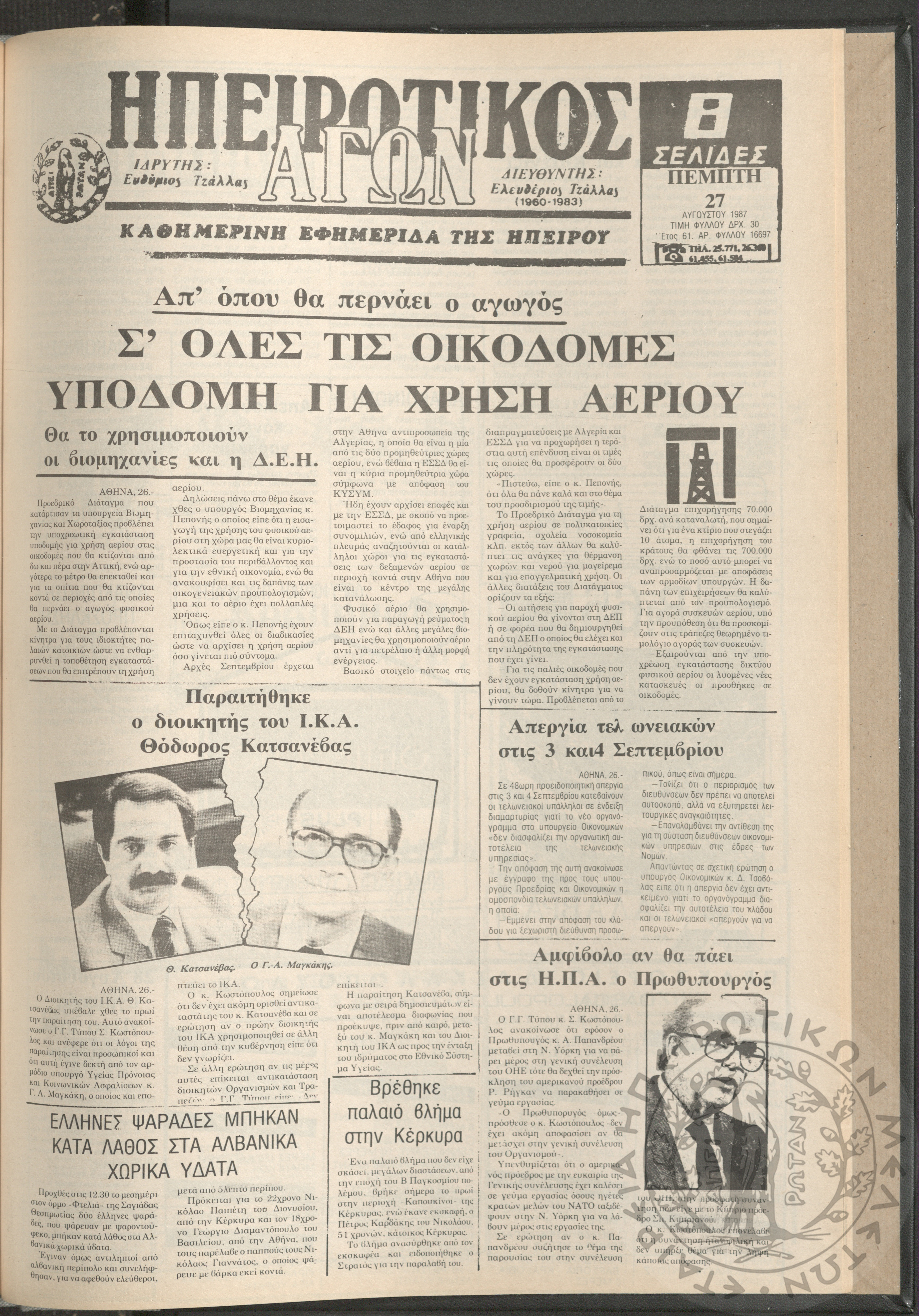 Ηπειρωτικός Αγών: καθημερινή εφημερίδα της Ηπείρου, 1987, φ. 16697