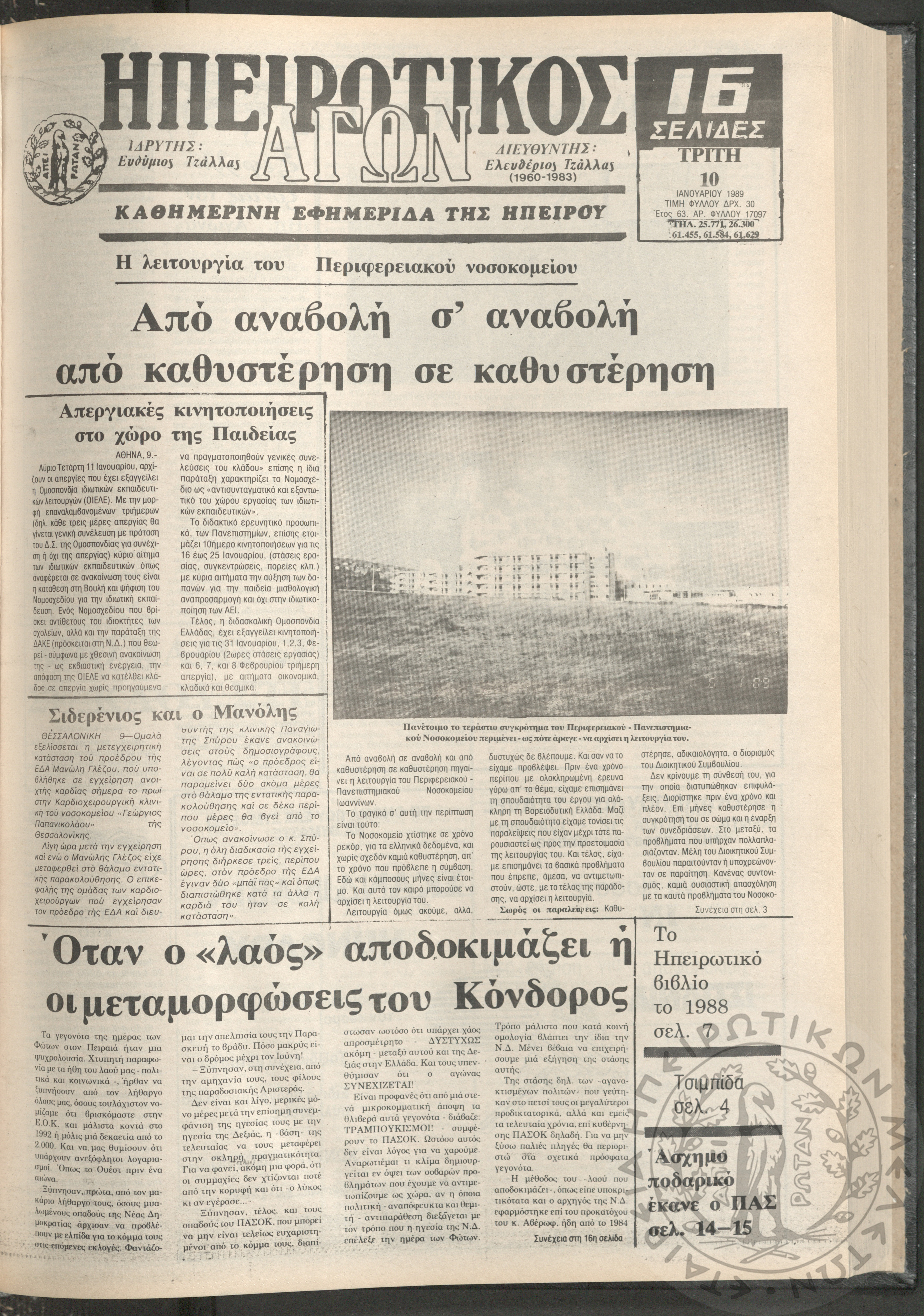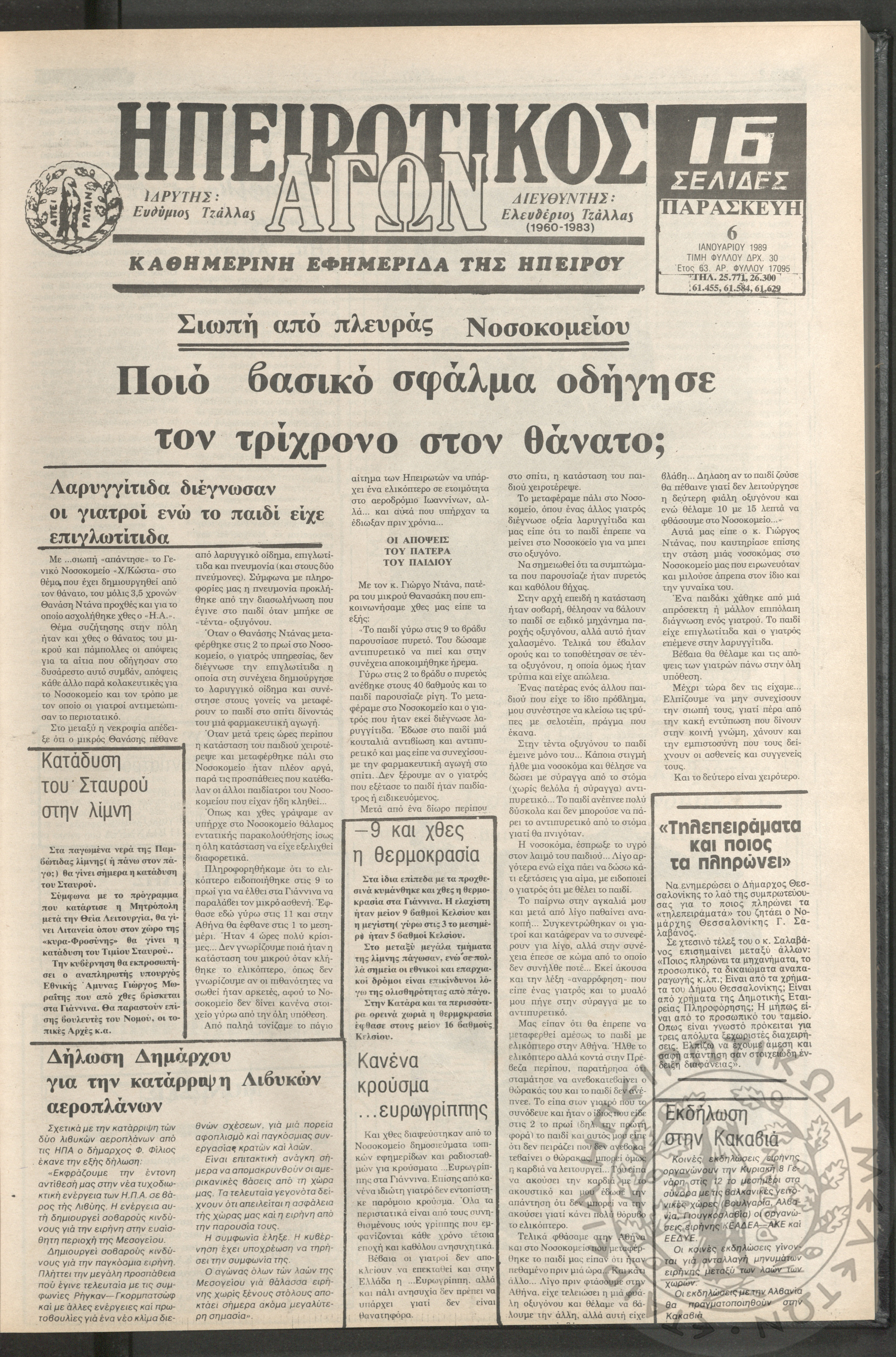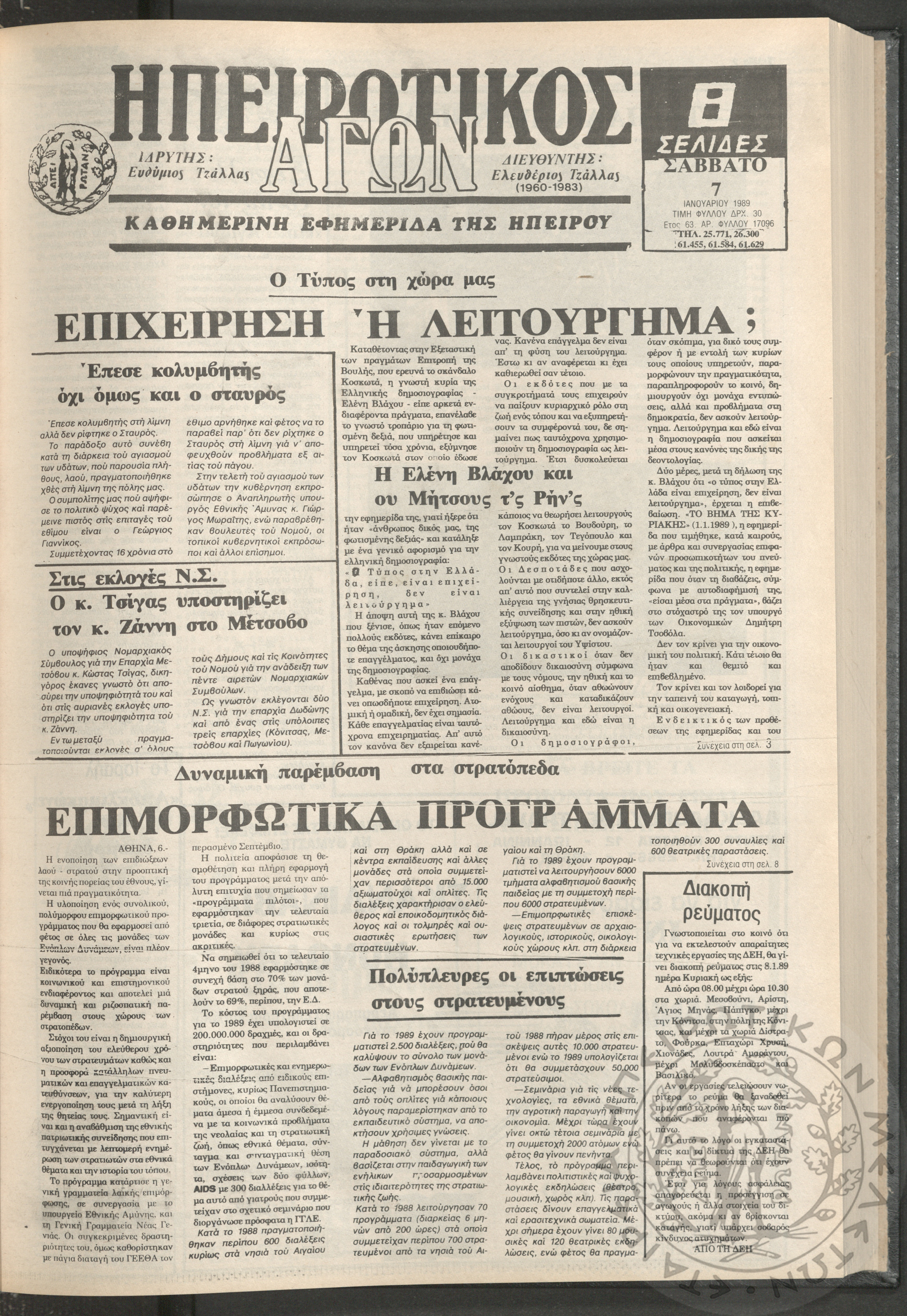 Ηπειρωτικός Αγών: καθημερινή εφημερίδα της Ηπείρου, 1989, φ. 17105
