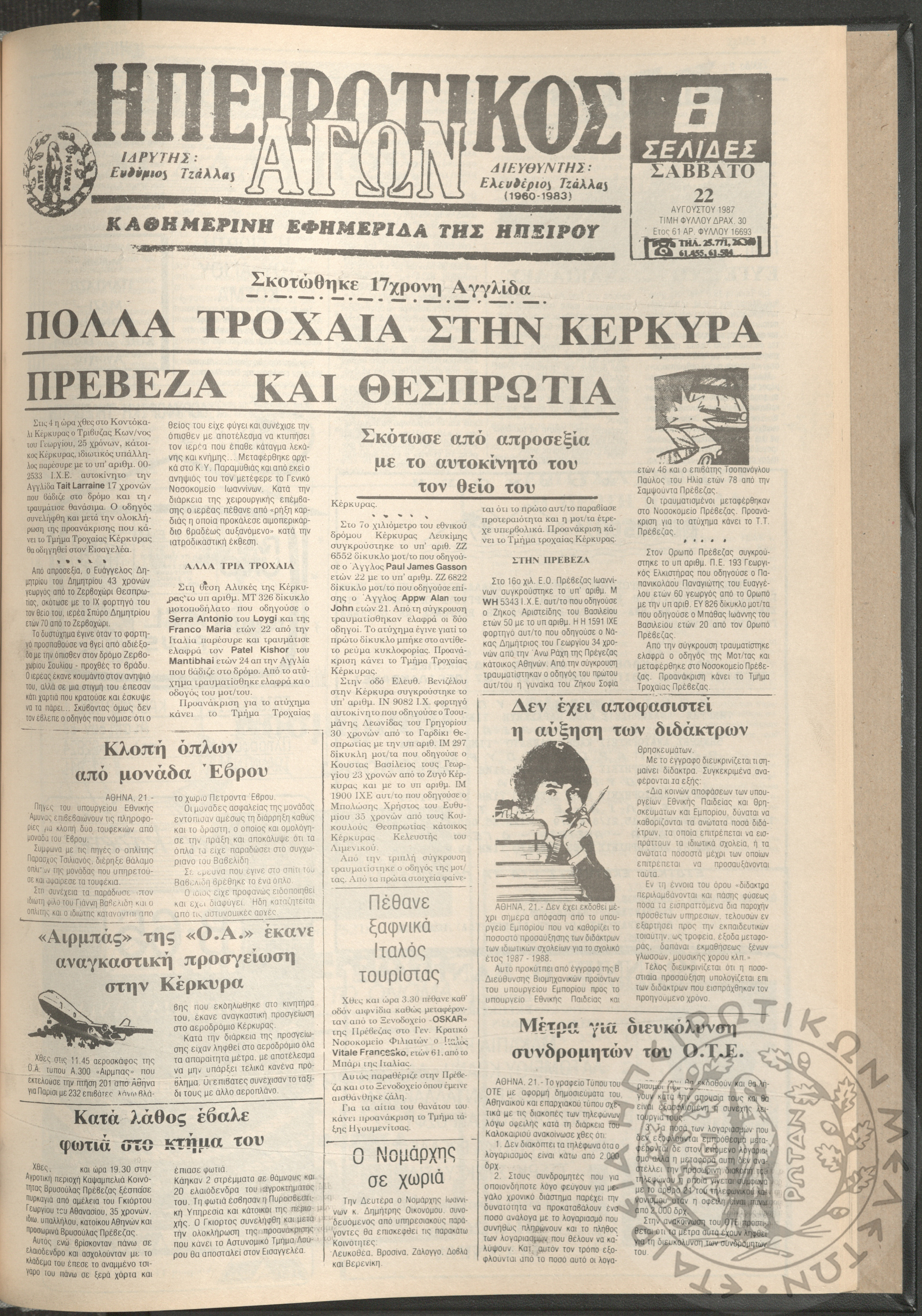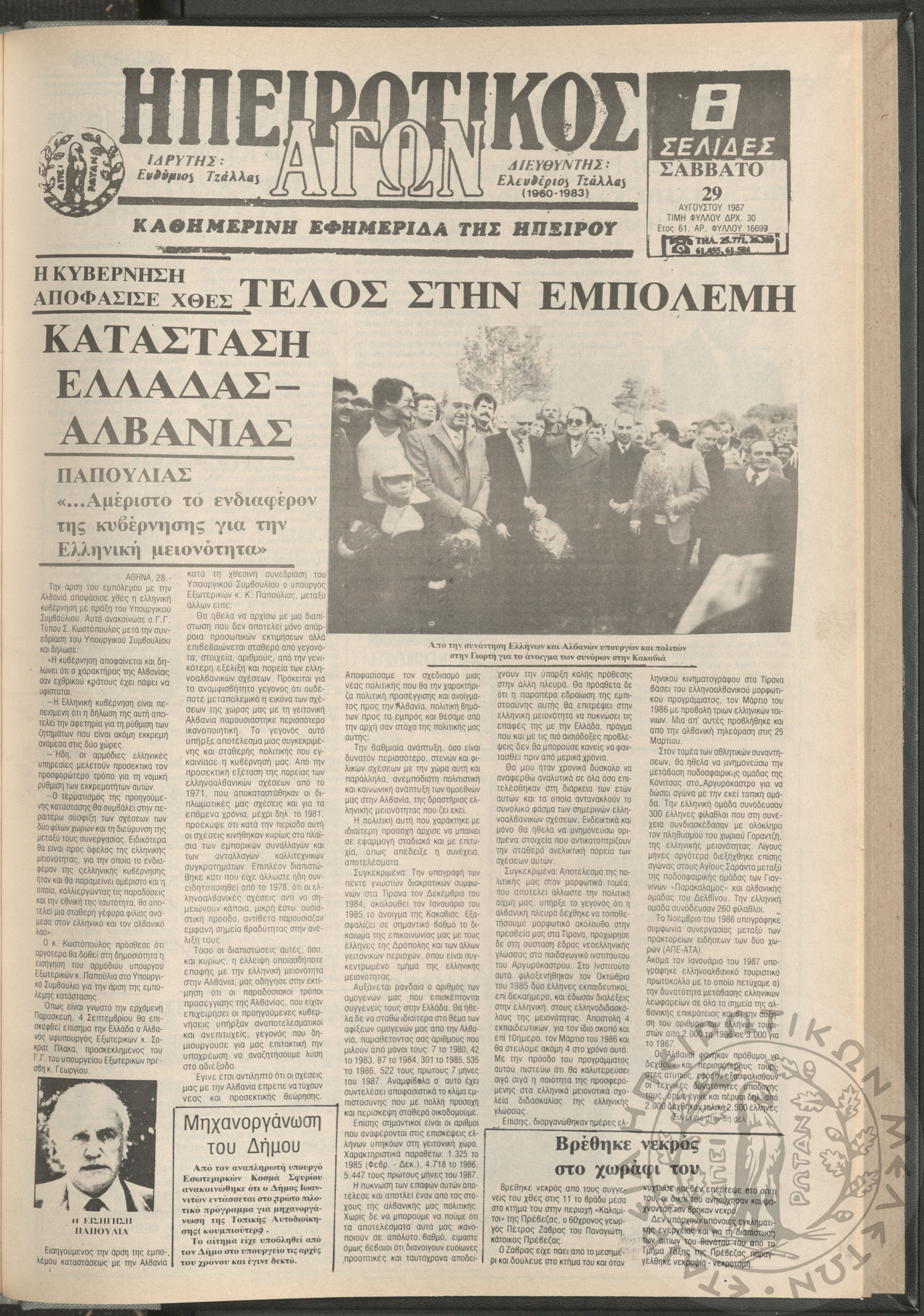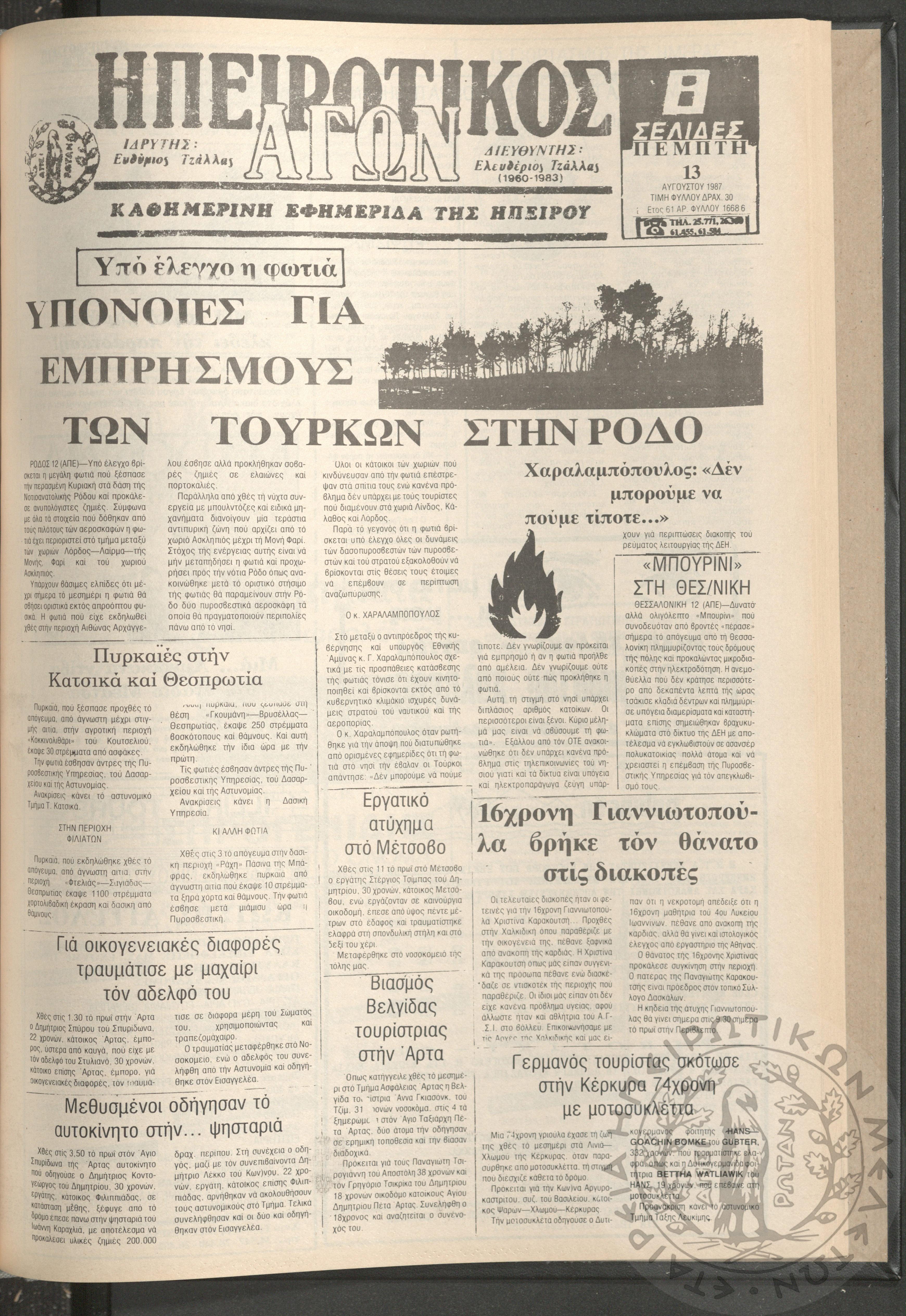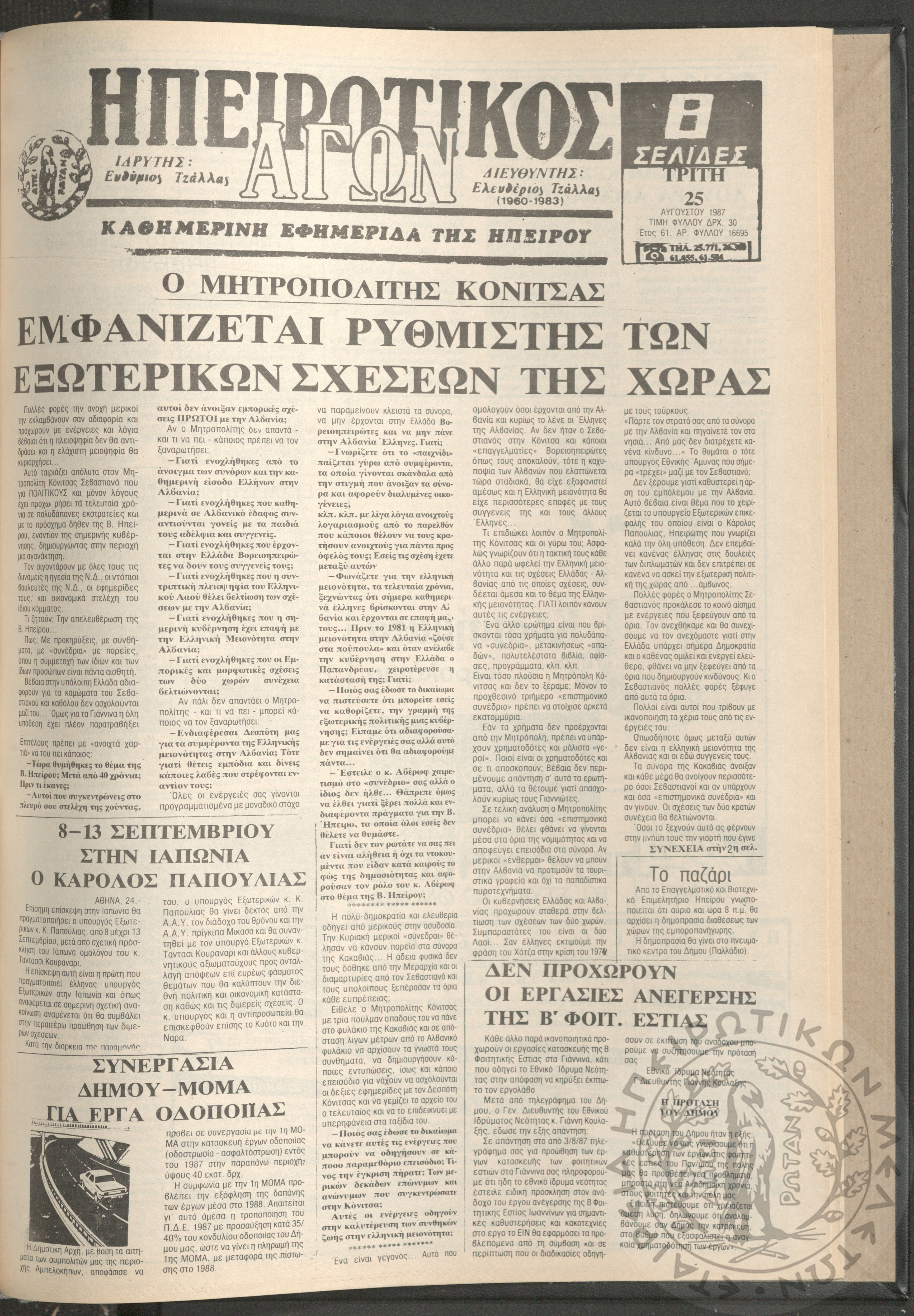 Ηπειρωτικός Αγών: καθημερινή εφημερίδα της Ηπείρου, 1987, φ. 16696