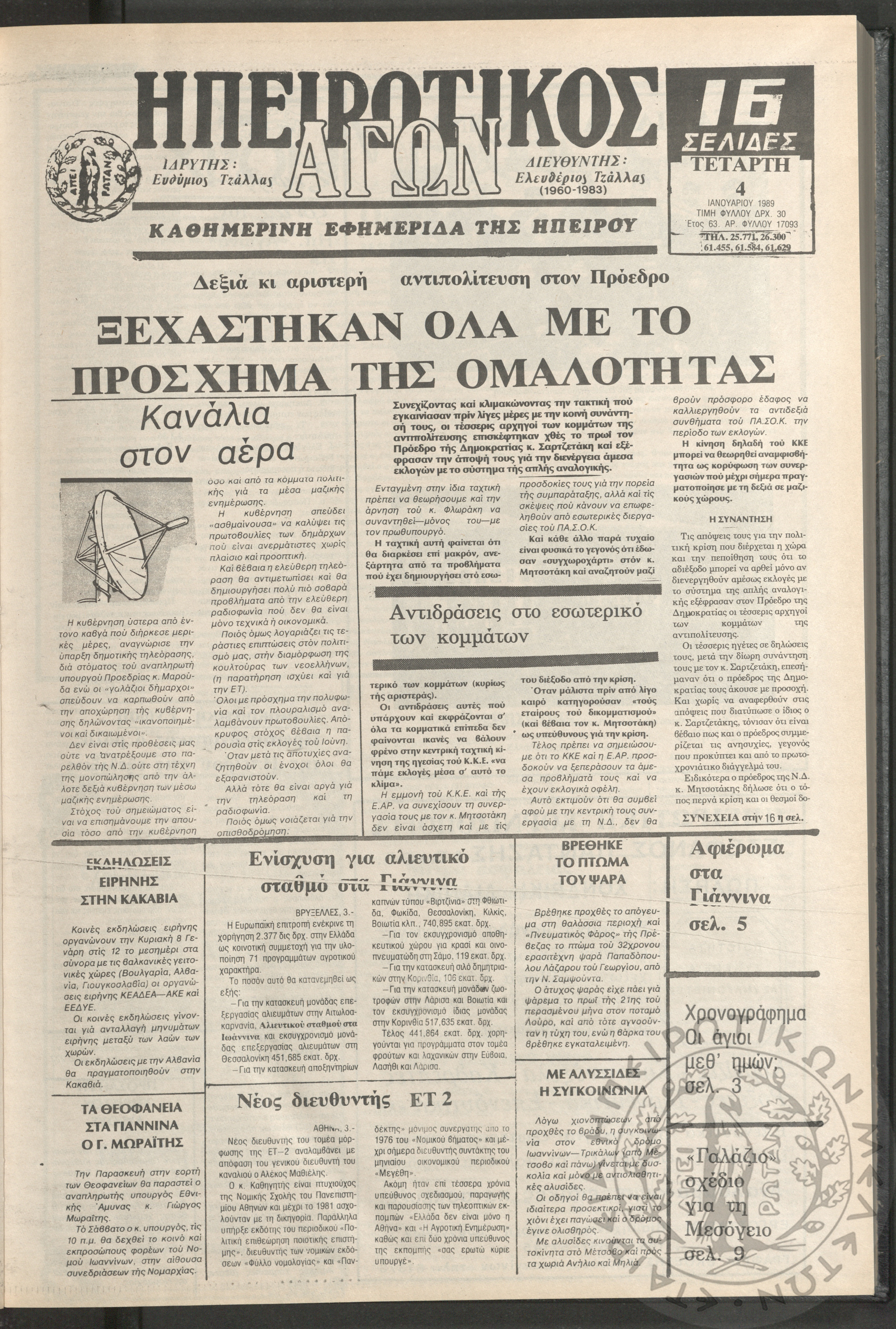 Ηπειρωτικός Αγών: καθημερινή εφημερίδα της Ηπείρου, 1989, φ. 17104