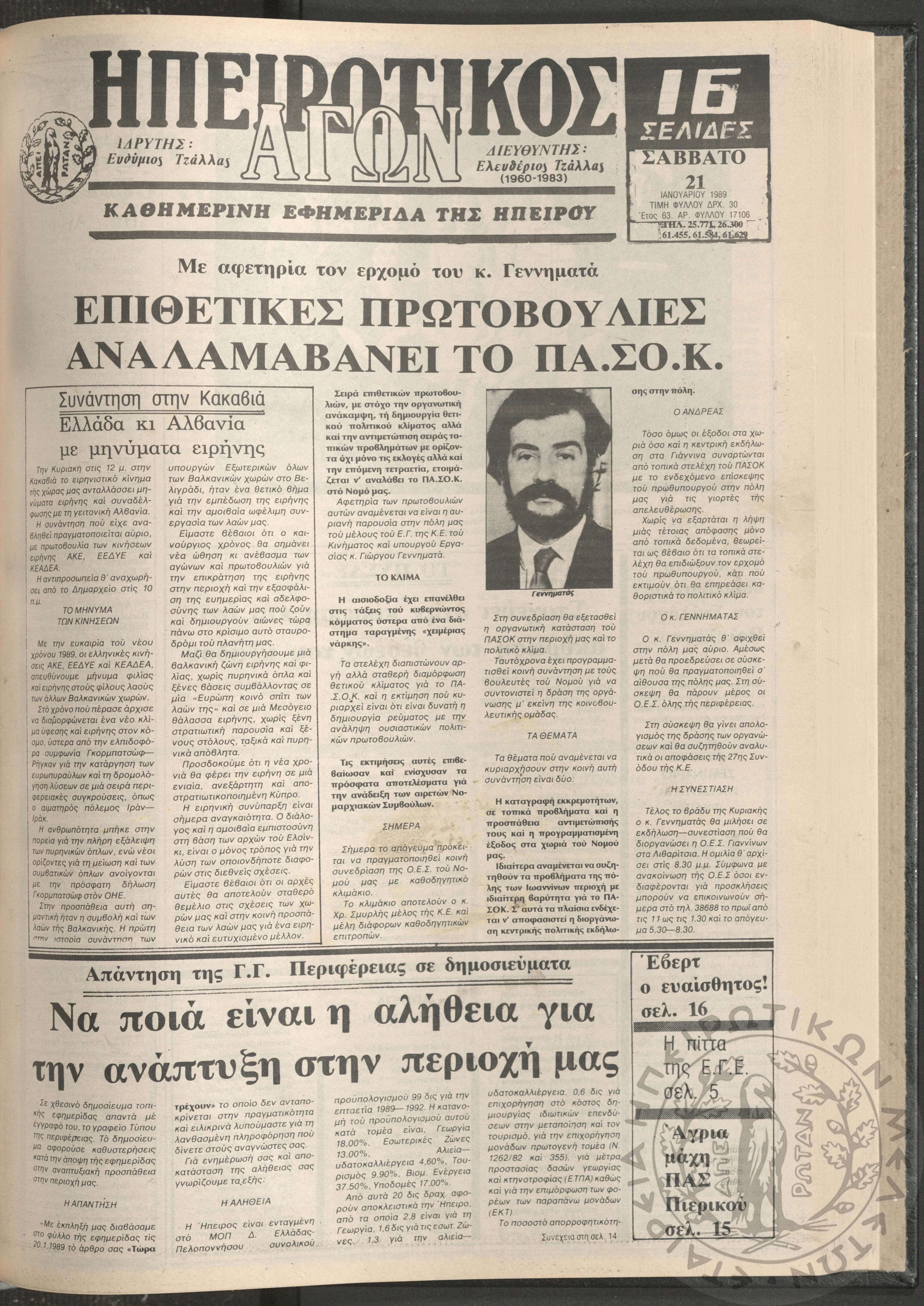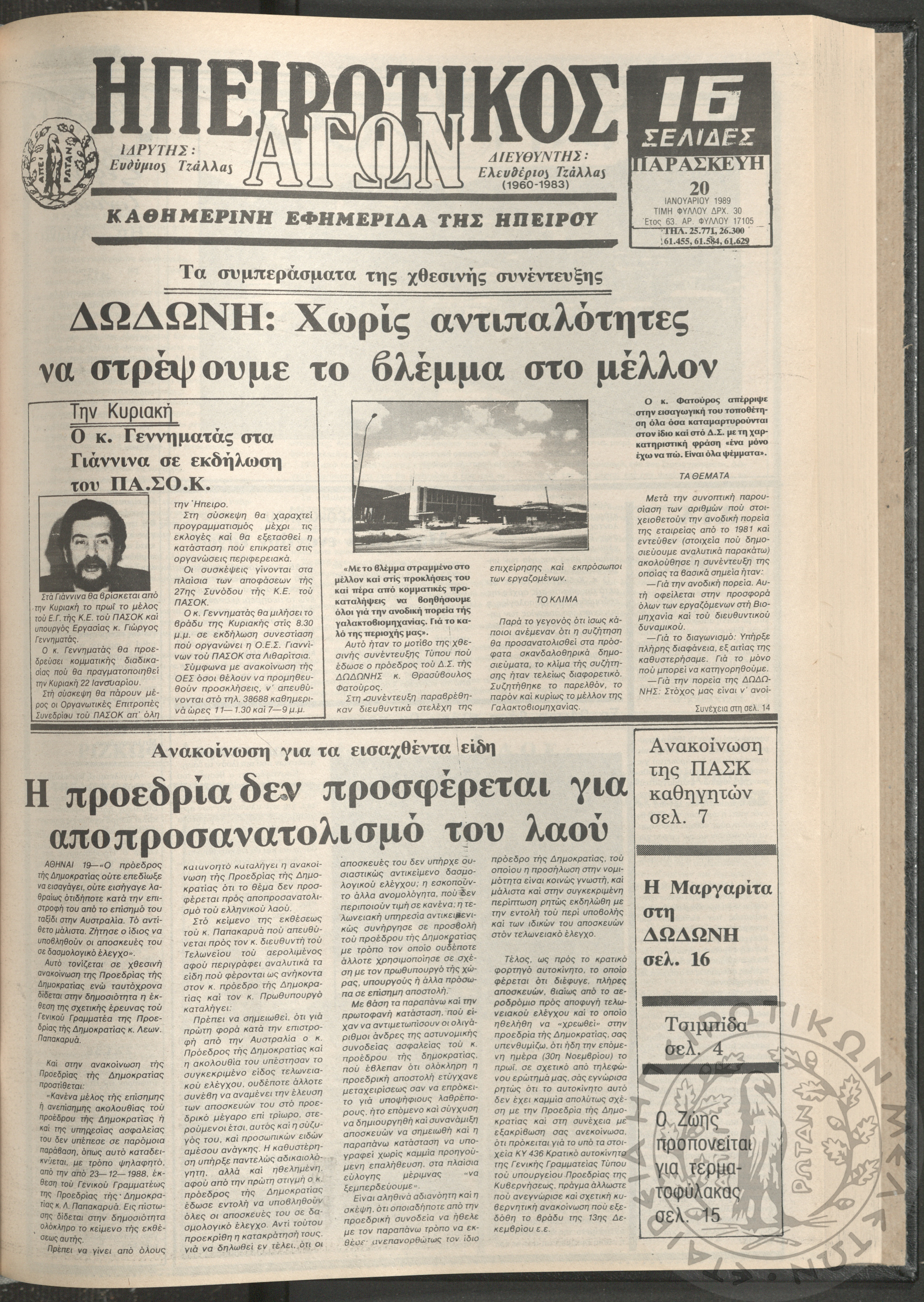 Ηπειρωτικός Αγών: καθημερινή εφημερίδα της Ηπείρου, 1989, φ. 17099