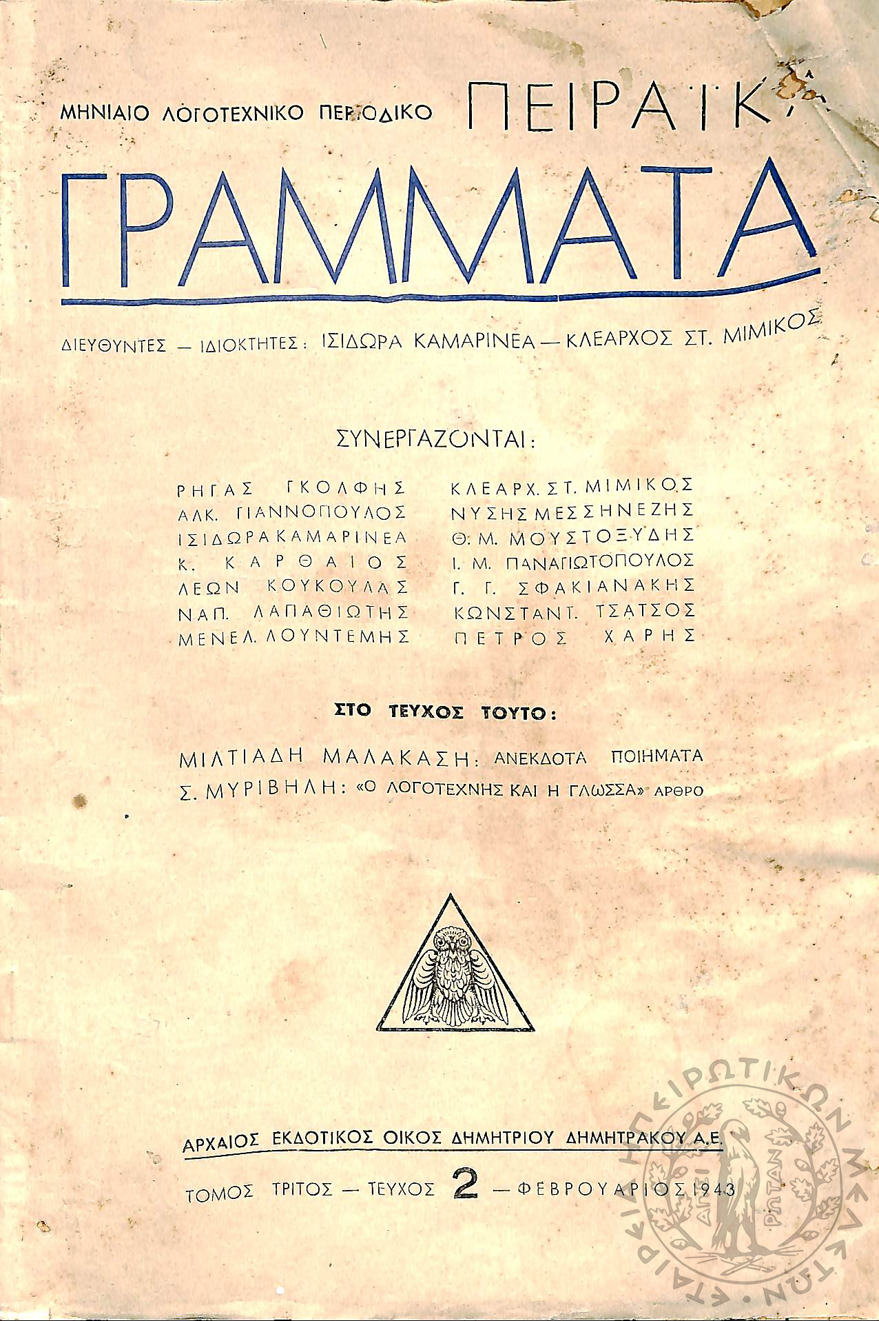 Πειραϊκά γράμματα: μηνιαίολογοτεχνικό περιοδικό (τευχ. 2)
