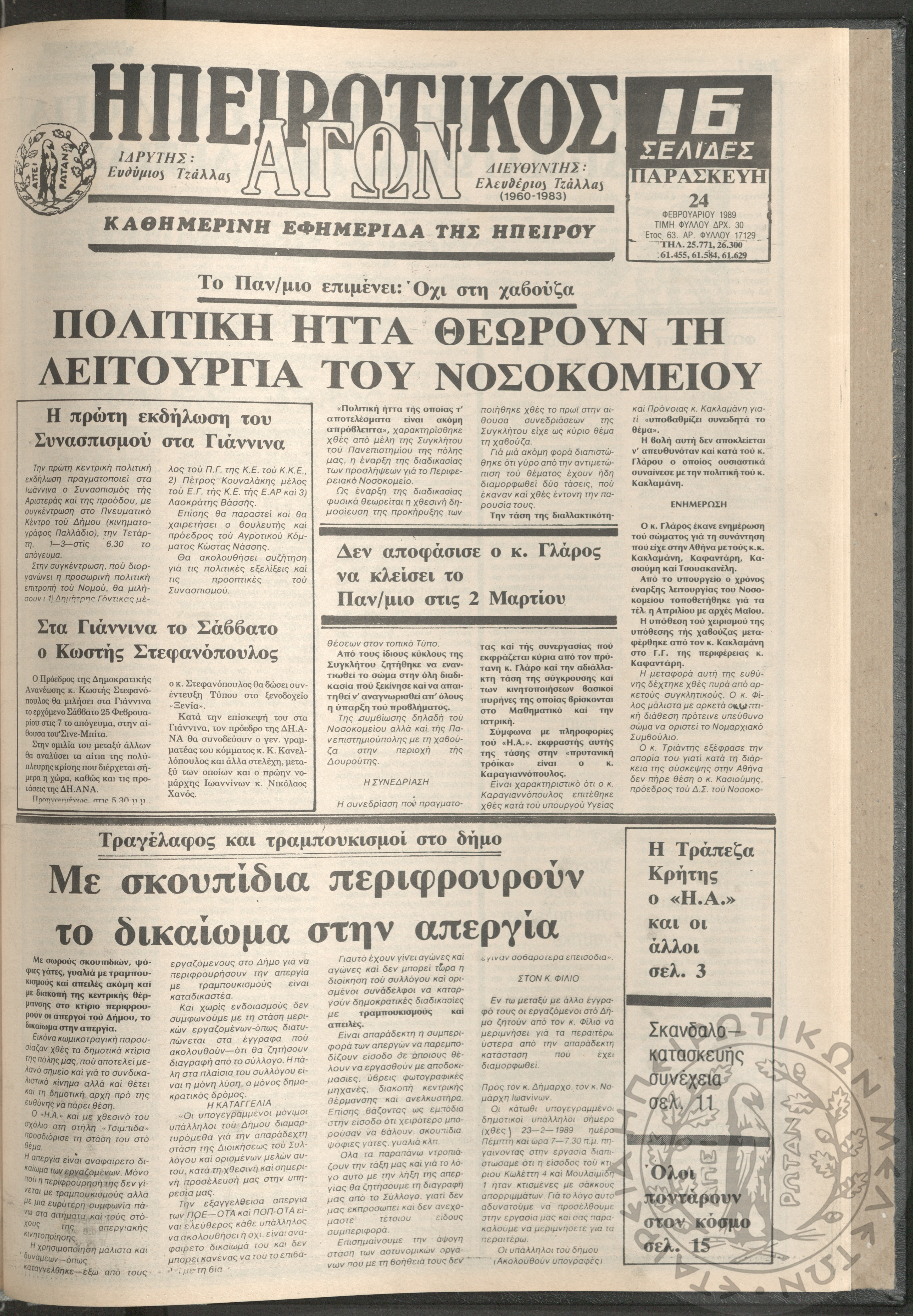Ηπειρωτικός Αγών: καθημερινή εφημερίδα της Ηπείρου, 1989, φ. 17124