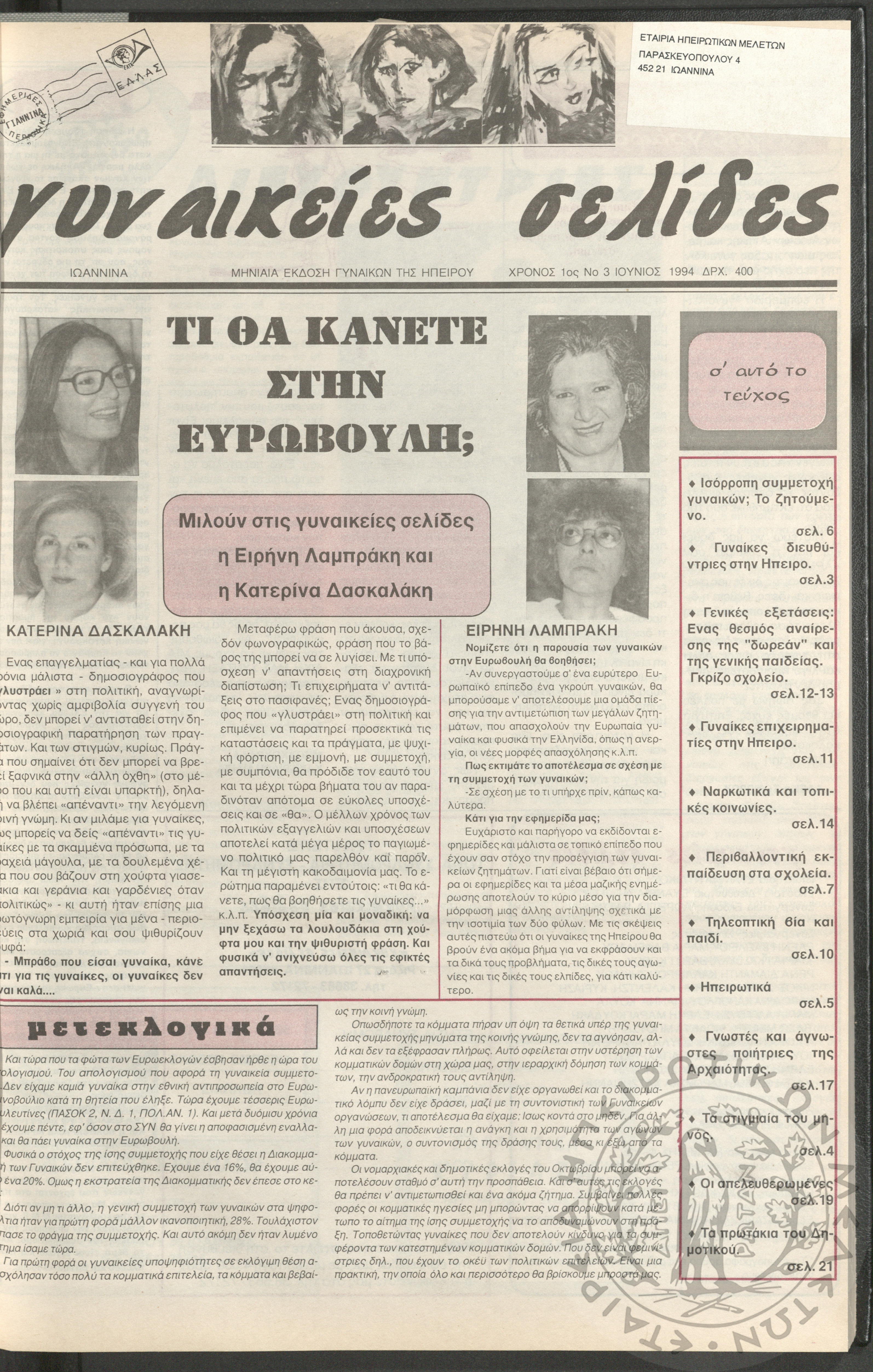 Γυναικείες σελίδες: μηνιαία έκδοση των γυναικών της Ηπείρου (τεύχ. 1)