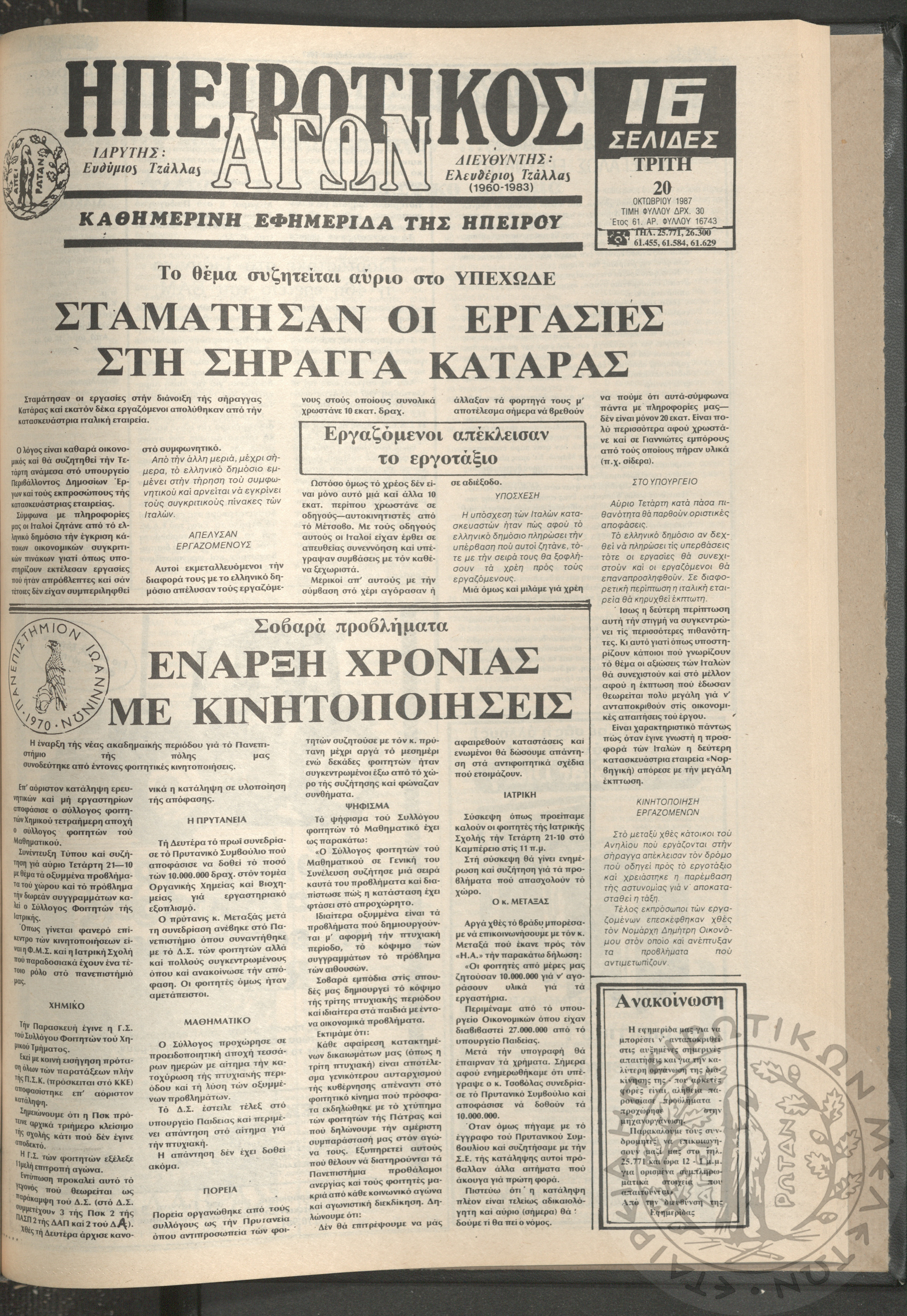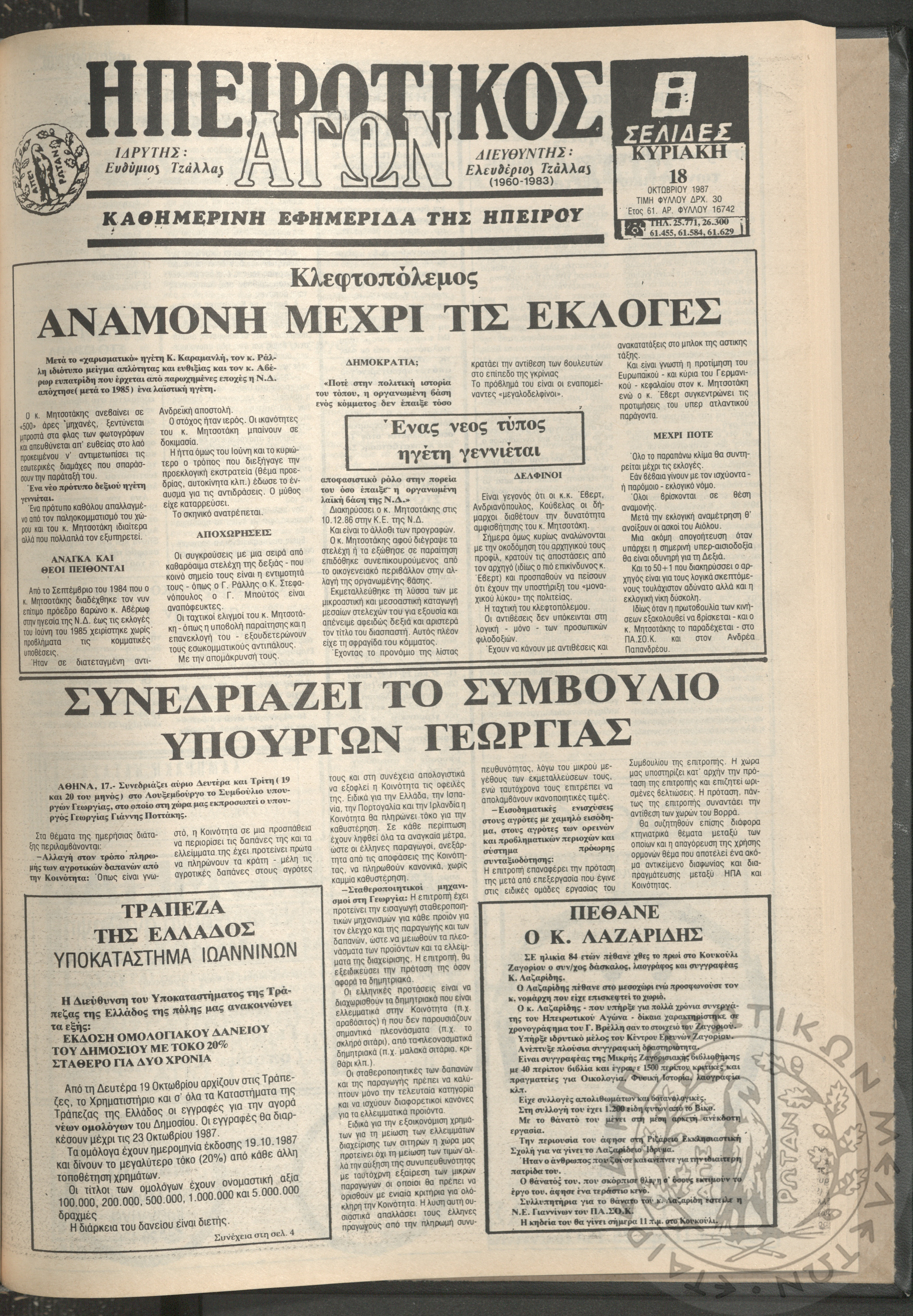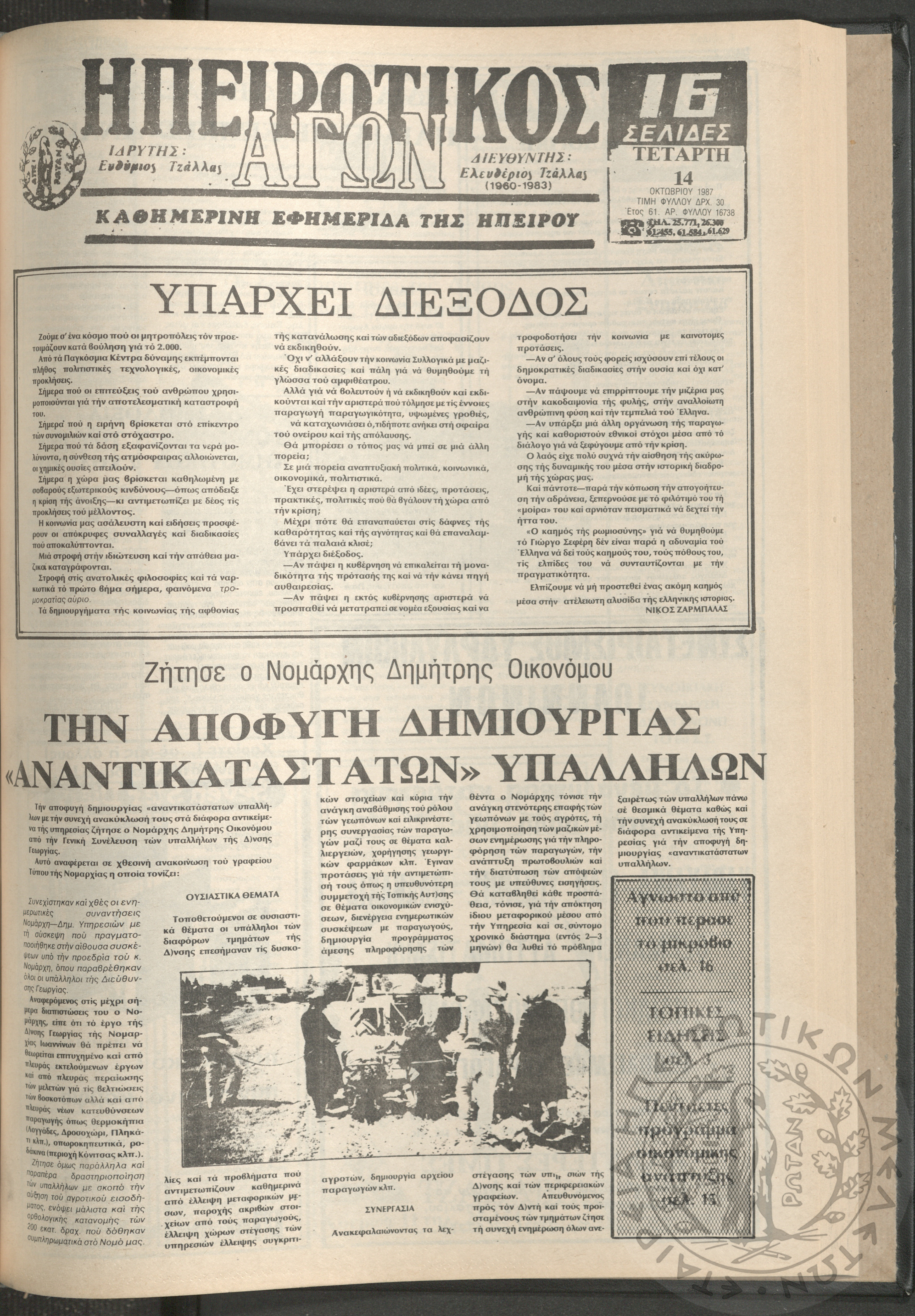Ηπειρωτικός Αγών: καθημερινή εφημερίδα της Ηπείρου, 1987, φ. 16740