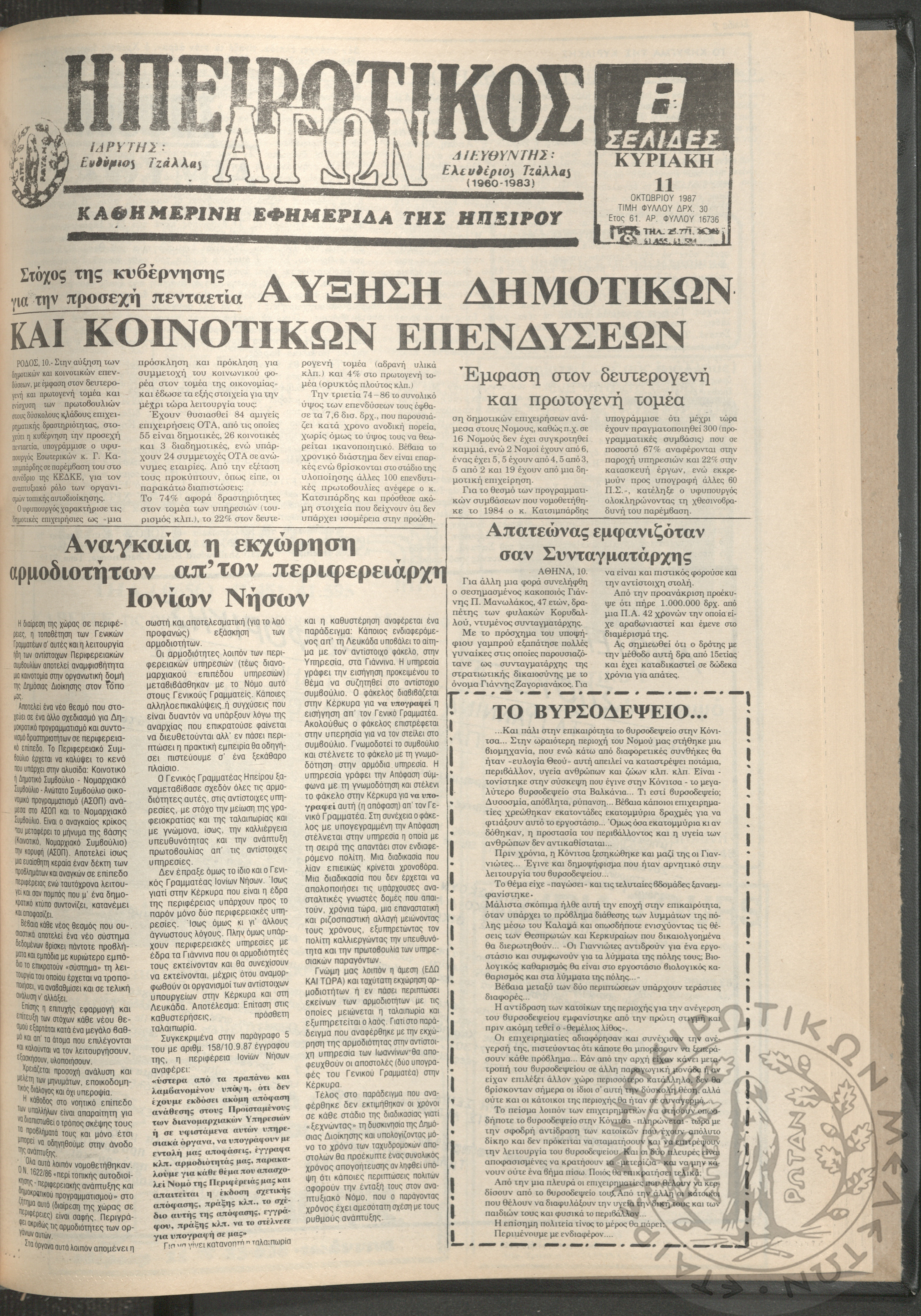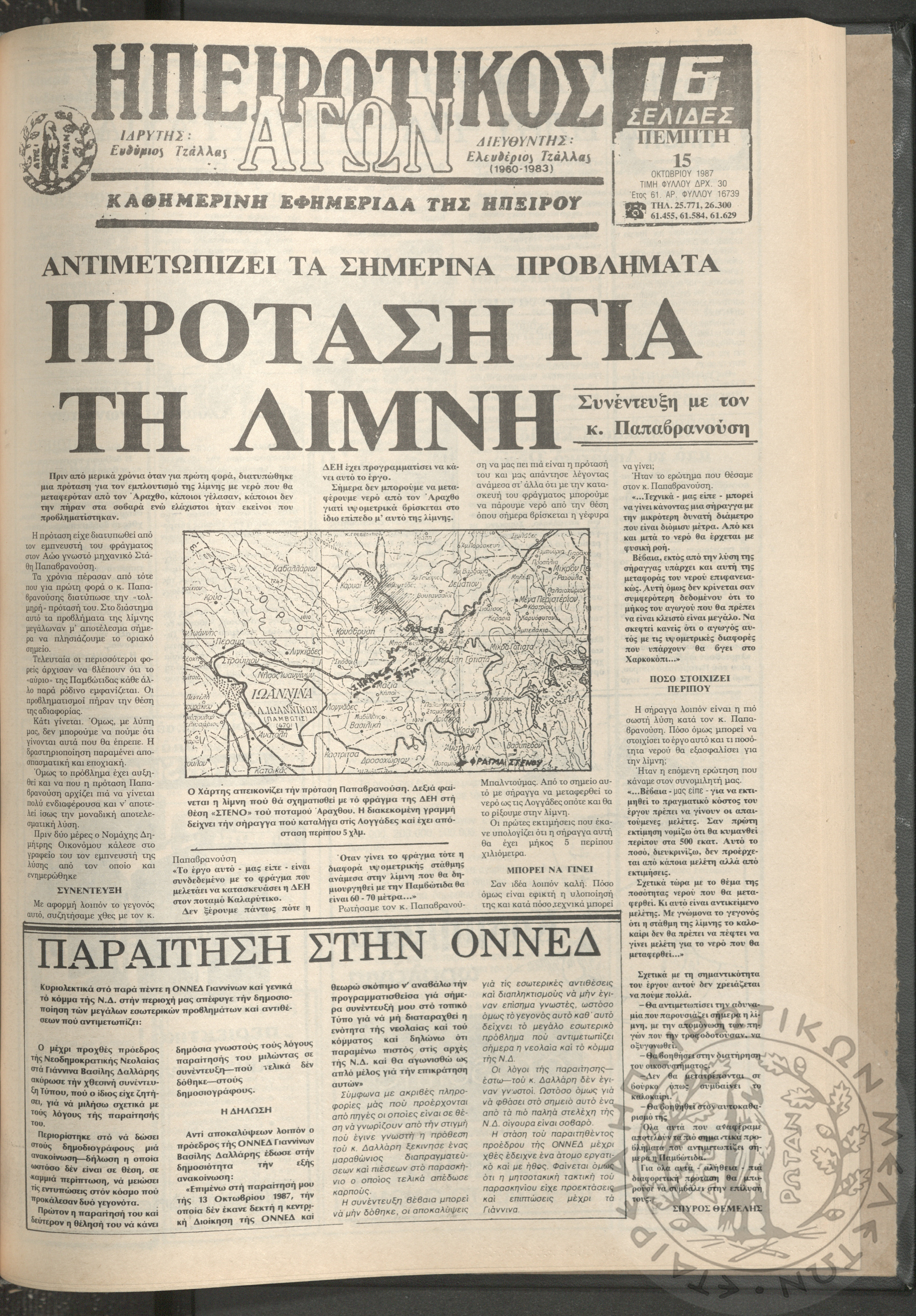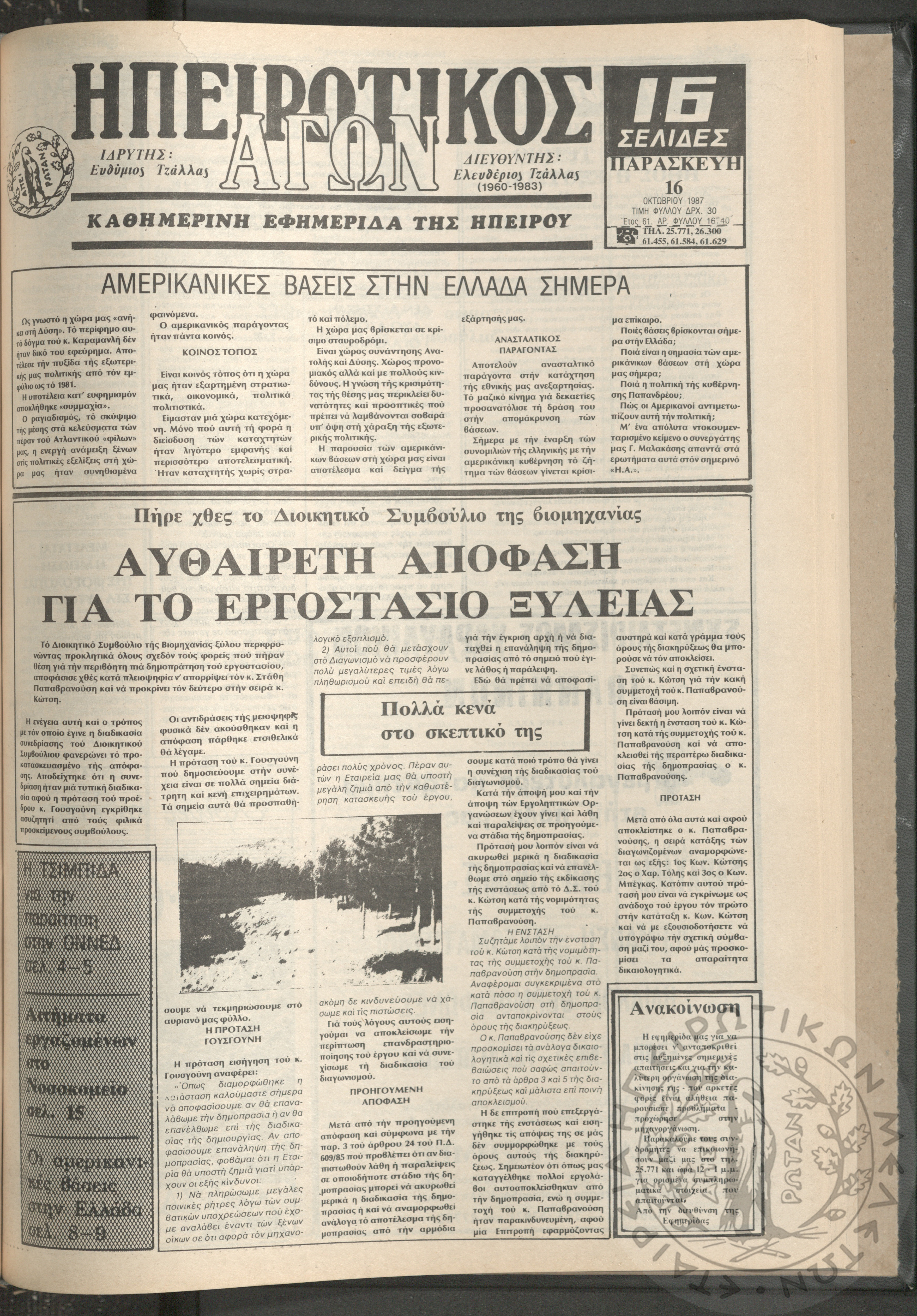 Ηπειρωτικός Αγών: καθημερινή εφημερίδα της Ηπείρου, 1987, φ. 16740