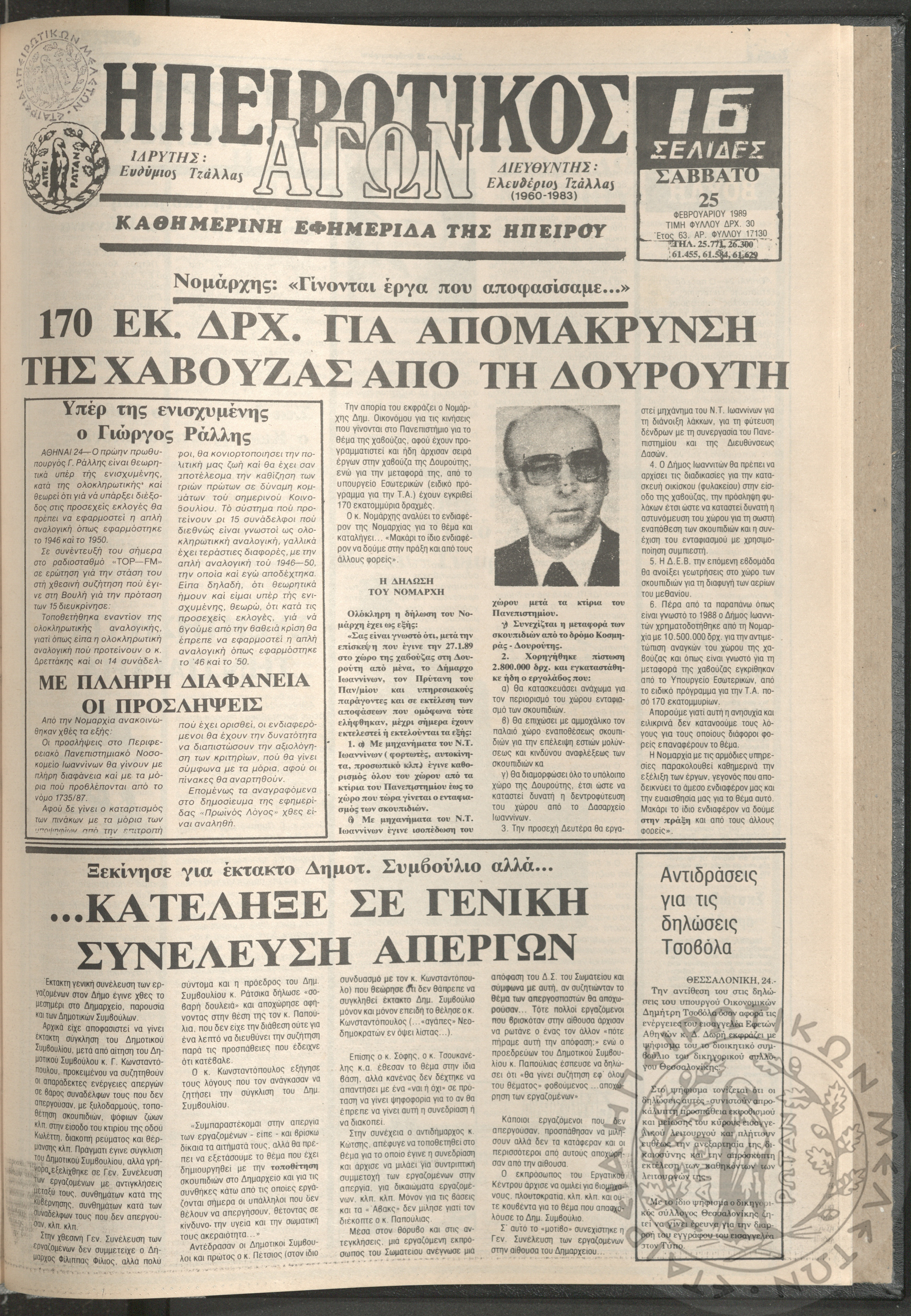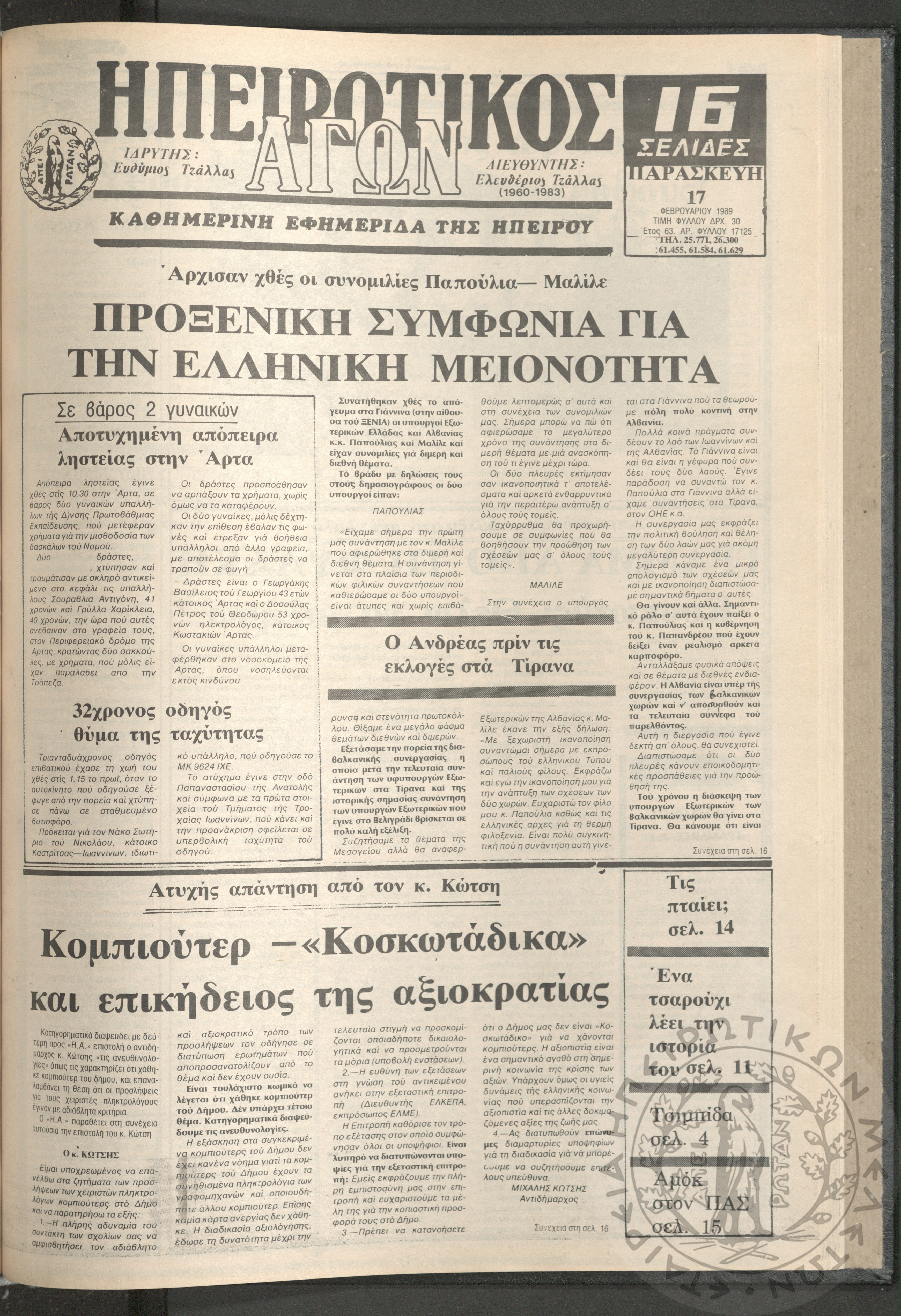 Ηπειρωτικός Αγών: καθημερινή εφημερίδα της Ηπείρου, 1989, φ. 17125