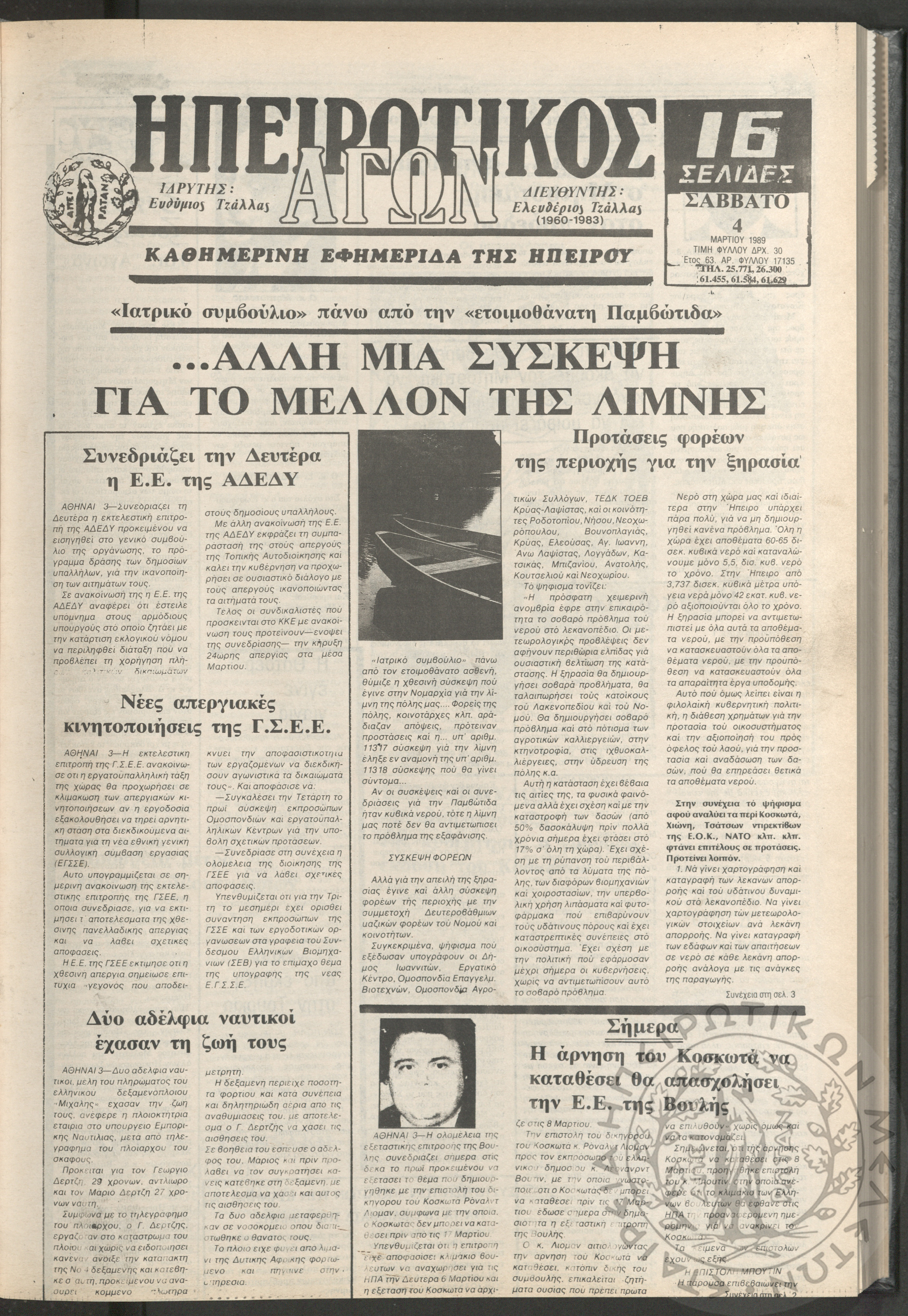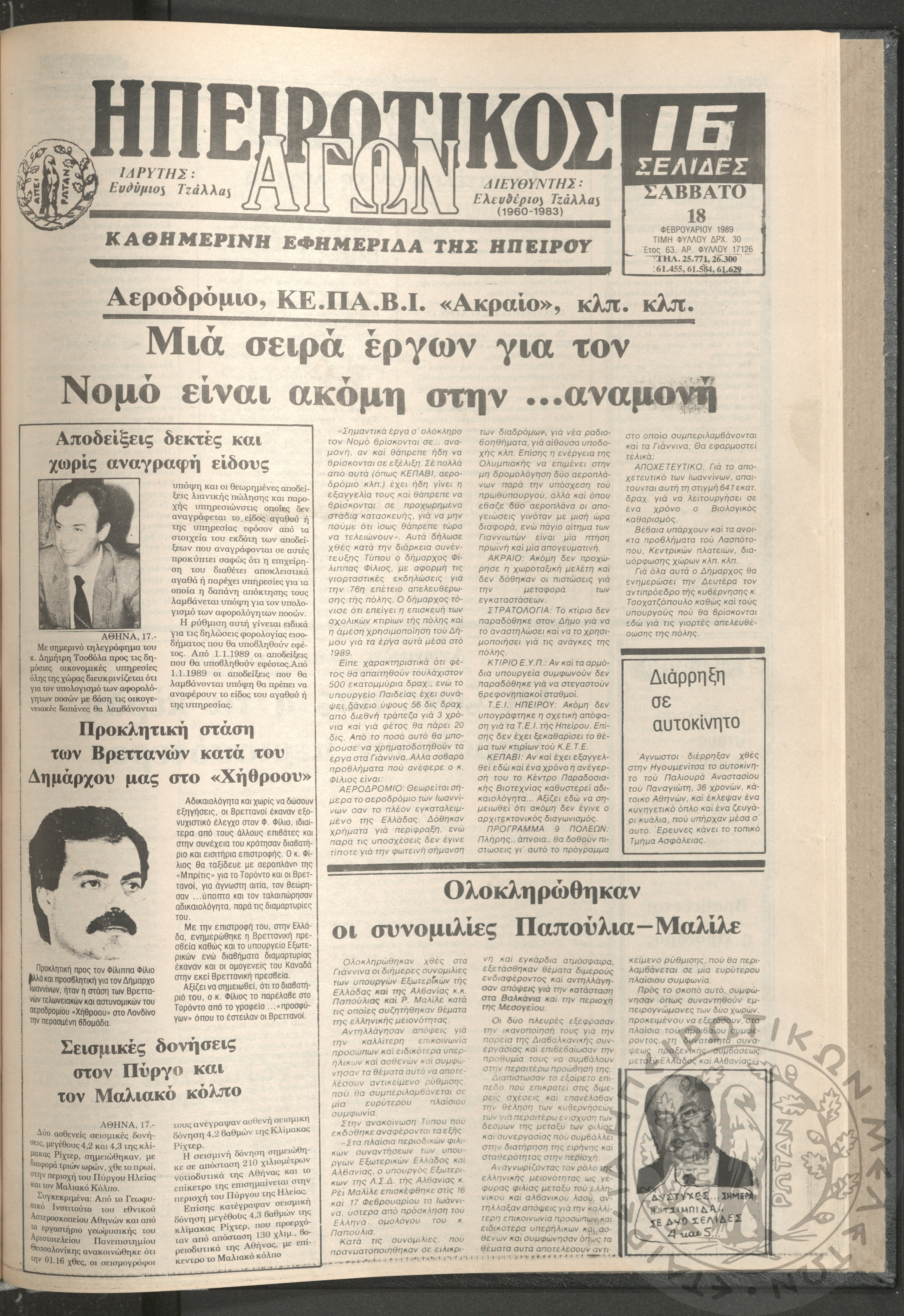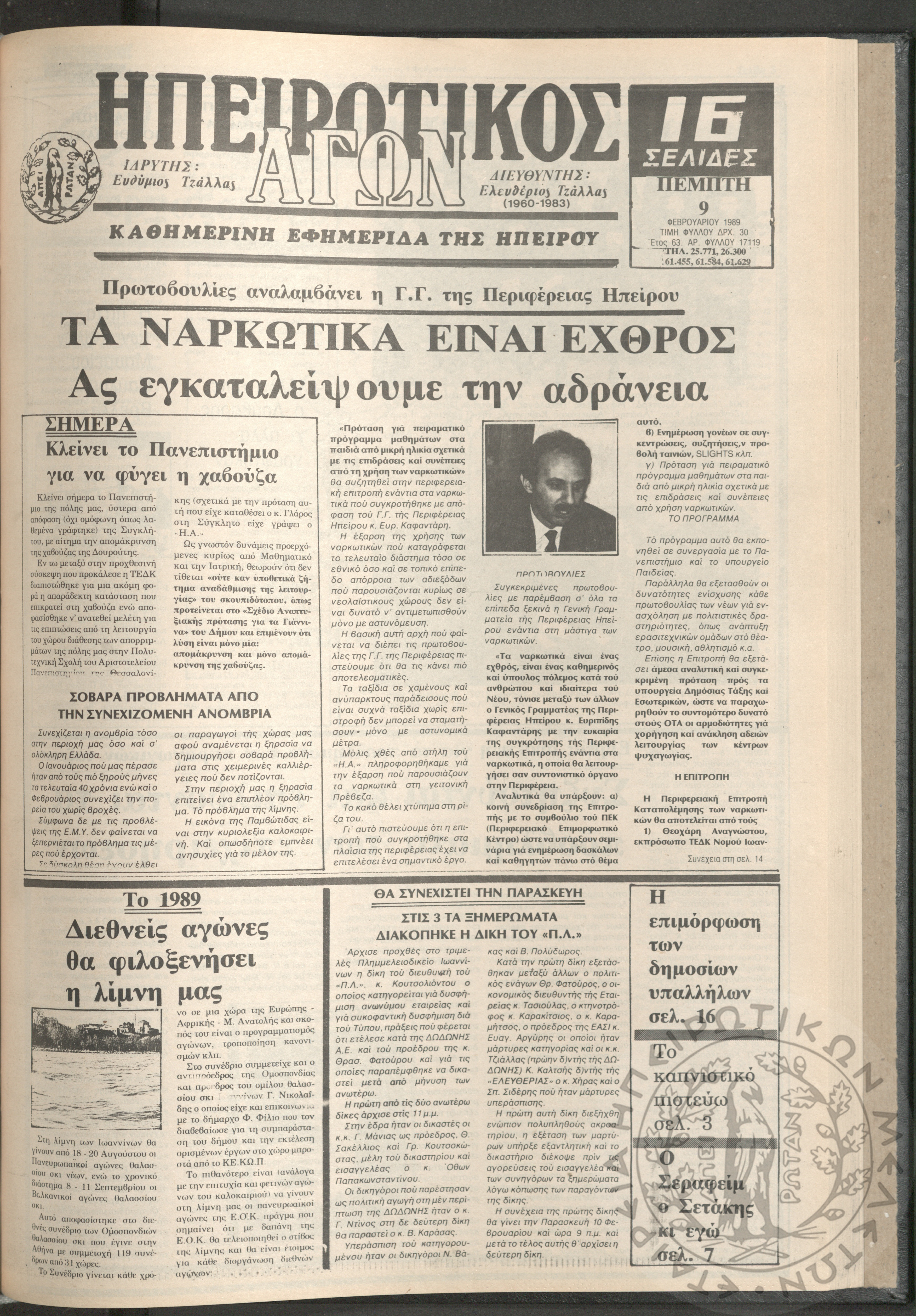Ηπειρωτικός Αγών: καθημερινή εφημερίδα της Ηπείρου, 1989, φ. 17130