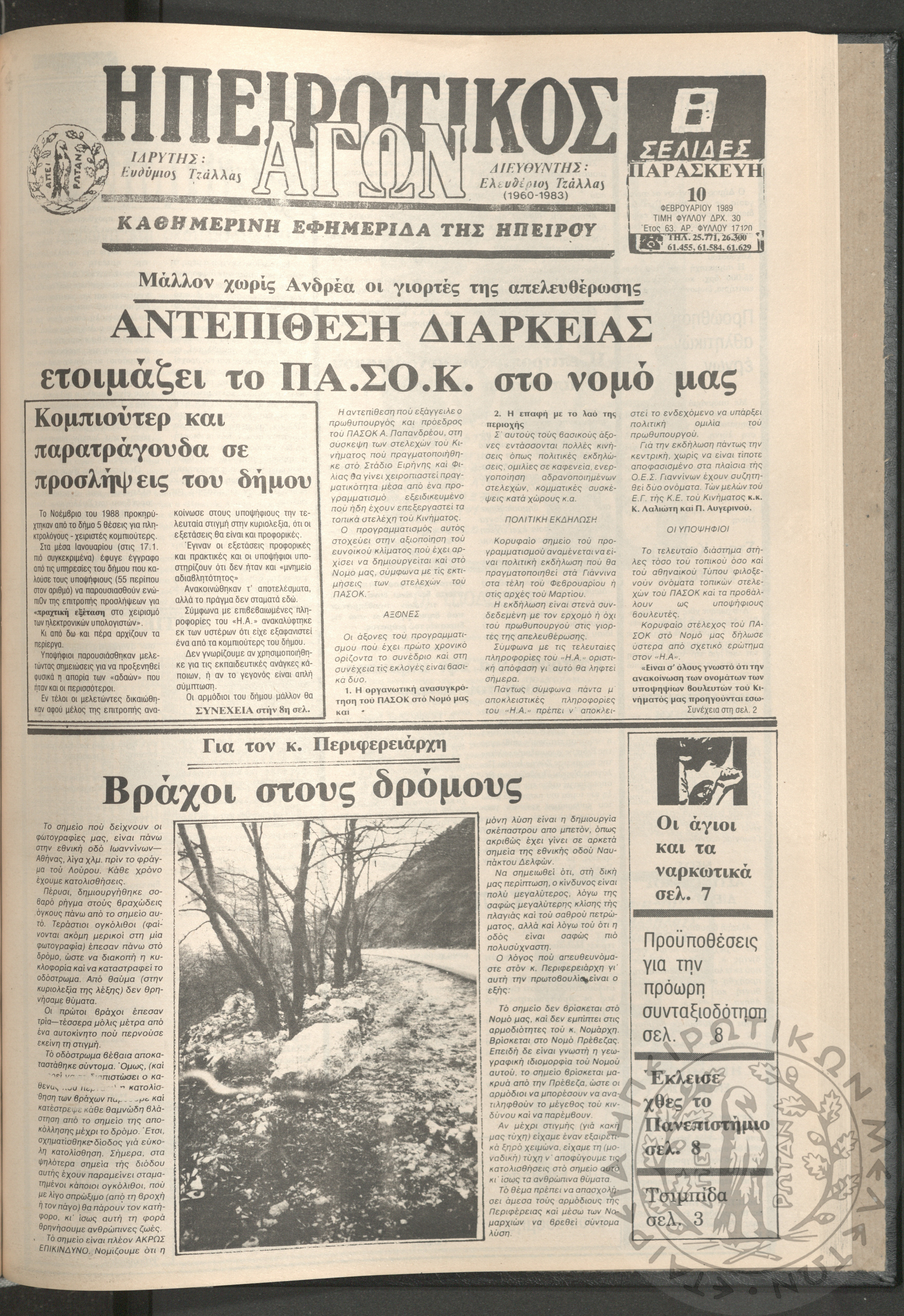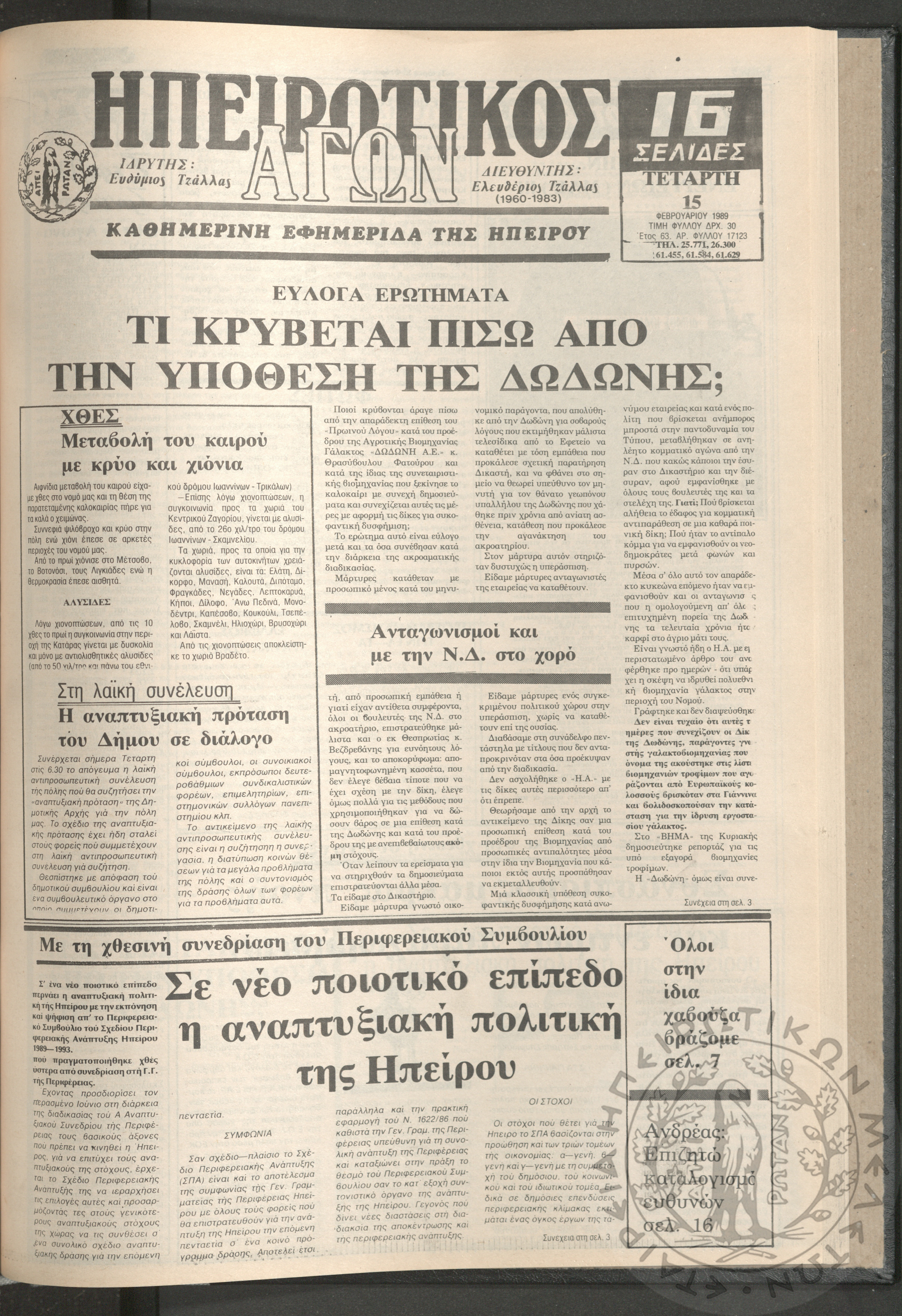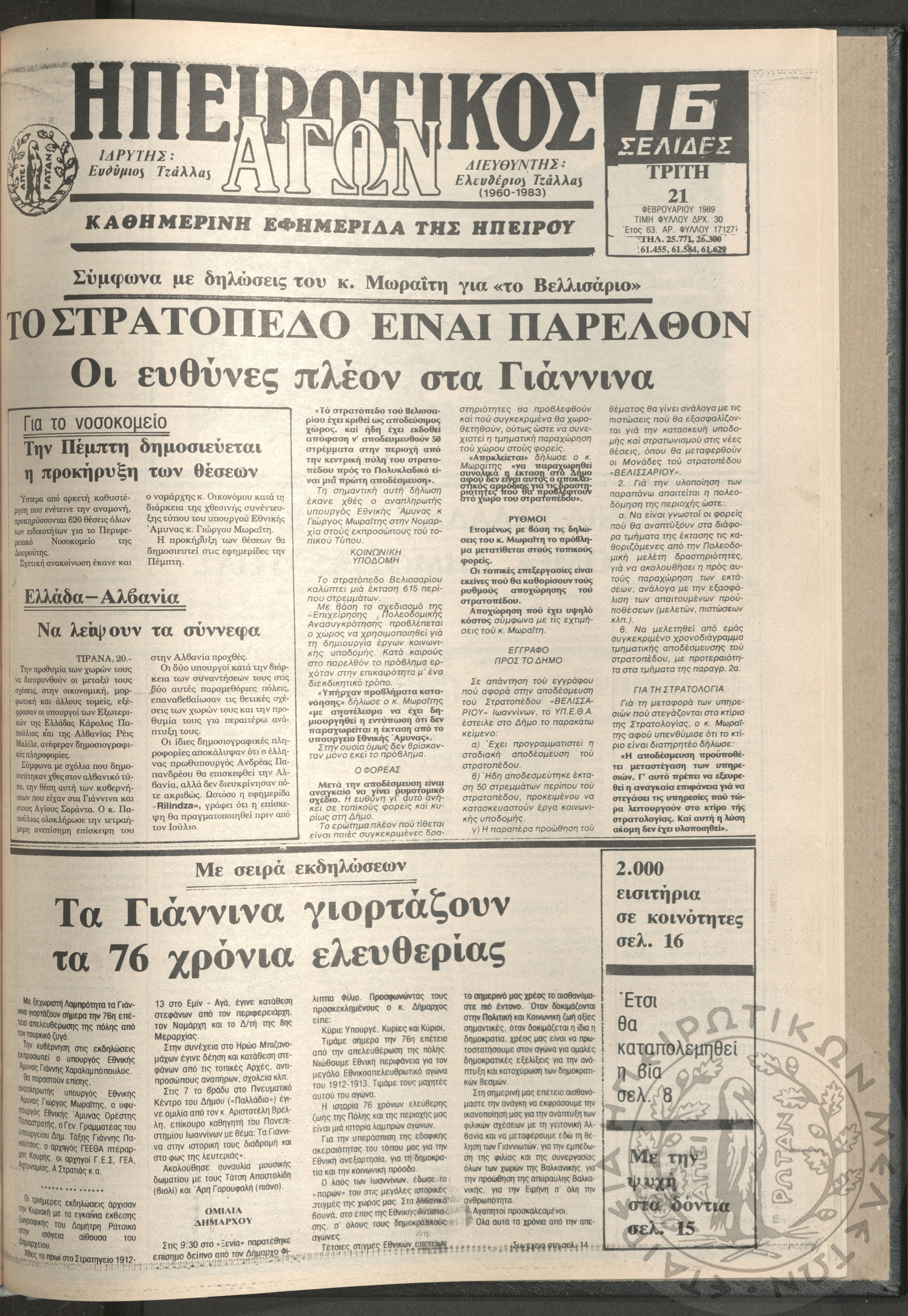 Ηπειρωτικός Αγών: καθημερινή εφημερίδα της Ηπείρου, 1989, φ. 17130