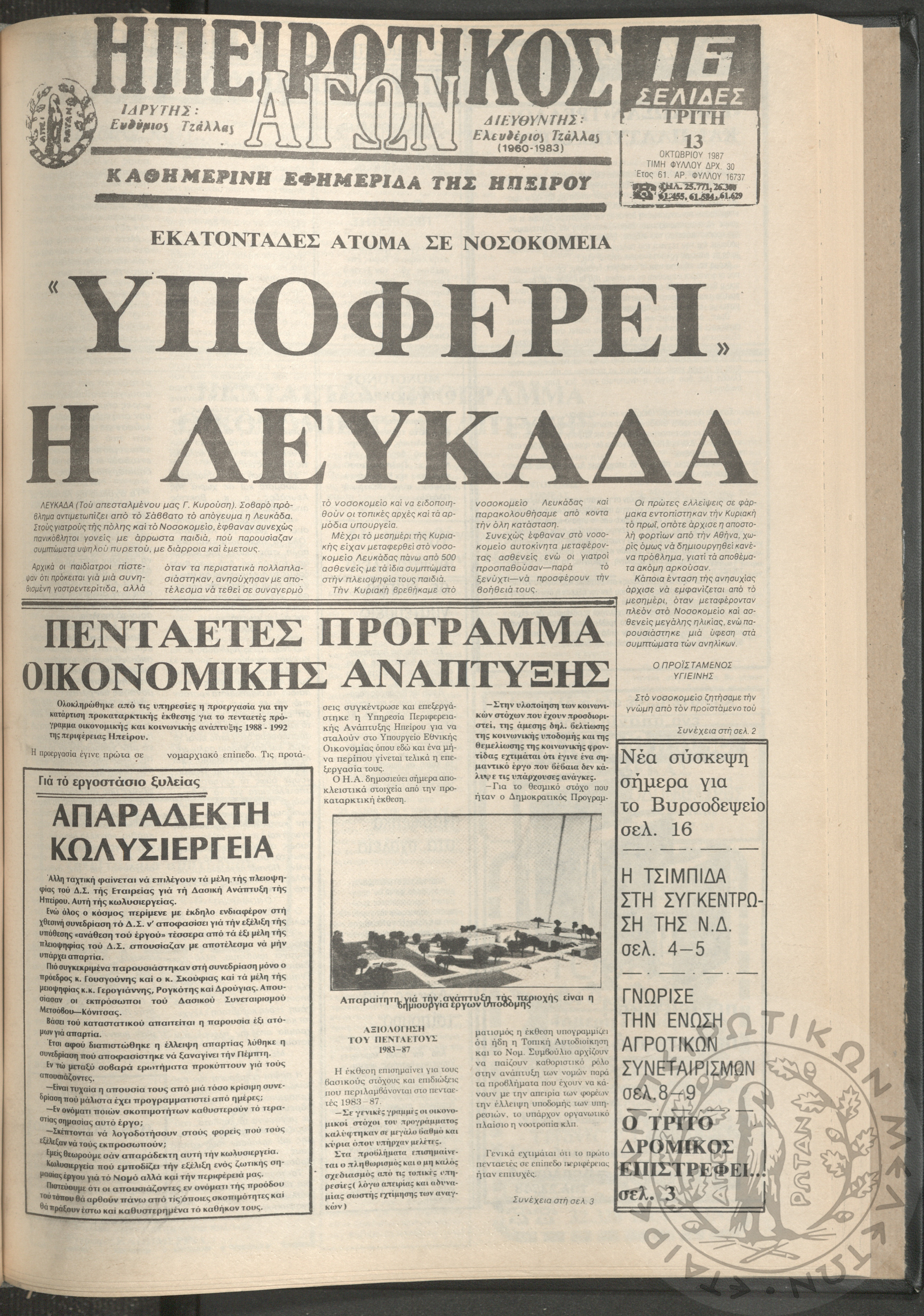 Ηπειρωτικός Αγών: καθημερινή εφημερίδα της Ηπείρου, 1987, φ. 16739