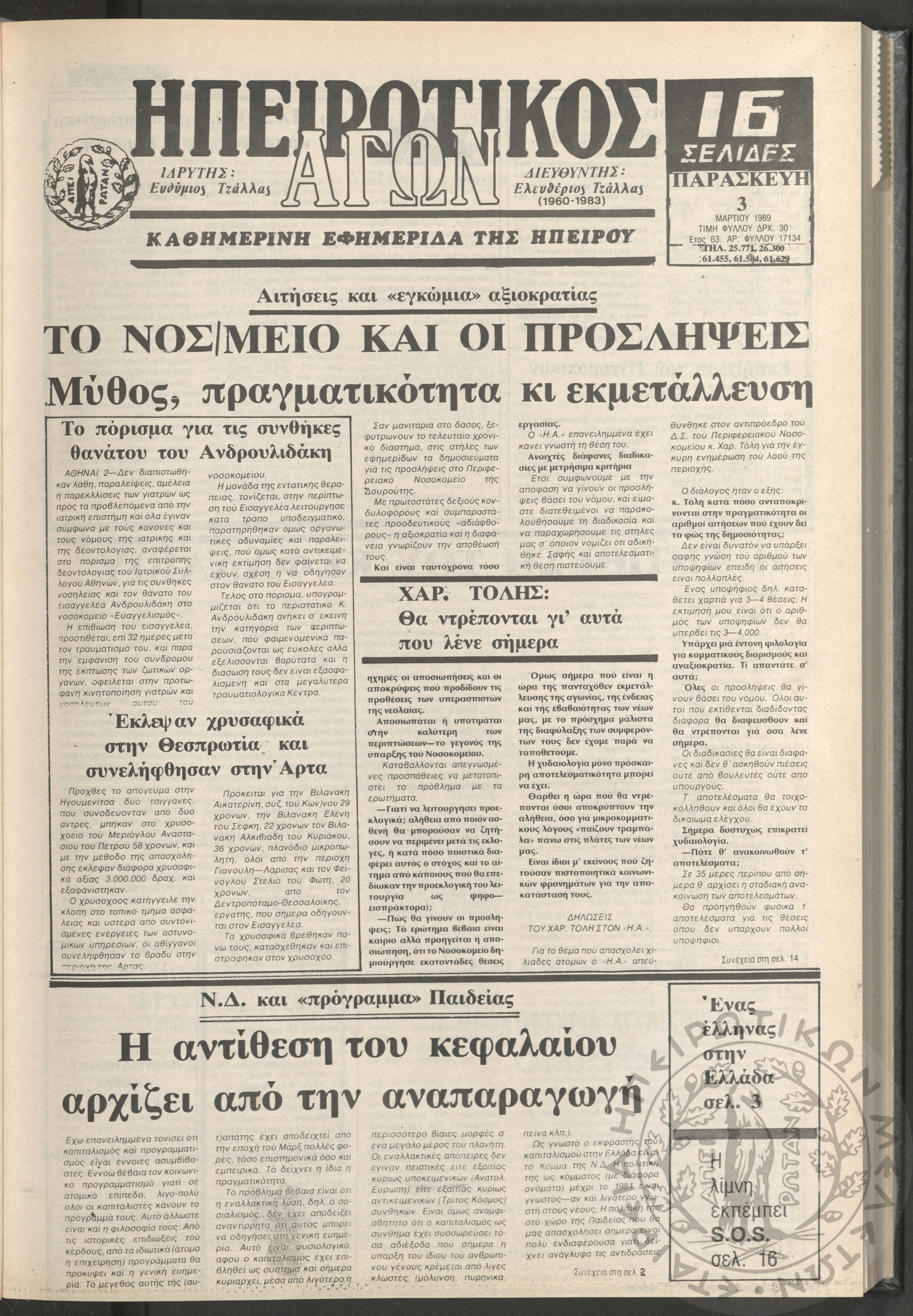 Ηπειρωτικός Αγών: καθημερινή εφημερίδα της Ηπείρου, 1989, φ. 17134