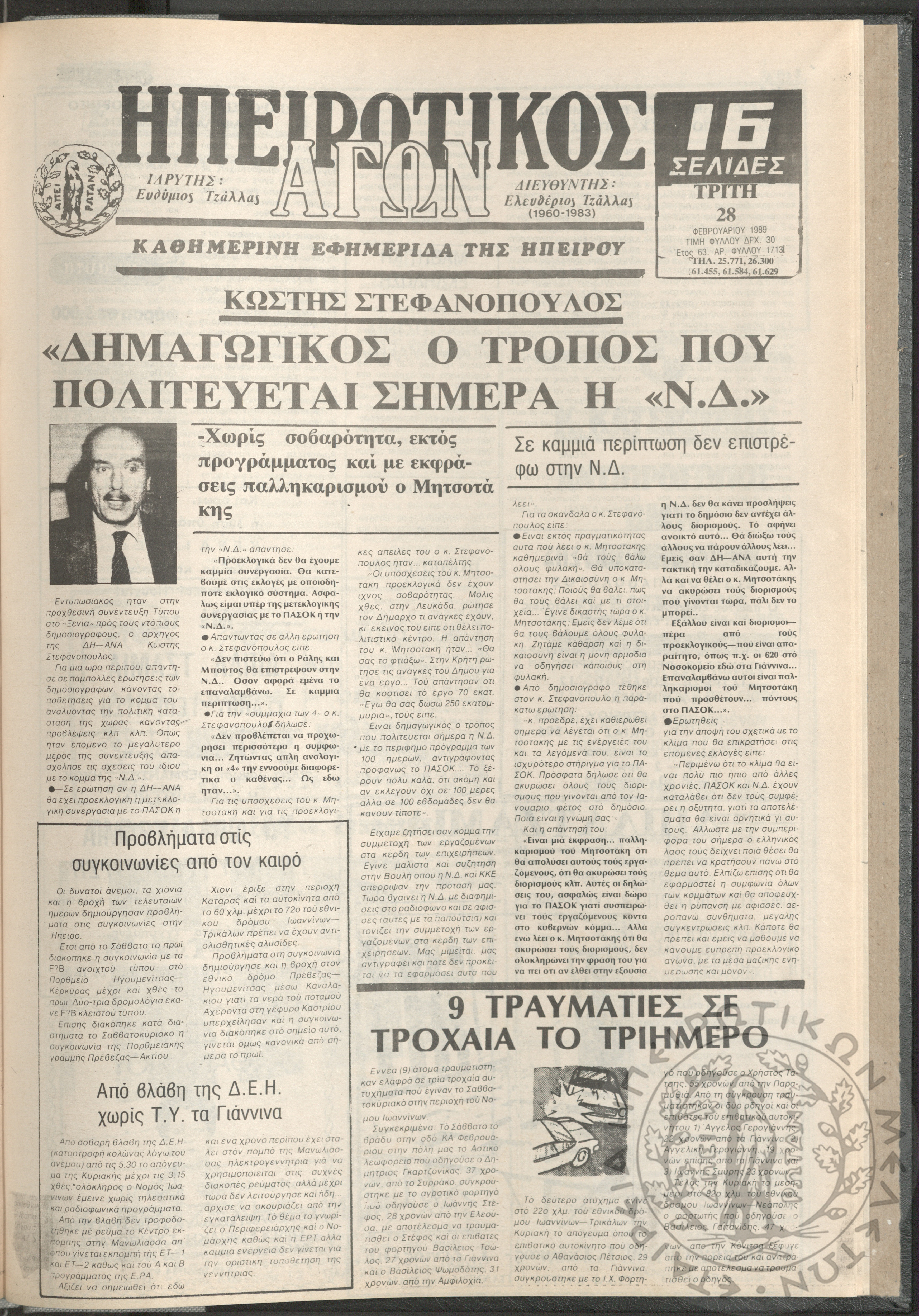 Ηπειρωτικός Αγών: καθημερινή εφημερίδα της Ηπείρου, 1989, φ. 17128