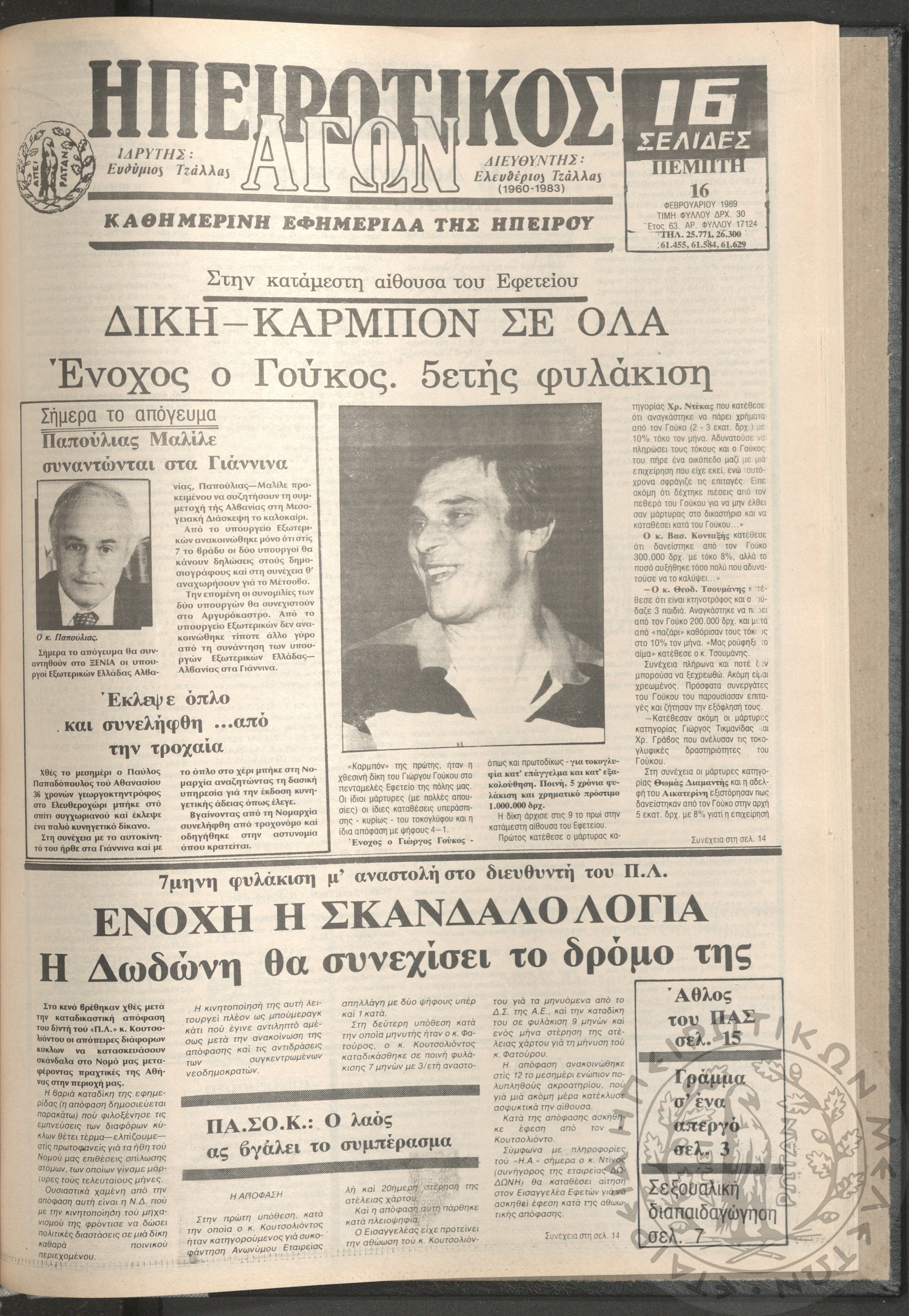 Ηπειρωτικός Αγών: καθημερινή εφημερίδα της Ηπείρου, 1989, φ. 17126