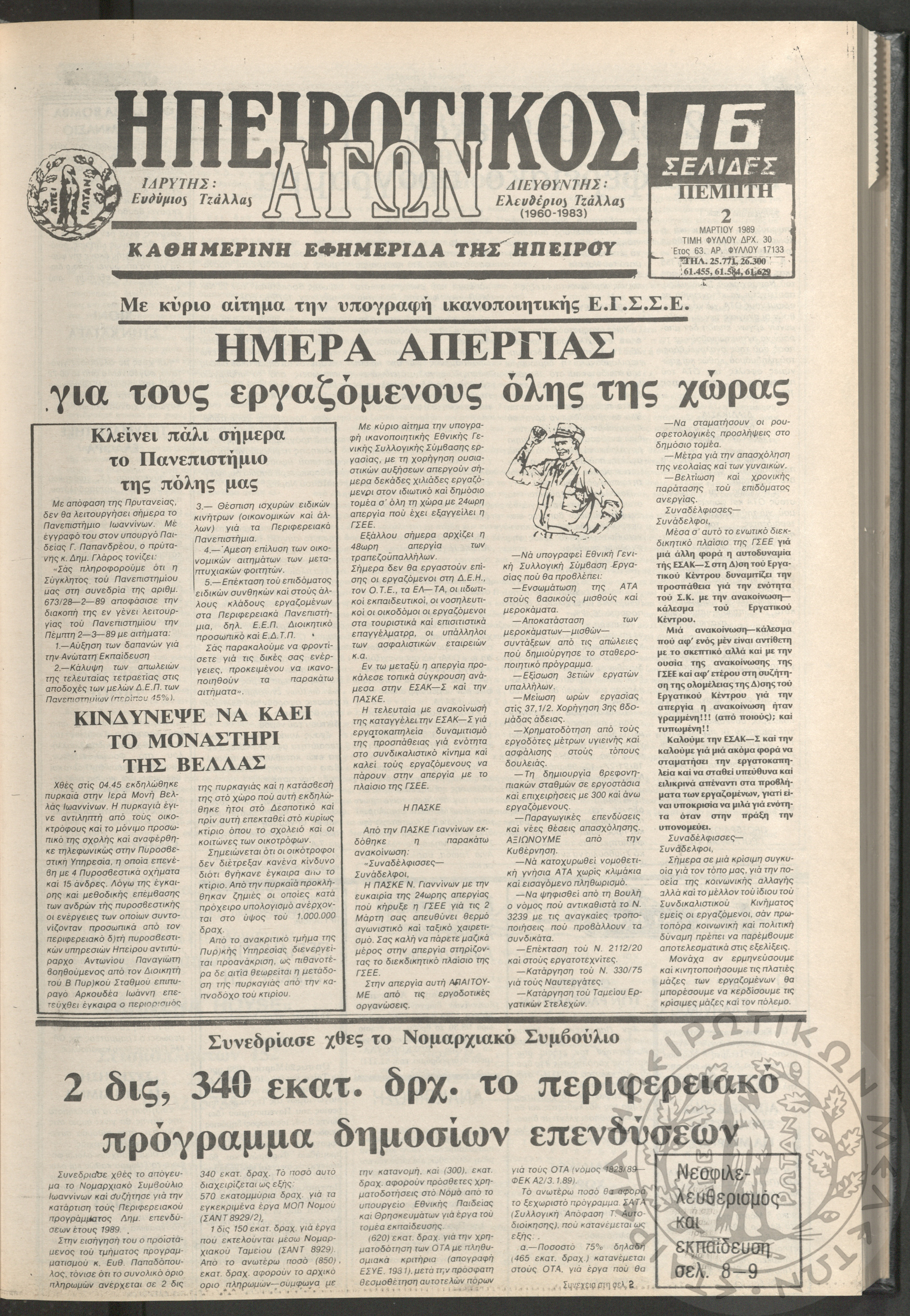 Ηπειρωτικός Αγών: καθημερινή εφημερίδα της Ηπείρου, 1989, φ. 17133