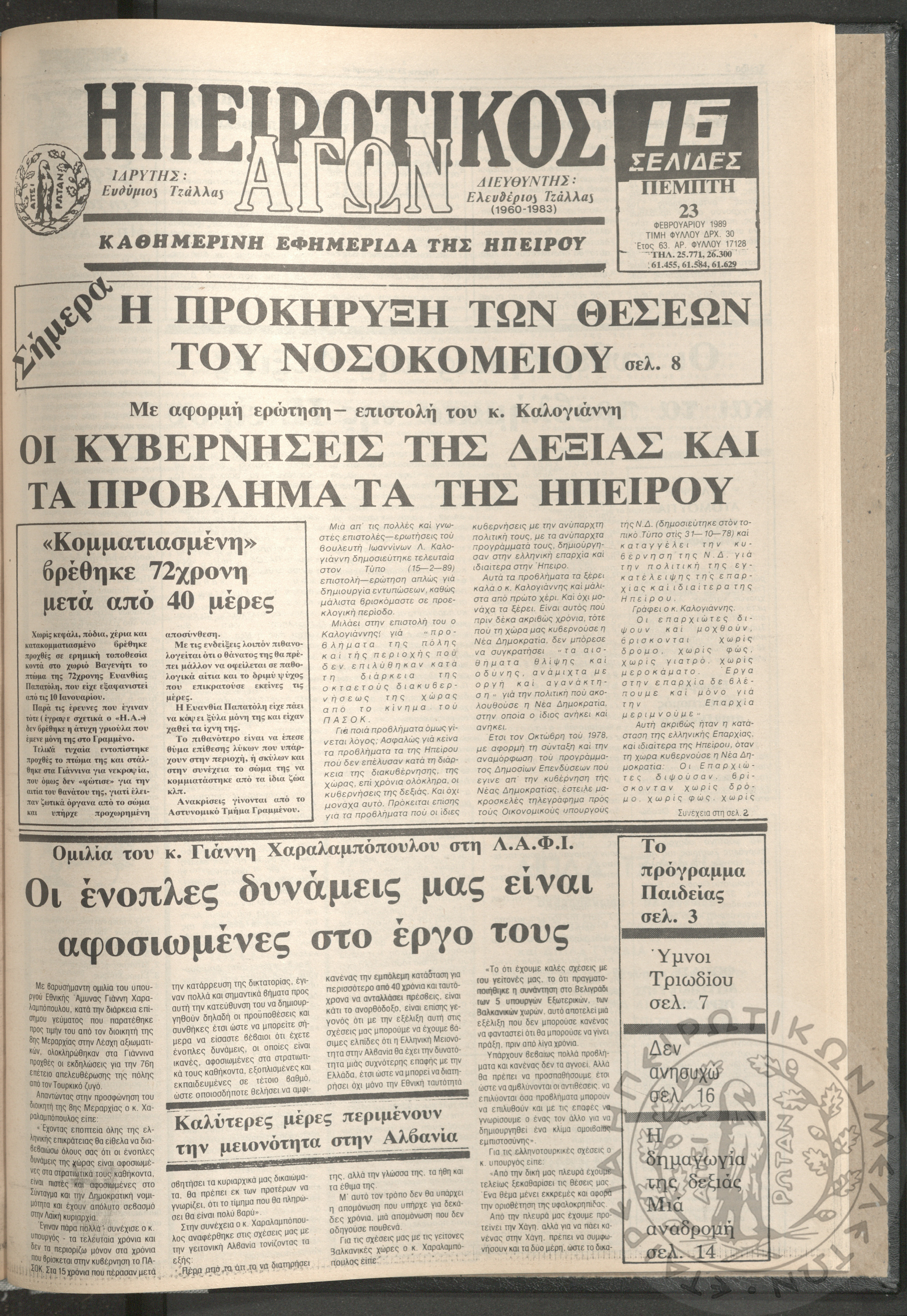 Ηπειρωτικός Αγών: καθημερινή εφημερίδα της Ηπείρου, 1989, φ. 17123