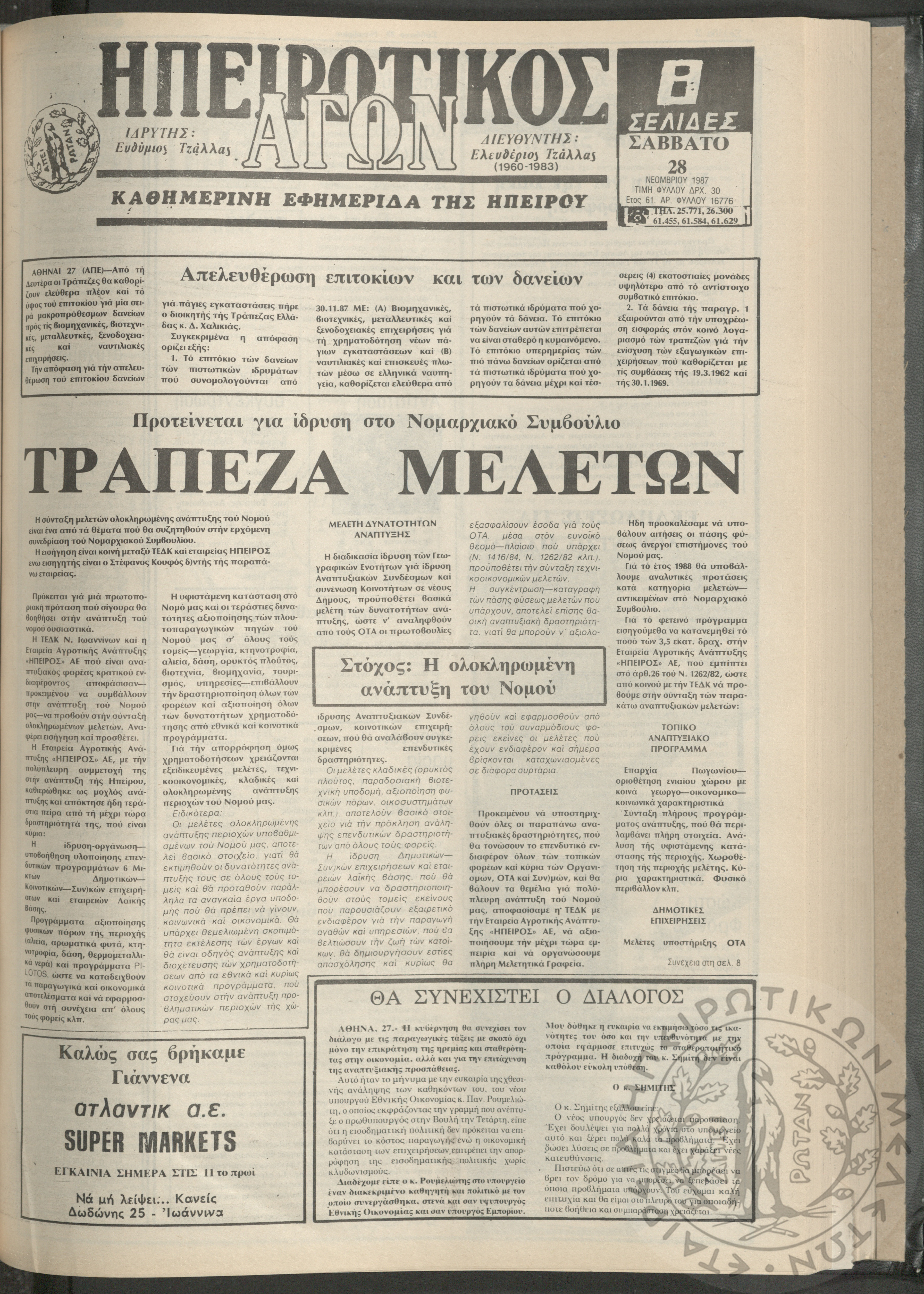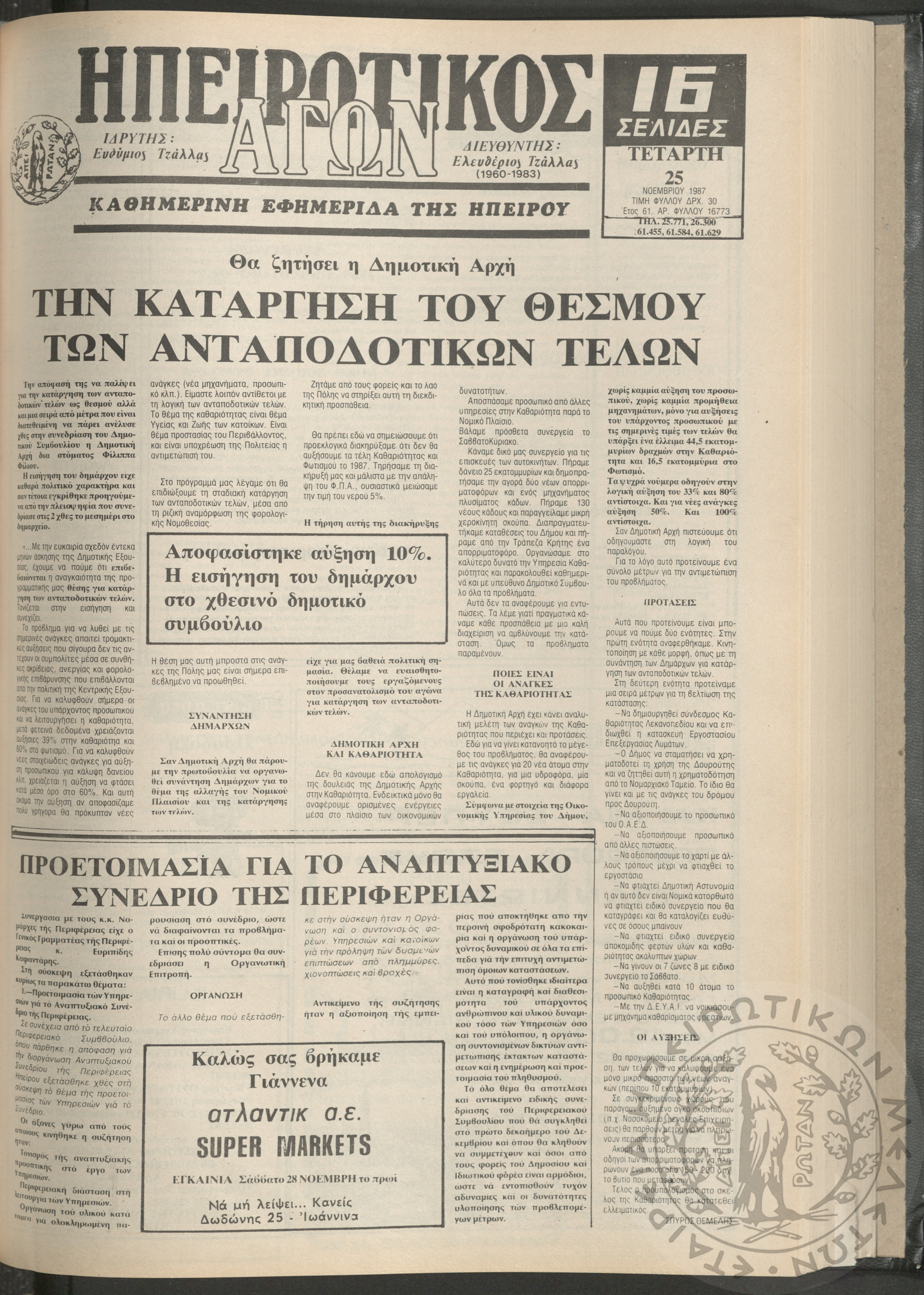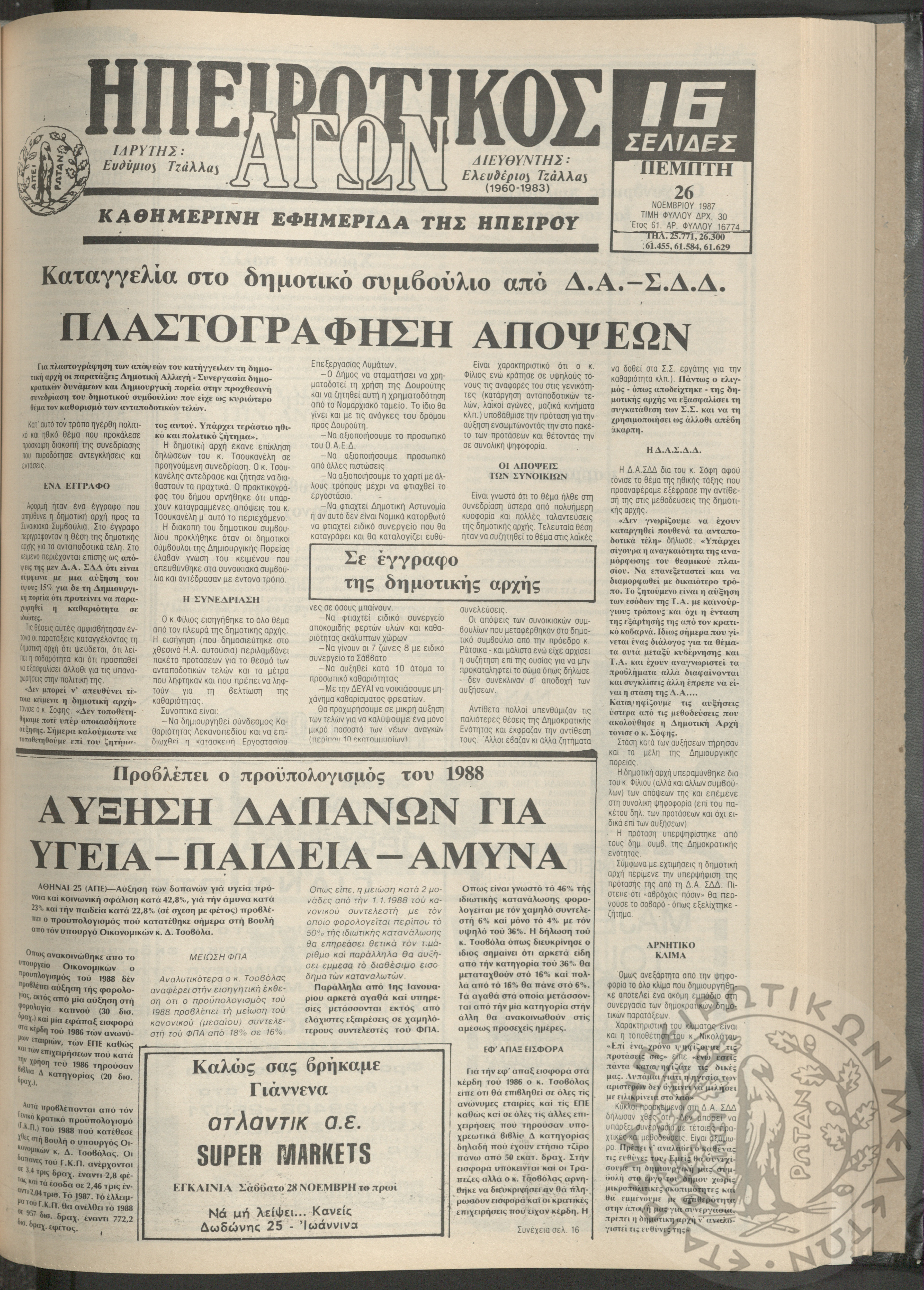 Ηπειρωτικός Αγών: καθημερινή εφημερίδα της Ηπείρου, 1987, φ. 16771